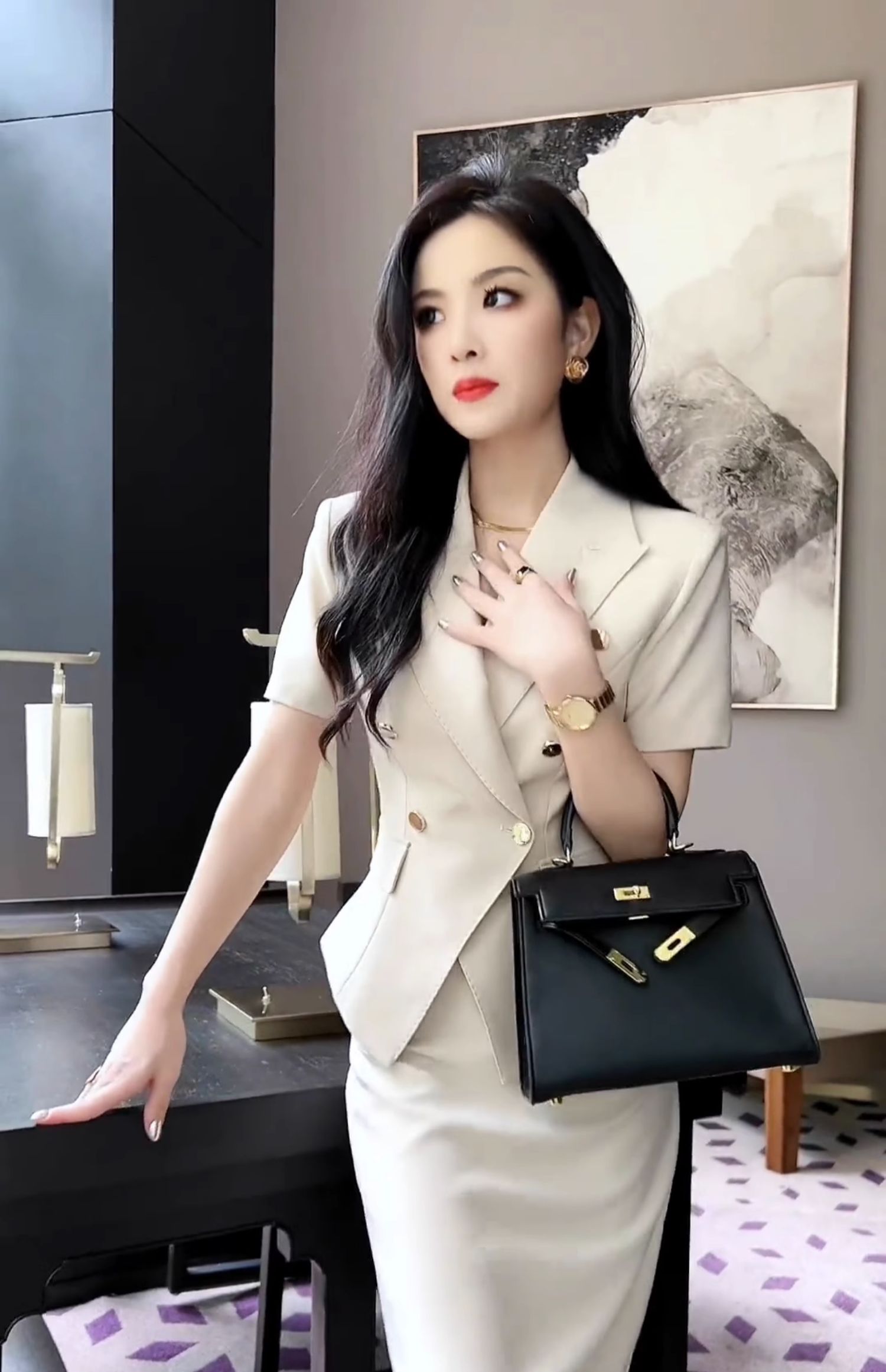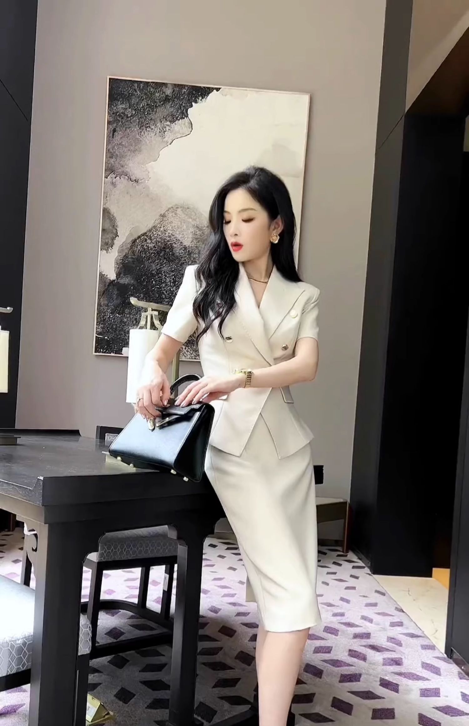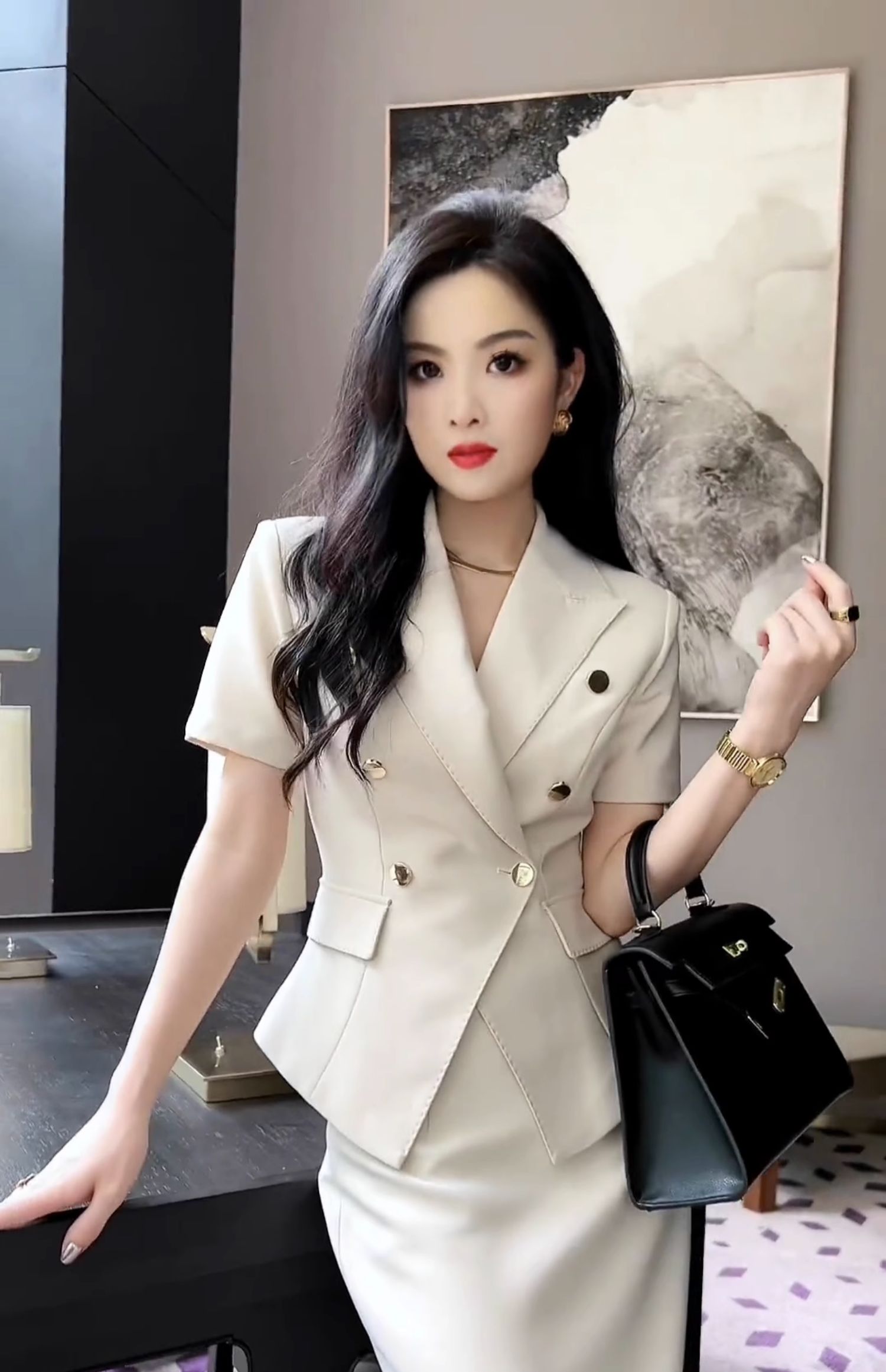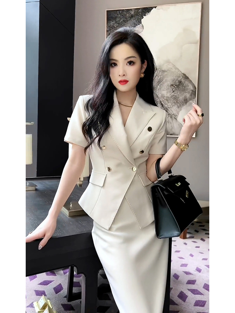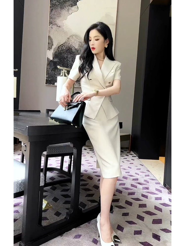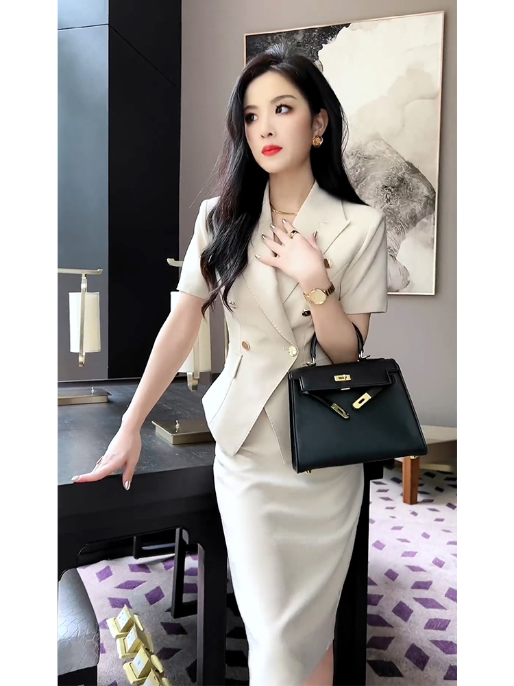 Bộ trang phục hai mảnh này gồm áo khoác kiểu và chân váy, được may từ chất liệu vải trắng có đường vân mềm mại. Kiểu dáng thanh lịch, phù hợp cho môi trường công sở hoặc những dịp gặp mặt. Áo khoác mặc bên ngoài, kết hợp cùng chân váy ôm tôn dáng. Có thể phối với áo thun hoặc áo sơ mi bên trong để tạo nên những phong cách khác nhau. | Tên sản phẩm: Áo Vest Nữ Vest Cả Bộ 2 Món Hàng Mùa Hè Đồ Công Sở - Thời Trang Nữ | Mã sản phẩm: H5398 - Giá: 2.660.000đ | Mã nhà sản xuất: SWREF-G06Hình ảnh sản phẩm