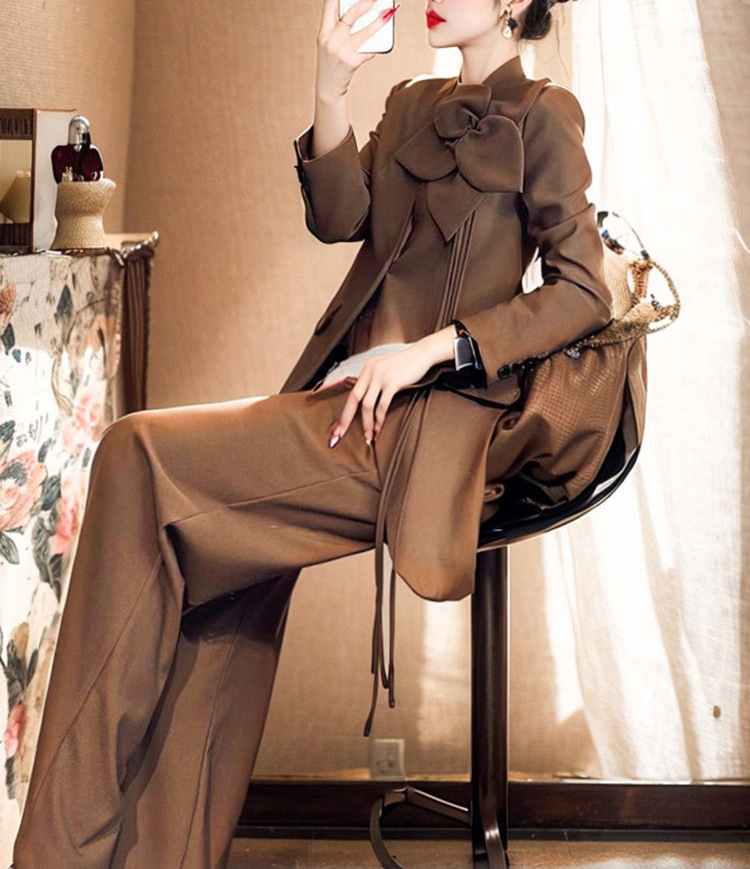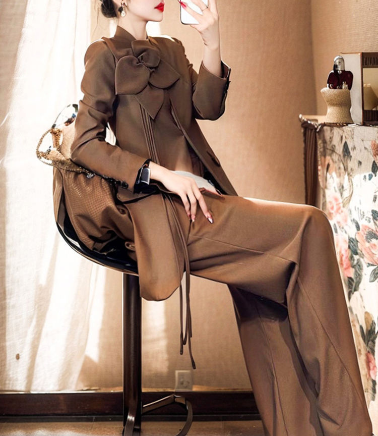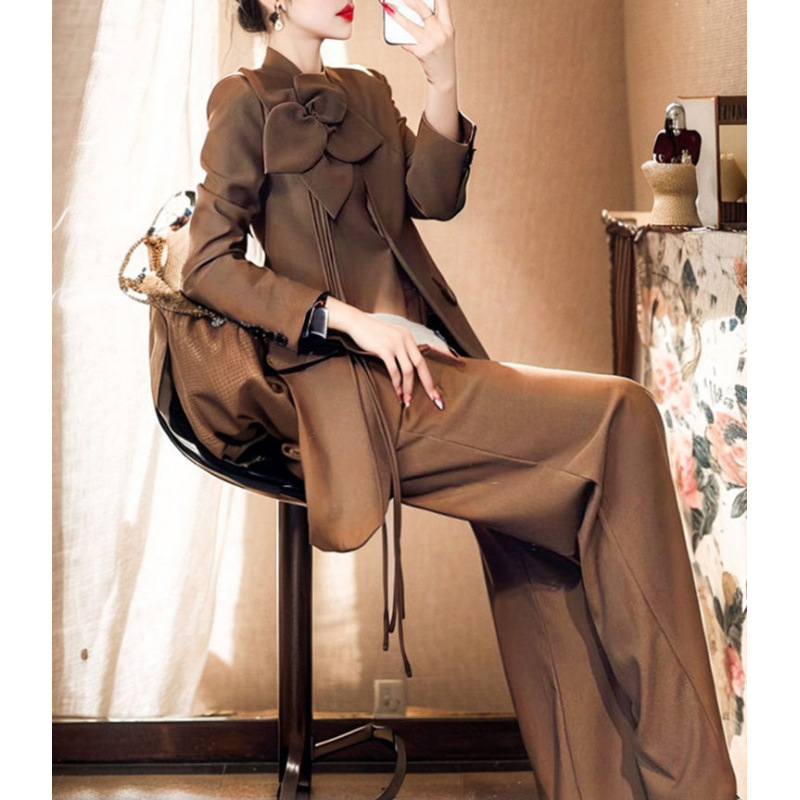 Bộ trang phục hai mảnh này mang sắc nâu ấm, lấy cảm hứng từ cách phối màu quen thuộc trong nấu nướng. Áo khoác dáng Tây và quần ống rộng được thiết kế tinh tế với những bông hoa nổi tạo điểm nhấn. Kiểu dáng giúp tôn dáng một cách nhẹ nhàng, phù hợp cho tiết trời mát mẻ. Bạn có thể mặc nguyên bộ để đồng điệu, hoặc tách riêng phối cùng các áo phông, áo len cơ bản để đa dạng phong cách hàng ngày. | Tên sản phẩm: Áo Vest Nữ Vest Cả Bộ 2 Món Họa Tiết Hoa Hàng Mùa Xuân Thu Đông - Thời Trang Nữ | Mã sản phẩm: A9577 - Giá: 3.380.000đ | Mã nhà sản xuất: CHTYAI-G06Hình ảnh sản phẩm
