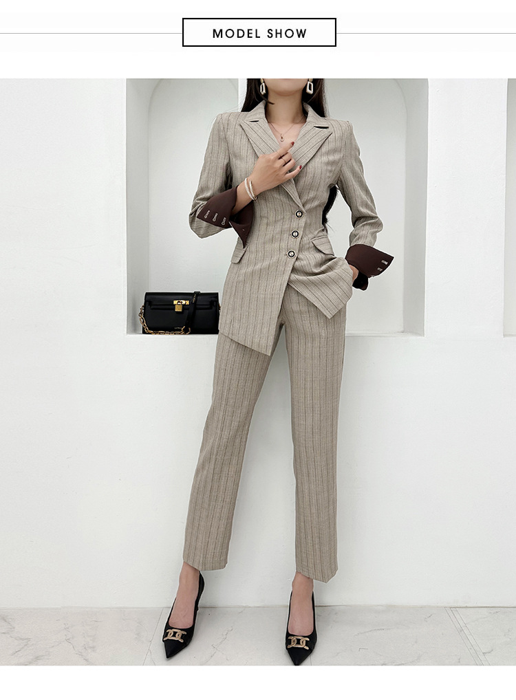 Bộ trang phục hai mảnh dành cho nữ, thiết kế phù hợp cho môi trường công sở và đi làm vào mùa thu. Áo khoác kiểu dáng ôn cơ thể, có sọc dọc tạo cảm giác thanh thoát, kết hợp cùng chiếc quần tây giúp tôn dáng. Chất vải mềm mại, thoáng mát, mang lại sự dễ chịu khi mặc cả ngày dài. Có thể mặc nguyên bộ để đồng bộ, hoặc phối riêng áo với quần khác linh hoạt. Phù hợp cho nhiều dịp làm việc và sinh hoạt hàng ngày. | Tên sản phẩm: Áo Vest Nữ Vest Dáng Ôm Cả Bộ 2 Món Hàng Mùa Xuân Thu Đông Đồ Công Sở - Thời Trang Nữ | Mã sản phẩm: B3258 - Giá: 1.420.000đ | Mã nhà sản xuất: ZHOUT-G04Hình ảnh sản phẩm