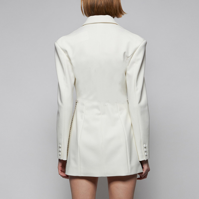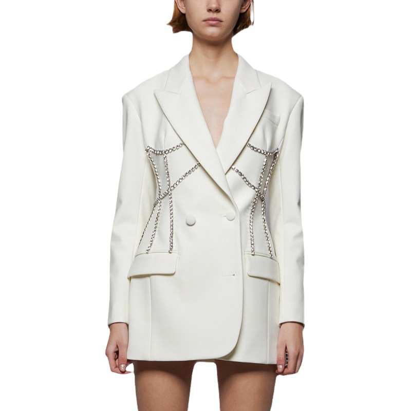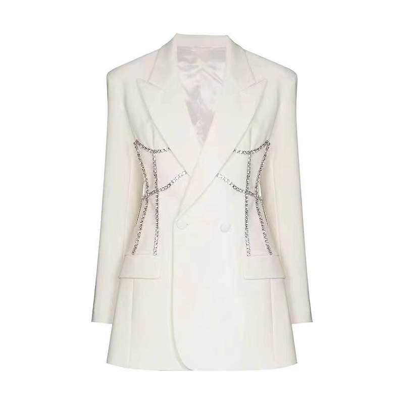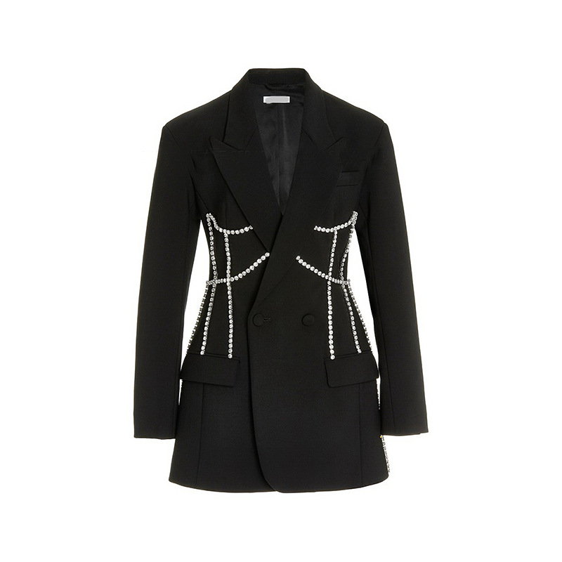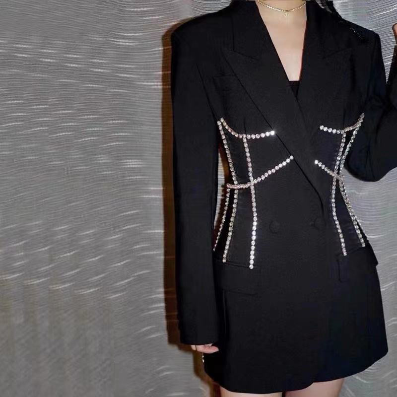 Áo khoác dáng dài kết hợp với chân váy, tạo nên một bộ trang phục thanh lịch. Điểm nhấn là các viên đá lấp lánh tinh tế được đính trên áo. Thiết kế ôm nhẹ cơ thể, tôn lên đường nét. Bạn có thể mặc bộ trang phục này trong nhiều dịp khác nhau, từ đi làm đến các buổi gặp mặt. Phù hợp để phối cùng giày cao gót và một chiếc túa xách nhỏ. | Tên sản phẩm: Áo Vest Nữ Vest Gắn Đá Hàng Mùa Xuân Thu Đông Phong Cách Âu Mỹ - Thời Trang Nữ | Mã sản phẩm: T4380 - Giá: 1.420.000đ | Mã nhà sản xuất: GUDG-G04Hình ảnh sản phẩm