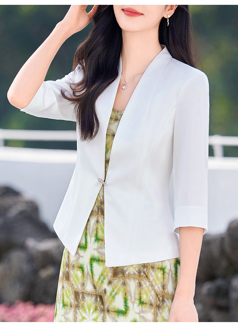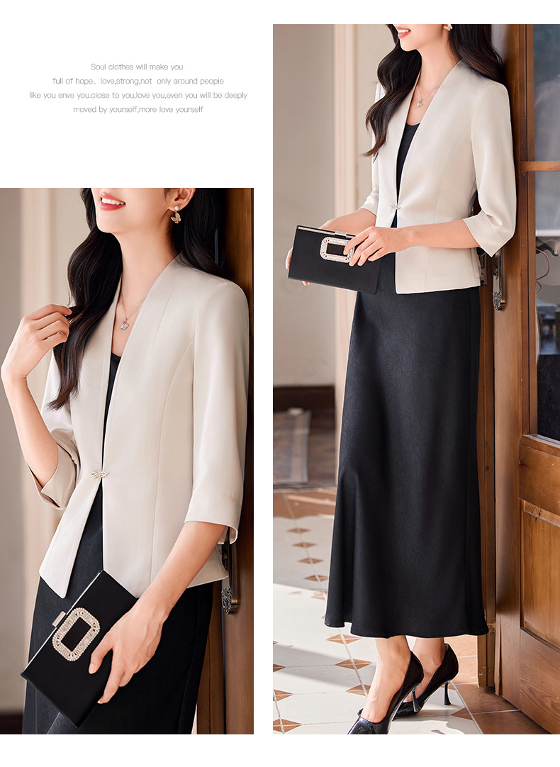 Áo khoác tay dài bảy phần dành cho nữ, có màu vàng nhạt như quả mơ chín. Kiểu dáng ngắn vừa vặn, tạo điểm nhấn thanh lịch. Chất vải mềm mại, thoáng mát, phù hợp cho những ngày hè. Bạn có thể mặc cùng quần ống rộng hoặc chân váy để tạo nên những bộ trang phục đẹp mắt. Dễ dàng phối đồ cho các dịp đi làm hoặc gặp gỡ hằng ngày. | Tên sản phẩm: Áo Vest Nữ Vest Hàng Mùa Hè - Thời Trang Nữ | Mã sản phẩm: L1835 - Giá: 970.000đ | Mã nhà sản xuất: SHRYIA-G03Hình ảnh sản phẩm
