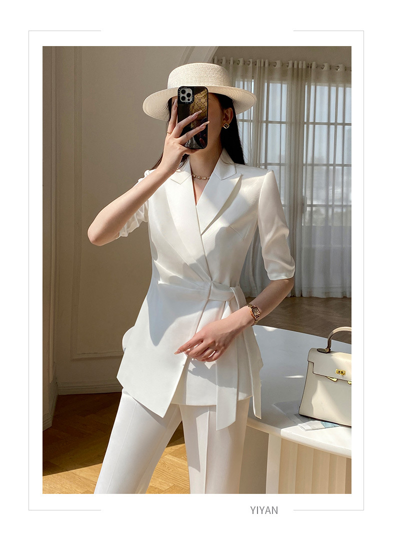 Bộ trang phục tây nữ dành cho mùa hè, được may từ chất vải mỏng nhẹ và thoáng mát. Thiết kế kết hợp nét thanh lịch của đồ công sở với phong cách trẻ trung, hiện đại. Áo khoác có điểm nhấn là dây thắt nơ ở thân trước, tạo vẻ eo thon. Có thể mặc nguyên bộ để tạo vẻ chỉn chu, hoặc tách riêng áo với quần để phối cùng trang phục khác. Phù hợp cho nhiều dịp sinh hoạt hằng ngày. | Tên sản phẩm: Áo Vest Nữ Vest Hàng Mùa Hè Đồ Công Sở - Thời Trang Nữ | Mã sản phẩm: k0794 - Giá: 1.590.000đ | Mã nhà sản xuất: GUDG-G04Hình ảnh sản phẩm