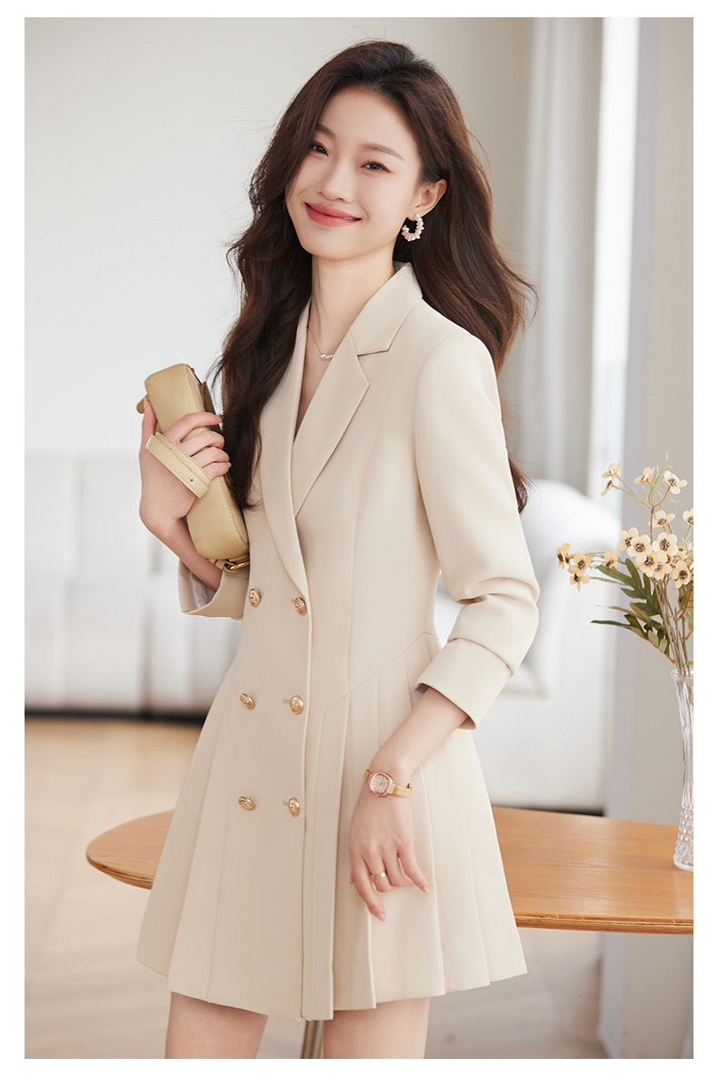 Chiếc đầm công sở này có thiết kế kết hợp giữa phần thân trên dáng áo vét lịch sự và phần chân váy xếp ly trẻ trung. Chất vải mềm mại, thoáng mát, thích hợp mặc trong tiết trời xuân ấm áp. Sản phẩm phù hợp cho môi trường làm việc, giúp người mặc trông gọn gàng và chuyên nghiệp. Có thể kết hợp cùng áo sơ mi bên trong và giày cao gót để hoàn thiện bộ trang phục. | Tên sản phẩm: Áo Vest Nữ Vest Hàng Mùa Xuân Thu Đông Đồ Công Sở - Thời Trang Nữ | Mã sản phẩm: L1863 - Giá: 1.280.000đ | Mã nhà sản xuất: SHRYIA-G04Hình ảnh sản phẩm