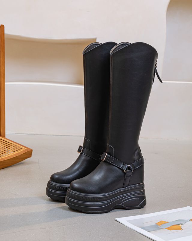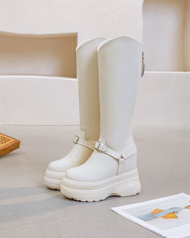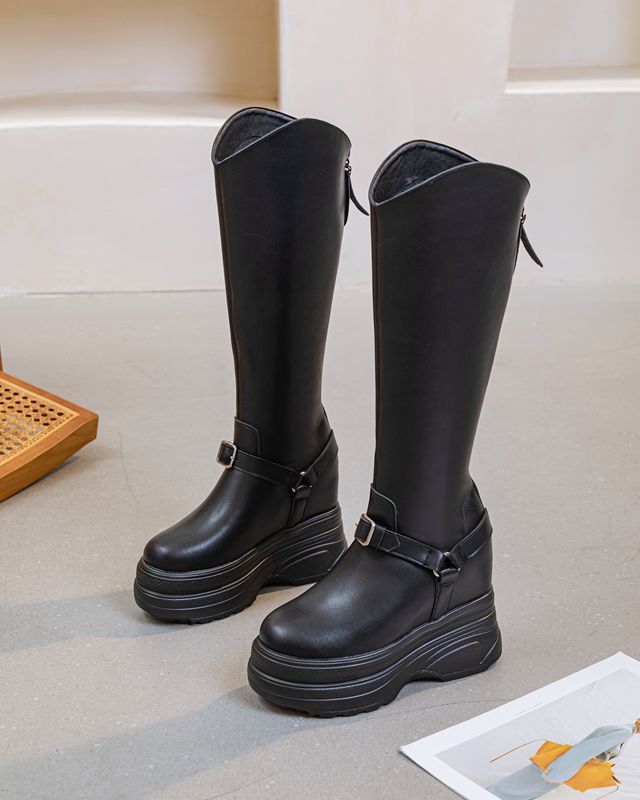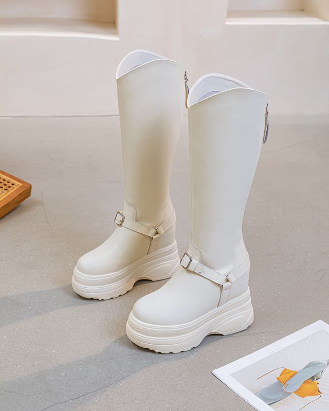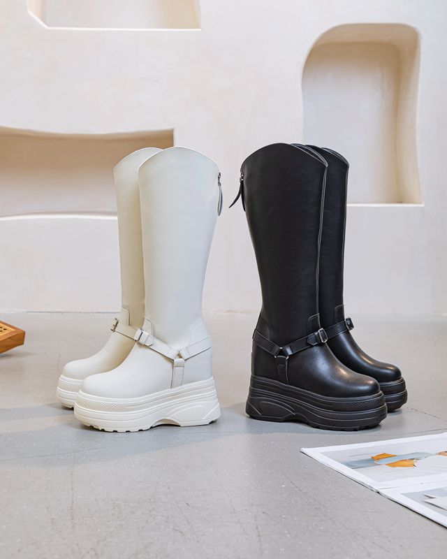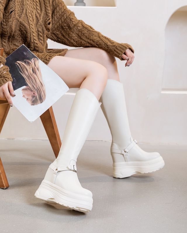 Đôi bốt nữ dáng ôm với chiều cao ụp gót đặc biệt, chỉ dài 11 phân nên rất phù hợp cho những bạn gái có dáng người nhỏ. Phần đế được làm dày hơn cùng thiết kế tăng chiều cao bên trong, giúp tôn lên vóc dáng một cách tinh tế. Kiểu dáng cổ điển, dễ dàng kết hợp với nhiều loại trang phục khác nhau như quần jeans, váy hay legging. Bạn chỉ cần xỏ chân vào và kéo khóa phía sau là đã có ngay một phong cách chỉn chu, năng động cho mọi hoạt động hằng ngày. | Tên sản phẩm: Boot Cổ Cao Nữ Cổ Cao Qua Gối Tăng Chiều Cao Đế Cao - Giày Dép Nữ | Mã sản phẩm: B4044 - Giá: 1.090.000đ | Mã nhà sản xuất: WEDS-G03Hình ảnh sản phẩm