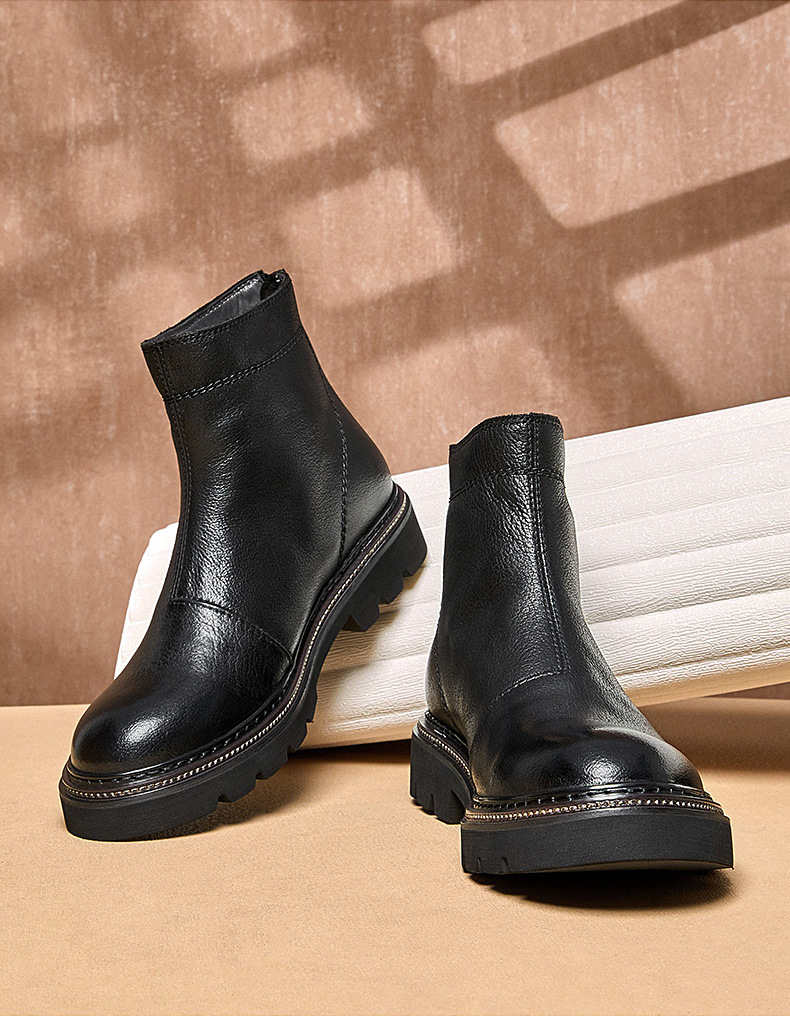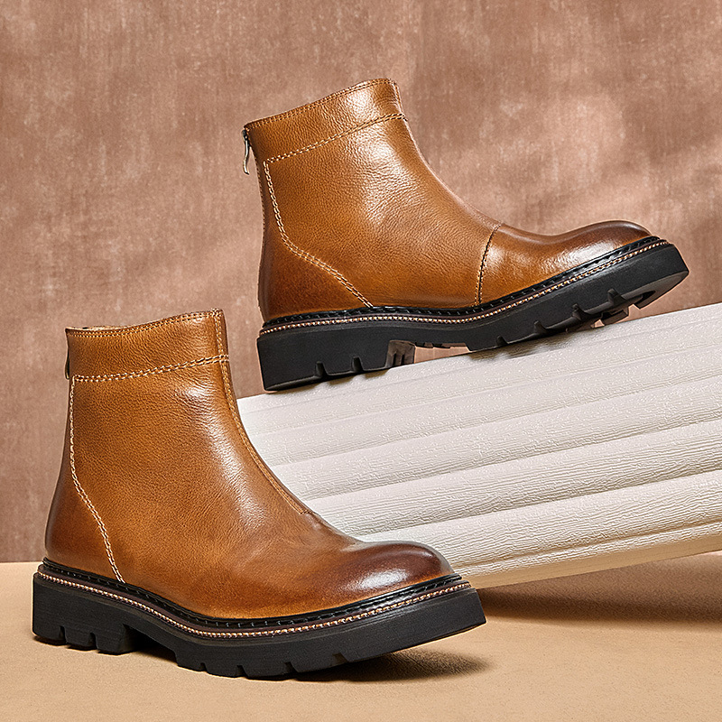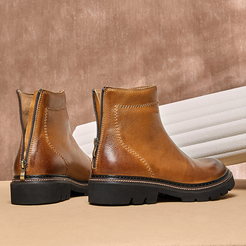 Giày bốt nam kiểu dáng Anh Quốc với phần đế dày giúp tăng chiều cao. Sản phẩm được làm từ chất liệu da thật bền đẹp. Thiết kế có phong cách cổ điển kết hợp khóa kéo phía sau tiện lợi, tạo điểm nhấn riêng. Kiểu giày bốt ngắn này dễ dàng phối cùng nhiều trang phục như quần jeans hay quần âu. Bạn chỉ cần xỏ chân vào và kéo khóa nhẹ nhàng là đã có ngay vẻ ngoại chỉn chu. | Tên sản phẩm: Boot Cổ Thấp Nam Chất Liệu Da Bò Tăng Chiều Cao Đế Cao - Giày Dép Nam | Mã sản phẩm: a3530 - Giá: 3.140.000đ | Mã nhà sản xuất: SHDT-G06Hình ảnh sản phẩm