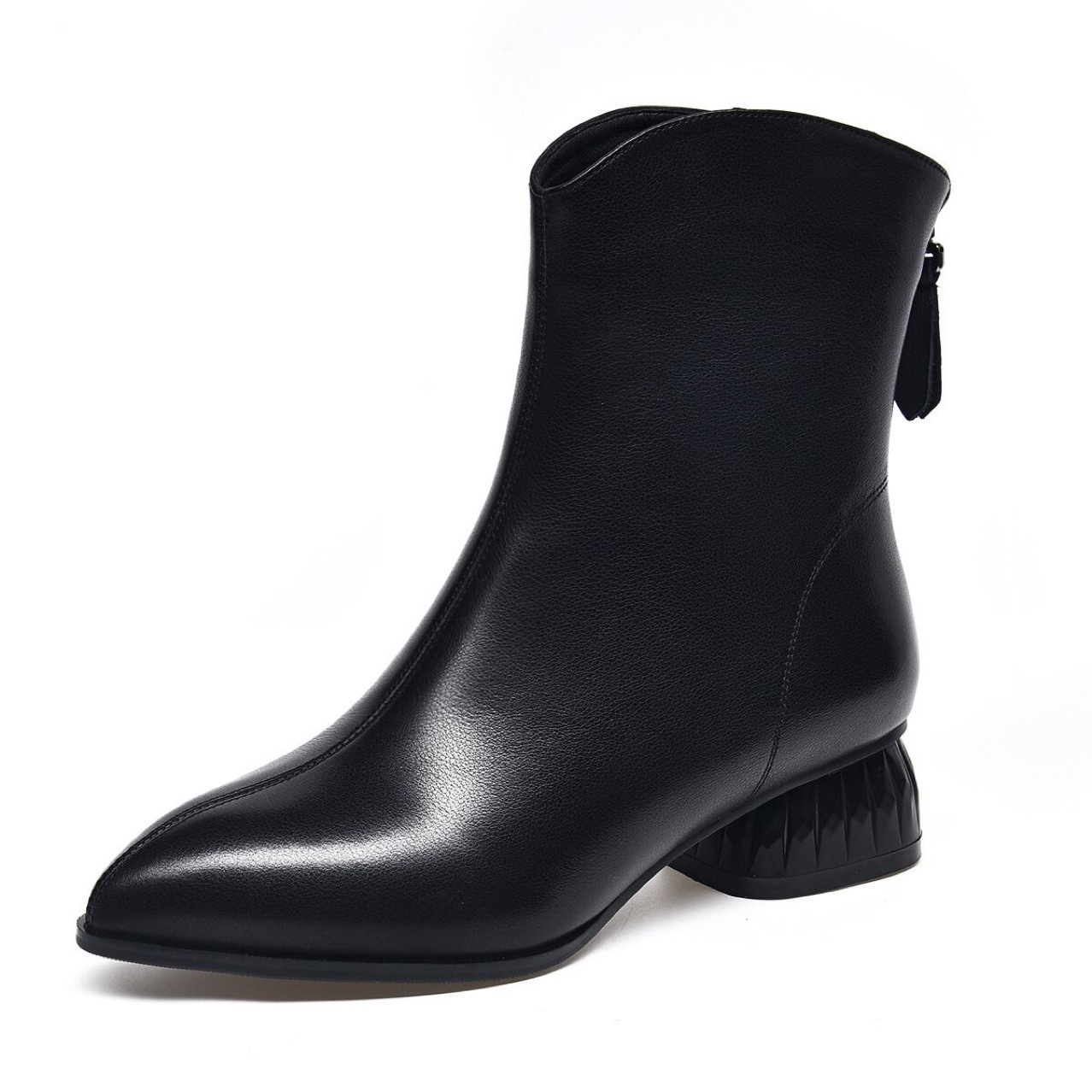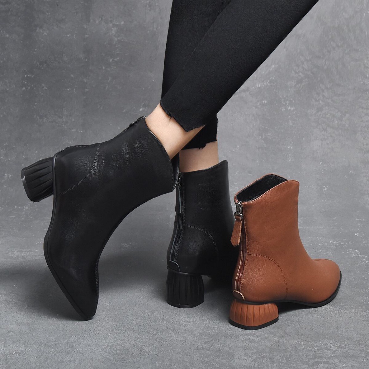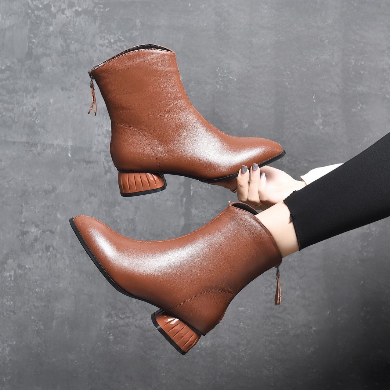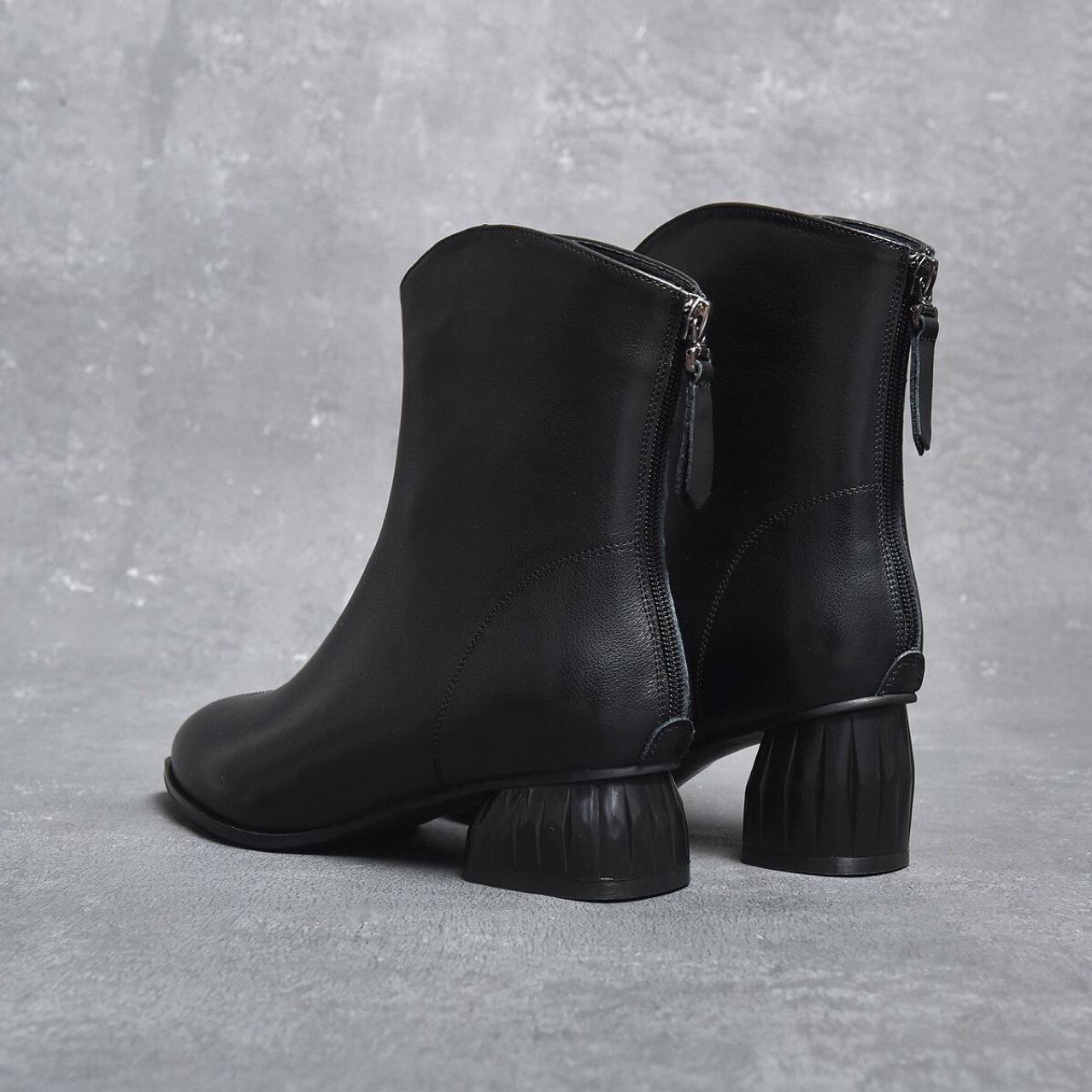 Đôi bốt cổ thấp này có phần mũi nhọn và cổ giày khoét hình chữ V độc đáo. Sản phẩm được làm từ chất liệu da thật, bền đẹp. Phần đế được thiết kế có lớp đệm bên trong giúp tăng chiều cao, cùng với gót chắc chắn tạo dáng đứng vững. Kiểu dáng phù hợp để kết hợp với nhiều loại trang phục khác nhau. Bạn có thể mang chúng hằng ngày, rất tiện lợi và thoải mái khi di chuyển. | Tên sản phẩm: Boot Cổ Thấp Nữ Chất Liệu Da Bò Mũi Nhọn Gót Vuông Tăng Chiều Cao - Giày Dép Nữ | Mã sản phẩm: D5454 - Giá: 1.520.000đ | Mã nhà sản xuất: TOREHU-G04Hình ảnh sản phẩm