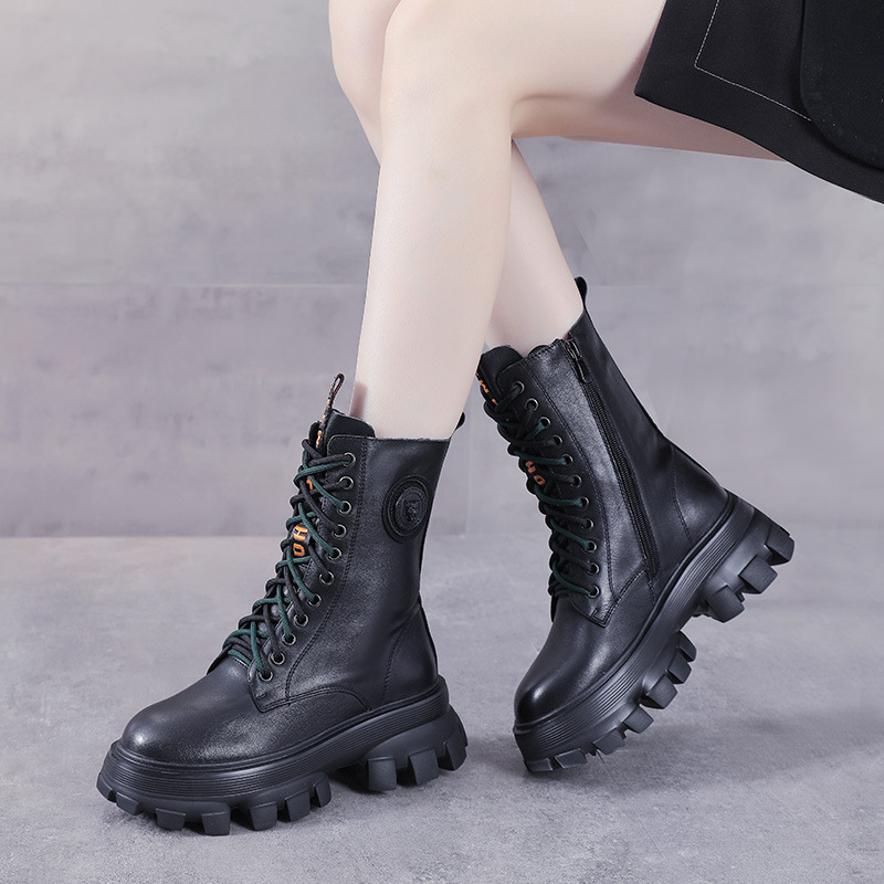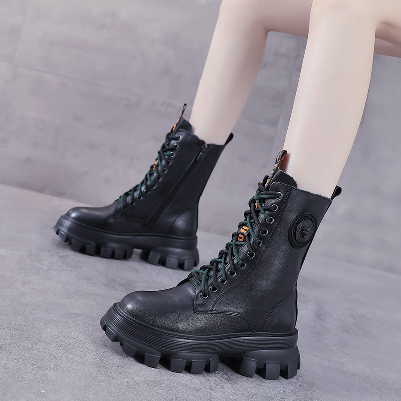 Đôi bốt cổ thấp này có phần đế được làm dày và cao, giúp tăng chiều cao một cách tinh tế. Được làm từ chất liệu da mềm mại bền đẹp, kiểu dáng cổ điển dễ dàng phối hợp với nhiều trang phục khác nhau. Thiết kế có khóa kéo bên hông giúp bạn mang vào và tháo ra một cách thuận tiện. Rất phù hợp để sử dụng trong những ngày thời tiết mát mẻ. | Tên sản phẩm: Boot Cổ Thấp Nữ Chất Liệu Da Bò Tăng Chiều Cao Đế Cao Hàng Mùa Xuân Thu Đông - Giày Dép Nữ | Mã sản phẩm: a2864 - Giá: 1.880.000đ | Mã nhà sản xuất: WEDS-G05Hình ảnh sản phẩm