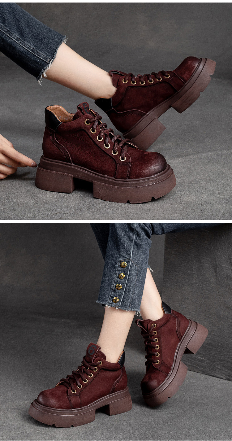 Đôi bốt cổ thấp nữ dáng tròn, điểm nhấn là dây cột phía trước tạo nên vẻ ngoài năng động. Sản phẩm có phần đế dày giúp tăng chiều cao nhẹ và mang lại cảm giác vững chãi khi di chuyển. Kiểu dáng dễ phối đồ, phù hợp cho các dịp đi chơi, giao lưu hằng ngày. Chỉ cần xỏ vào và cột dây là bạn đã có ngay một phong cách thoải mái và trẻ trung. | Tên sản phẩm: Boot Cổ Thấp Nữ Mũi Tròn Đế Cao Hàng Mùa Xuân Thu Đông - Giày Dép Nữ | Mã sản phẩm: B2391 - Giá: 1.620.000đ | Mã nhà sản xuất: SHDU-G05Hình ảnh sản phẩm