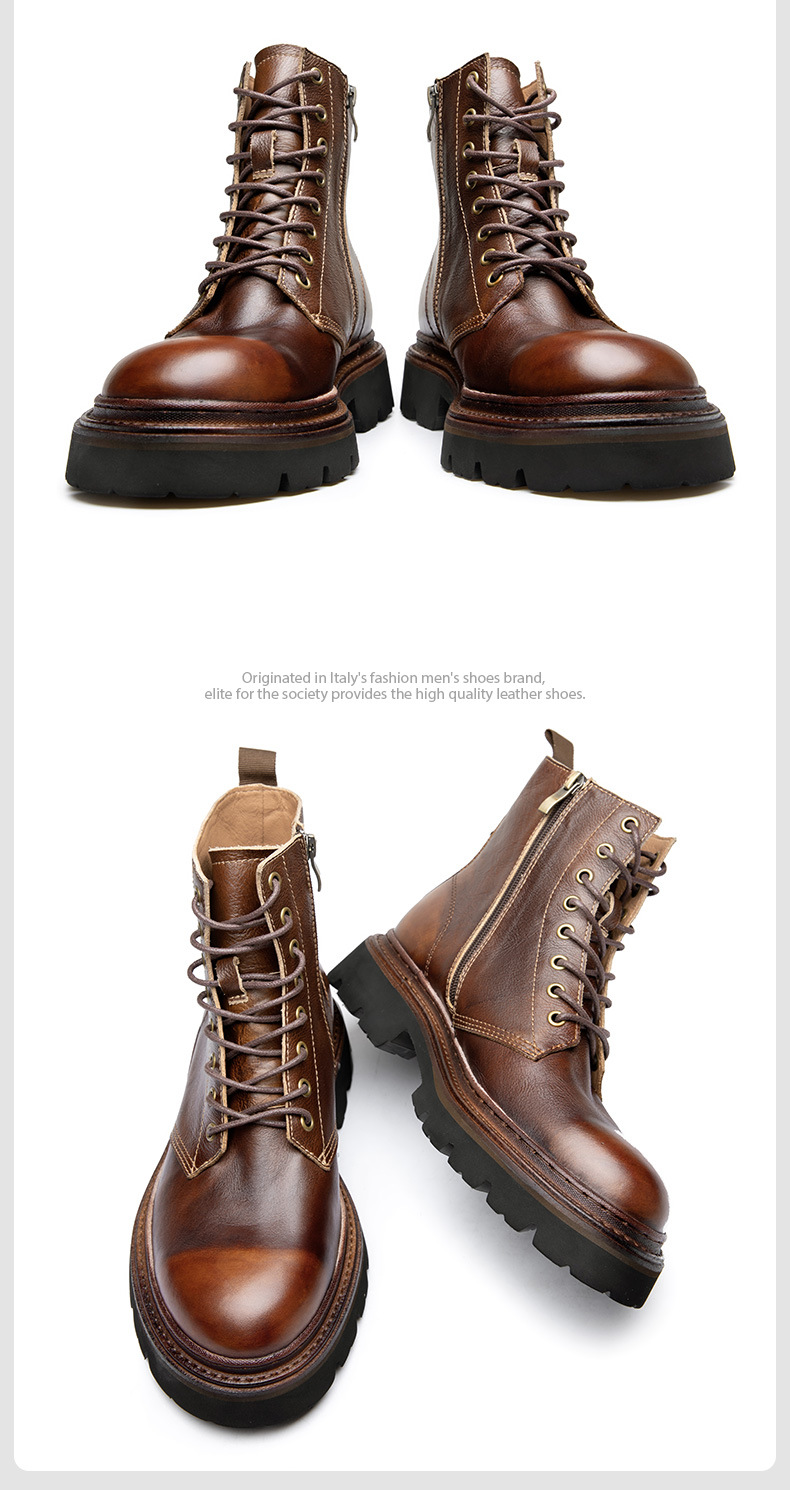 Đôi giày này mang phong cách cổ điển với thiết kế cổ cao, tạo dáng khỏe khoắn. Sản phẩm được làm từ chất liệu mềm mại, có đế dày giúp tăng chiều cao một cách nhẹ nhàng. Phần khóa kéo bên hông giúp bạn mang vào và tháo ra một cách thuận tiện. Đế ngoài được thiết kế chống trơn trượt, phù hợp để sử dụng trong những tháng tiết trời mát mẻ. Bạn có thể kết hợp cùng nhiều loại trang phục khác nhau cho các dịp sinh hoạt hằng ngày. | Tên sản phẩm: Boot Martin Nam Chất Liệu Da Bò Tăng Chiều Cao Đế Cao Hàng Mùa Xuân Thu Đông Phục Cổ Cổ Điển - Giày Dép Nam | Mã sản phẩm: B0891 - Giá: 2.670.000đ | Mã nhà sản xuất: SHDT-G06Hình ảnh sản phẩm