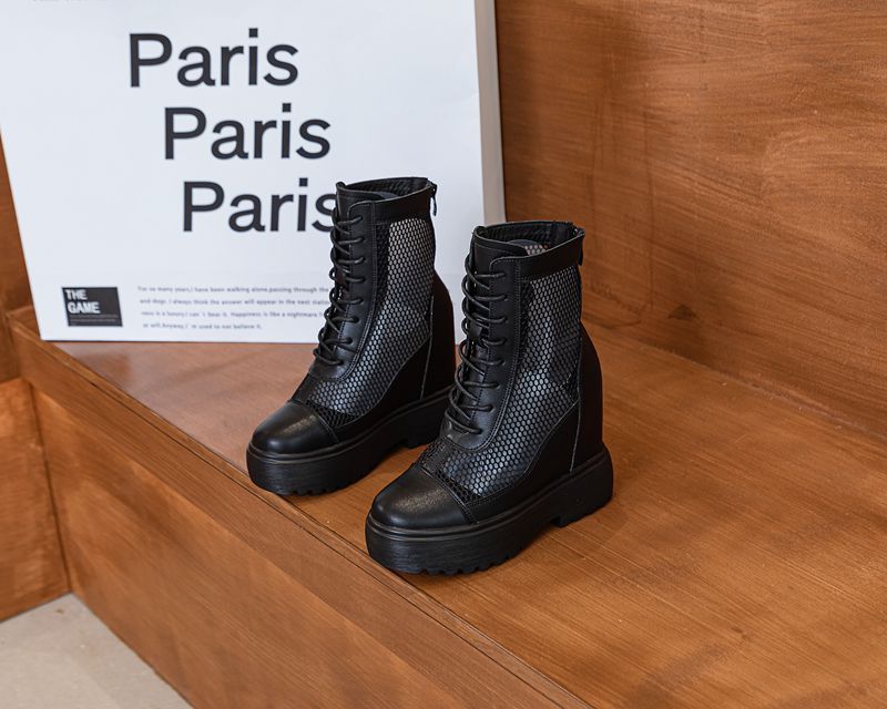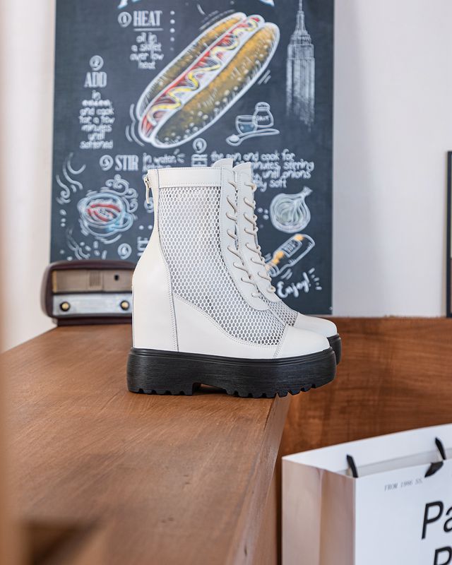 Đôi bốt này có phần đế dày giúp tăng chiều cao một cách tự nhiên. Kiểu dáng bốt lười cổ thấp, kết hợp lỗ thông hơi dạng lưới tạo cảm giác thoải mái khi mang cả ngày. Chất liệu da mềm ôm chân nhưng vẫn giữ form dáng đẹp. Thiết kế dễ dàng phối hợp với nhiều loại trang phục như quần jeans hay váy ngắn. Chỉ cần xỏ chân vào và kéo khóa nhẹ nhàng là đã sẵn sàng để ra ngoài. | Tên sản phẩm: Boot Martin Nữ Chất Liệu Da Bò Cao 11cm Tăng Chiều Cao Đế Cao - Giày Dép Nữ | Mã sản phẩm: B4322 - Giá: 1.000.000đ | Mã nhà sản xuất: WEDS-G03Hình ảnh sản phẩm