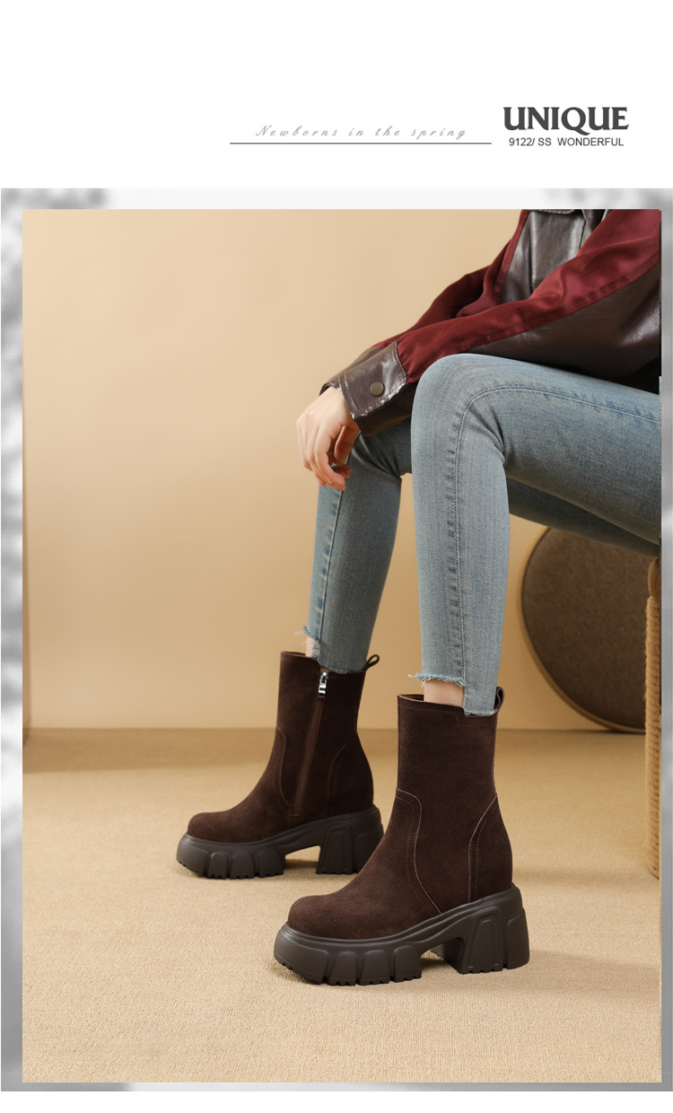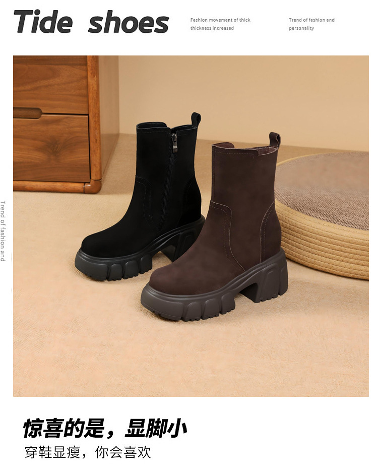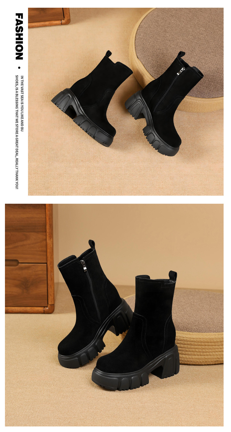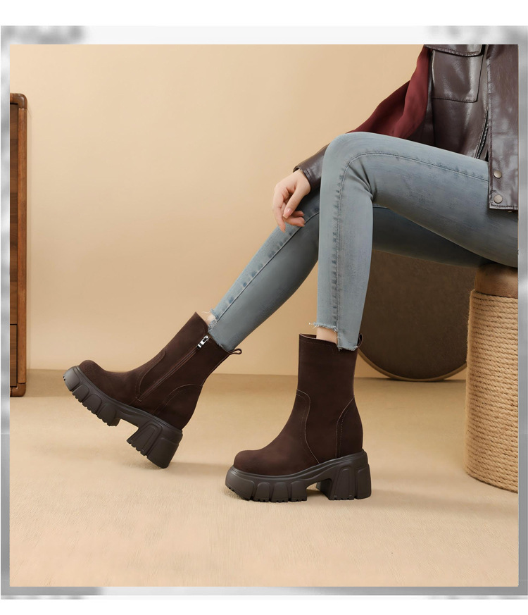 Đôi bốt này có phần mũi tròn và đế dày khoảng mười phân, giúp tăng chiều cao một cách thoải mái. Kiểu dáng ống cao ôm chân tạo vẻ khỏe khoắn, phù hợp cho mùa thu đông. Chất liệu có khả năng chống nước nhẹ, kết hợp gót thô chắc chắn và khóa kéo bên tiện lợi. Bạn có thể dùng để phối cùng quần jeans, váy hay quần legging để tạo điểm nhấn nổi bật cho trang phục hàng ngày. | Tên sản phẩm: Cao Gót Nữ Cao 10cm Mũi Tròn Gót Vuông Đế Cao Hàng Mùa Xuân Thu Đông Phục Cổ Cổ Điển - Giày Dép Nữ | Mã sản phẩm: B7882 - Giá: 1.920.000đ | Mã nhà sản xuất: QIDNG-G05Hình ảnh sản phẩm