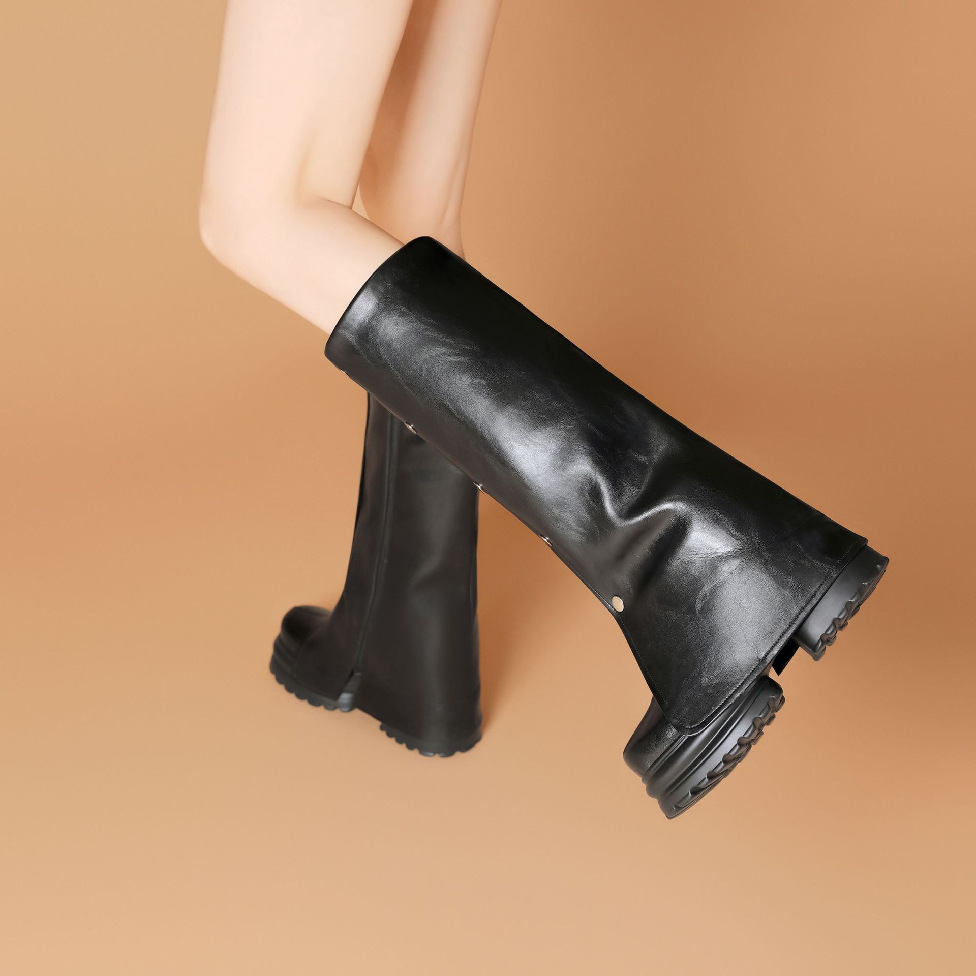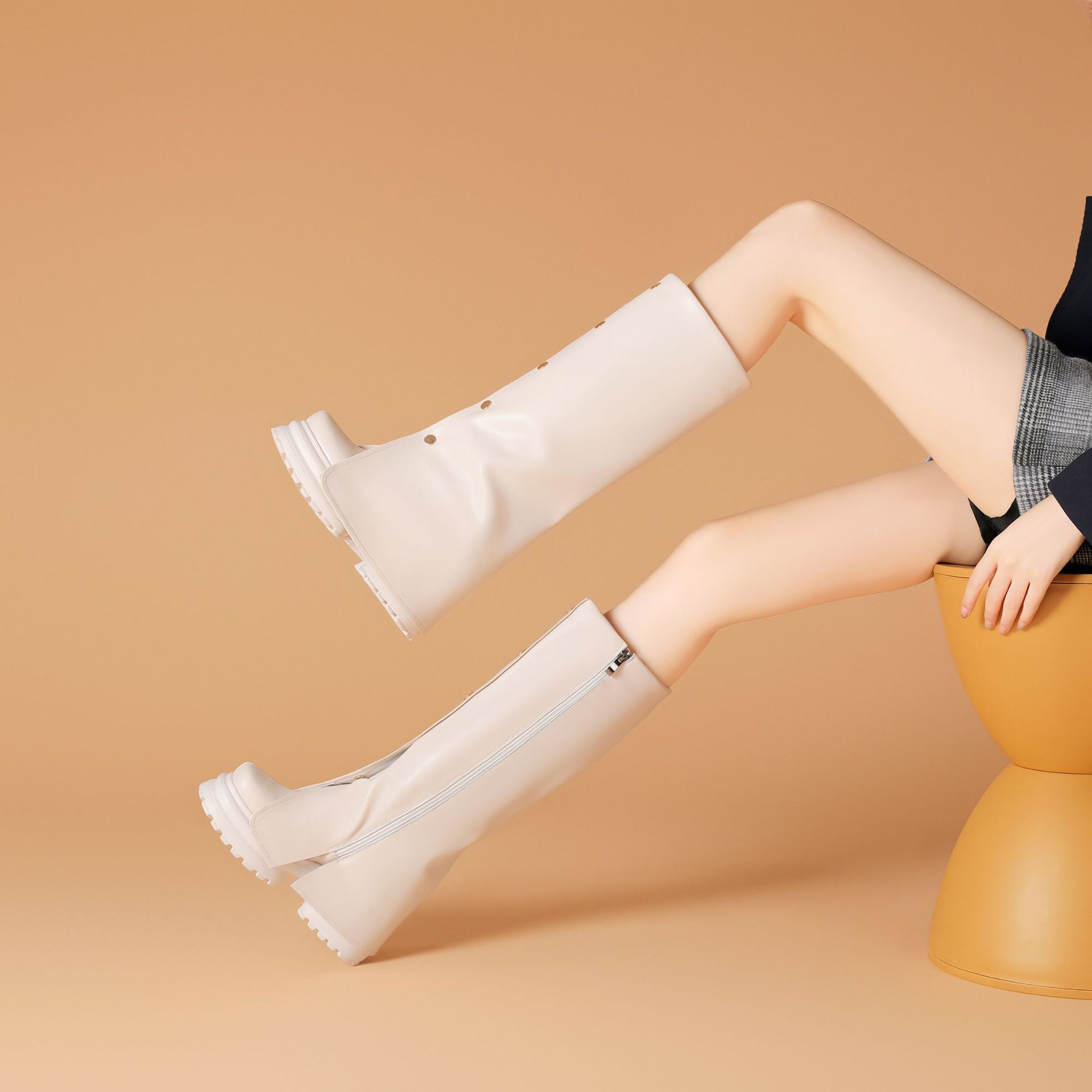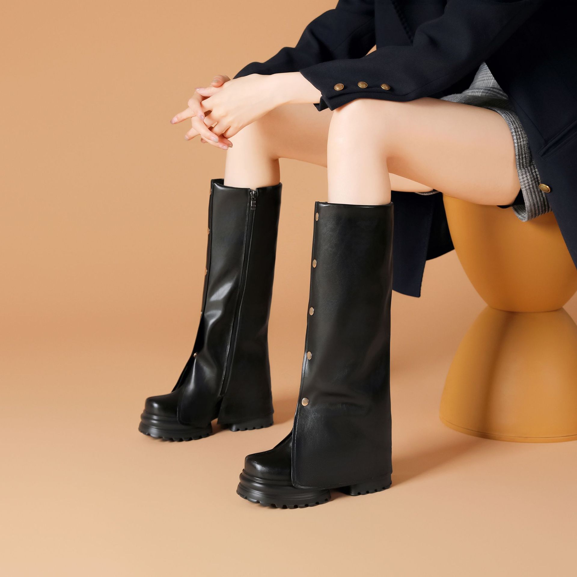 Đôi bốt cao cổ này có phần đế dày và gót được thiết kế đặc biệt bên trong, giúp tăng thêm chiều cao một cách tinh tế. Phong cách thiết kế mang hơi hướng cổ điển châu Âu, phù hợp để phối cùng nhiều kiểu trang phục trong mùa thu đông. Bạn chỉ cần xỏ chân vào và kéo khóa phía sau là đã có ngay một diện mật mới mẻ, vừa thời trang lại vừa giúp bạn tự tin hơn. | Tên sản phẩm: Cao Gót Nữ Cao 10cm Tăng Chiều Cao Đế Cao Hàng Mùa Xuân Thu Đông - Giày Dép Nữ | Mã sản phẩm: C1310 - Giá: 3.590.000đ | Mã nhà sản xuất: QIDNG-G06Hình ảnh sản phẩm