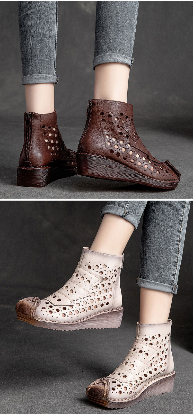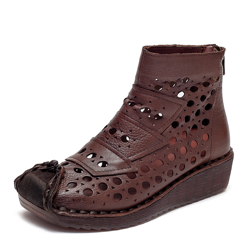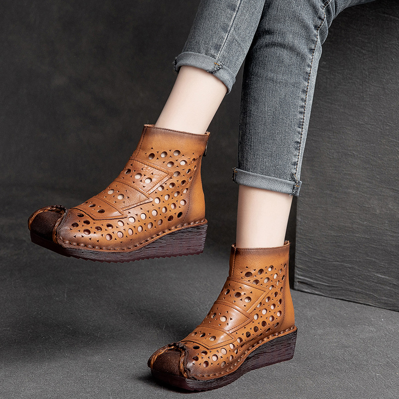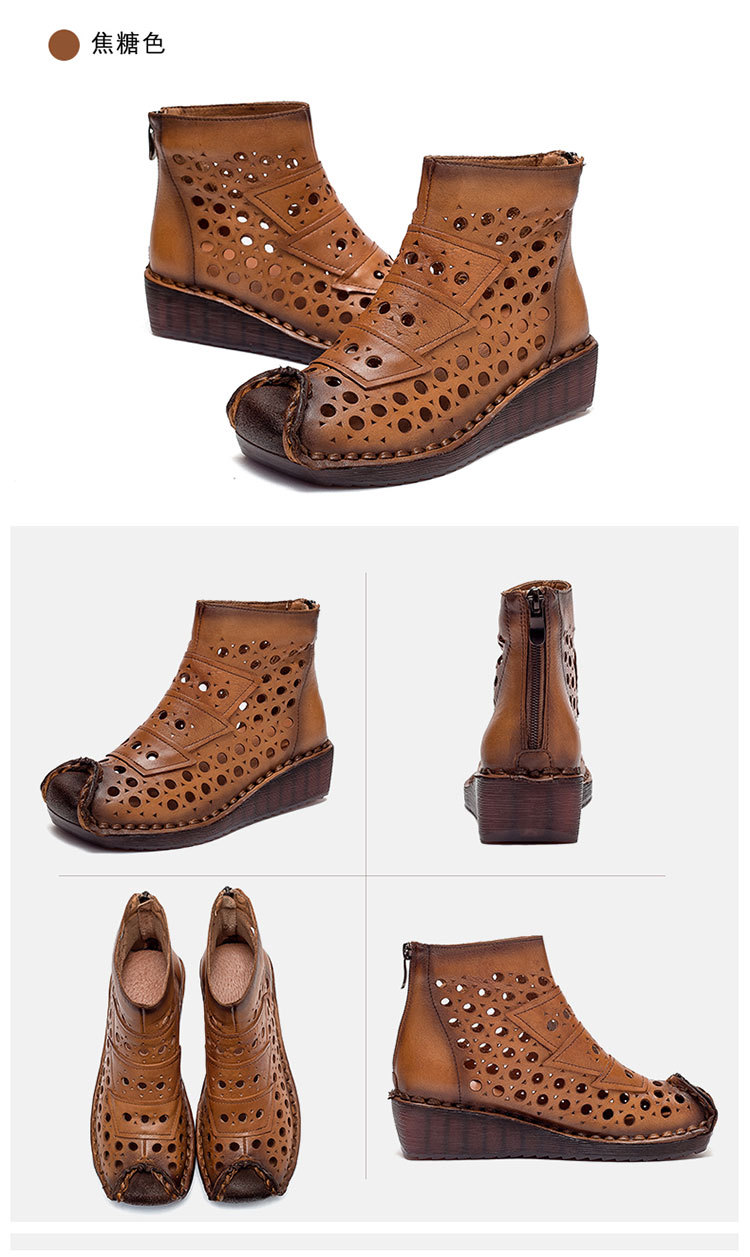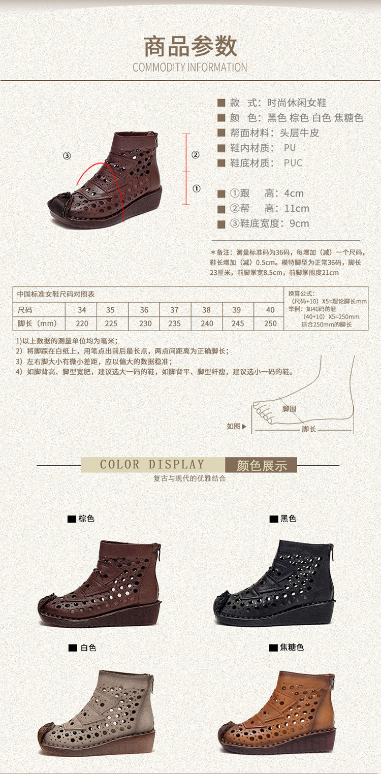 Đôi bốt mùa hè này có phần đế dày và gót bằng, tạo dáng tròn mũi mang phong cách hoài cổ. Sản phẩm được làm từ chất liệu da mềm, kết hợp kỹ thuật đánh bóng tạo hiệu ứng màu độc đáo. Phần thân bốt có chi tiết khoét họa tiết, giúp đôi chân thông thoáng. Bạn có thể dễ dàng phối với nhiều trang phục khác nhau. Mang giày và cột dây thật chặt để có cảm giác thoải mái khi di chuyển. | Tên sản phẩm: Cao Gót Nữ Chất Liệu Da Bò Mũi Tròn Đế Xuồng Đế Cao Hàng Mùa Hè Phục Cổ Cổ Điển - Giày Dép Nữ | Mã sản phẩm: B1862 - Giá: 1.520.000đ | Mã nhà sản xuất: SHDU-G04Hình ảnh sản phẩm