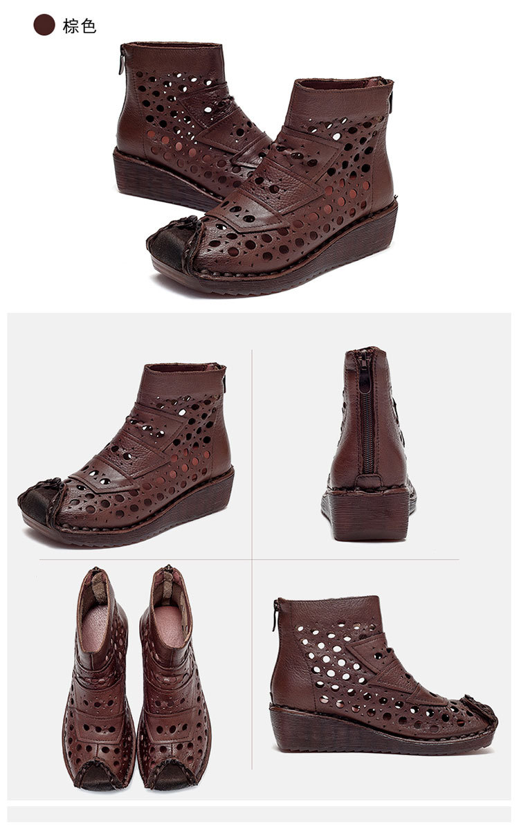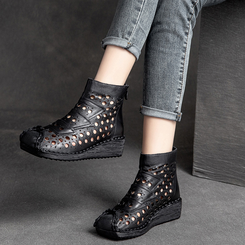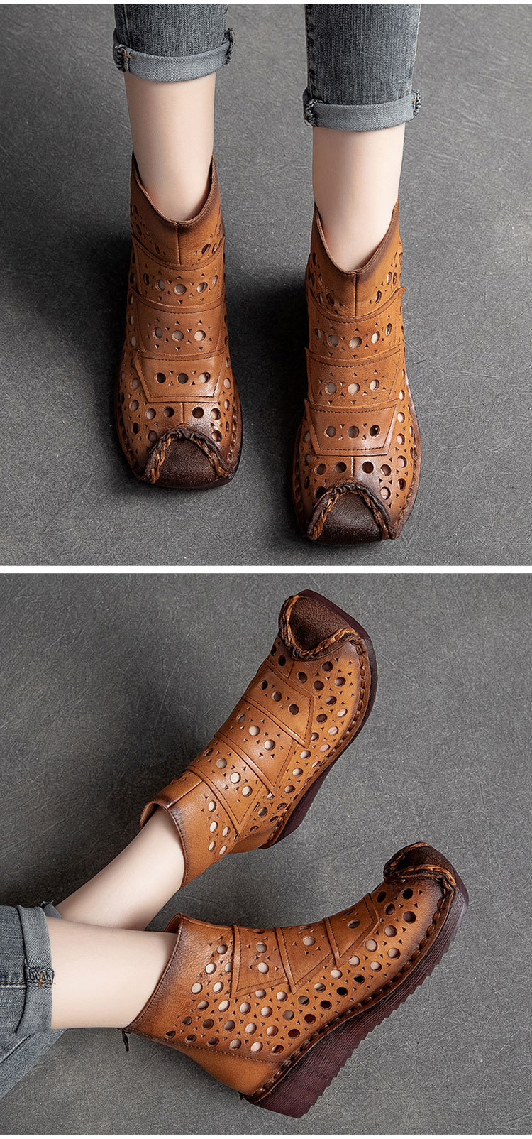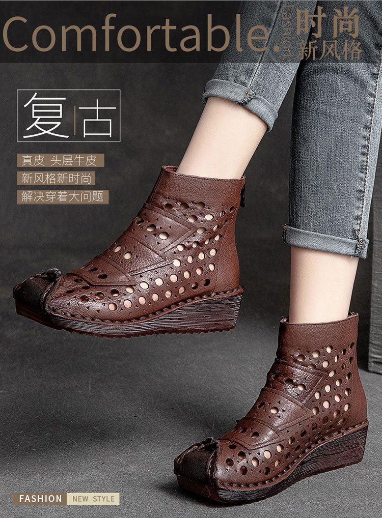 Đôi bốt mùa hè này có phần đế dày và gót bằng, tạo dáng tròn mũi mang phong cách hoài cổ. Sản phẩm được làm từ chất liệu da mềm, kết hợp kỹ thuật đánh bóng tạo hiệu ứng màu độc đáo. Phần thân bốt có chi tiết khoét họa tiết, giúp đôi chân thông thoáng. Bạn có thể dễ dàng phối với nhiều trang phục khác nhau. Mang giày và cột dây thật chặt để có cảm giác thoải mái khi di chuyển. | Tên sản phẩm: Cao Gót Nữ Chất Liệu Da Bò Mũi Tròn Đế Xuồng Đế Cao Hàng Mùa Hè Phục Cổ Cổ Điển - Giày Dép Nữ | Mã sản phẩm: B1862 - Giá: 1.520.000đ | Mã nhà sản xuất: SHDU-G04Hình ảnh sản phẩm