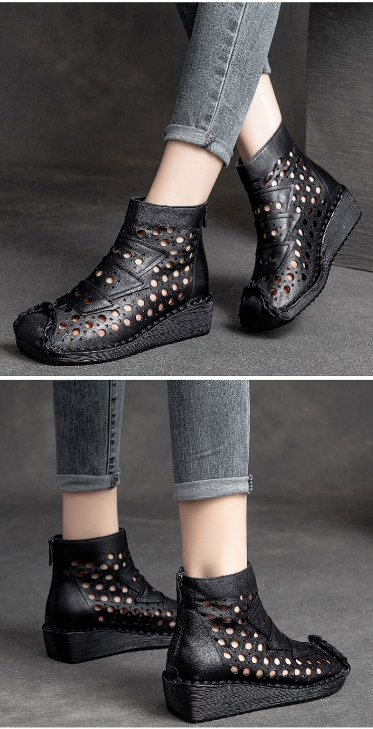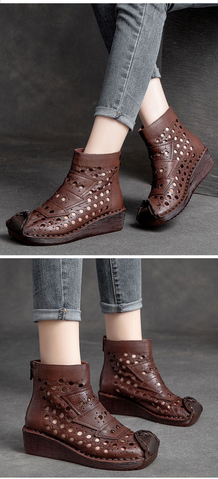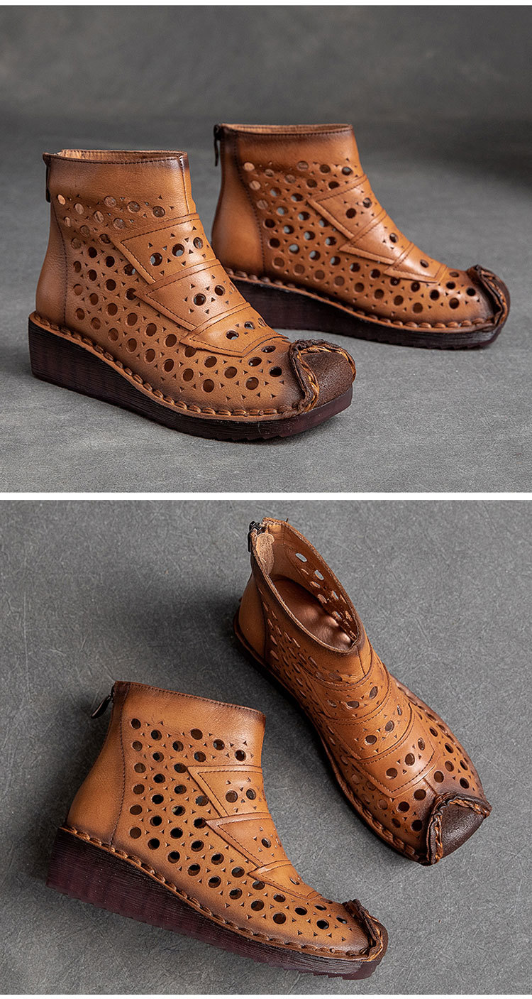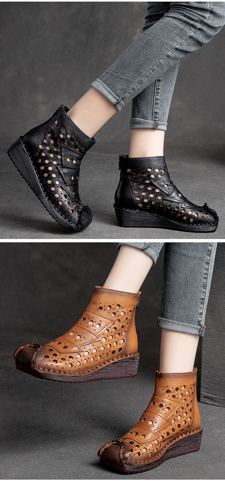 Đôi bốt mùa hè này có phần đế dày và gót bằng, tạo dáng tròn mũi mang phong cách hoài cổ. Sản phẩm được làm từ chất liệu da mềm, kết hợp kỹ thuật đánh bóng tạo hiệu ứng màu độc đáo. Phần thân bốt có chi tiết khoét họa tiết, giúp đôi chân thông thoáng. Bạn có thể dễ dàng phối với nhiều trang phục khác nhau. Mang giày và cột dây thật chặt để có cảm giác thoải mái khi di chuyển. | Tên sản phẩm: Cao Gót Nữ Chất Liệu Da Bò Mũi Tròn Đế Xuồng Đế Cao Hàng Mùa Hè Phục Cổ Cổ Điển - Giày Dép Nữ | Mã sản phẩm: B1862 - Giá: 1.520.000đ | Mã nhà sản xuất: SHDU-G04Hình ảnh sản phẩm