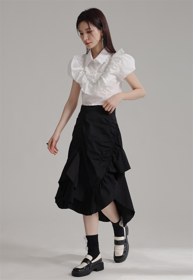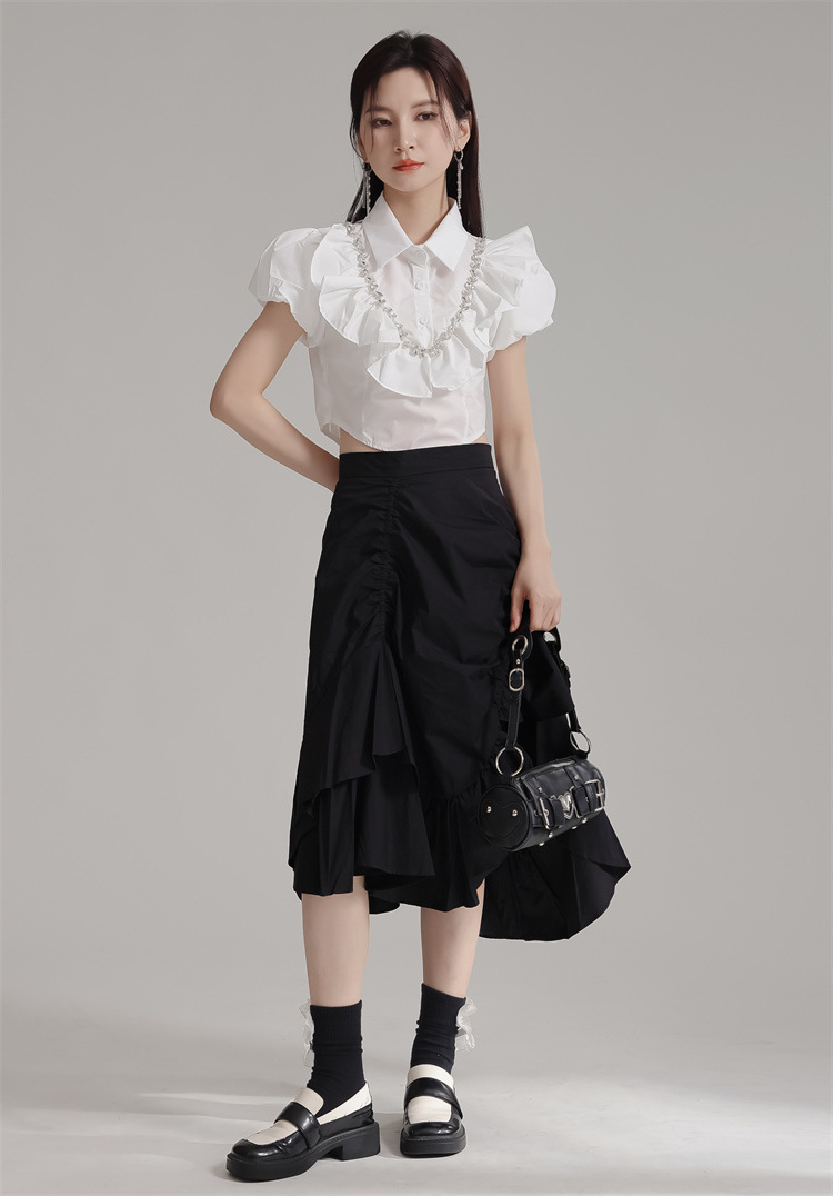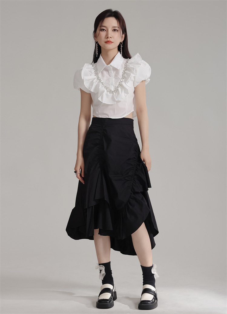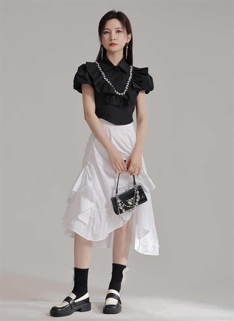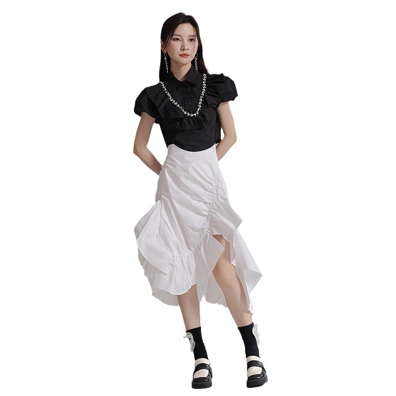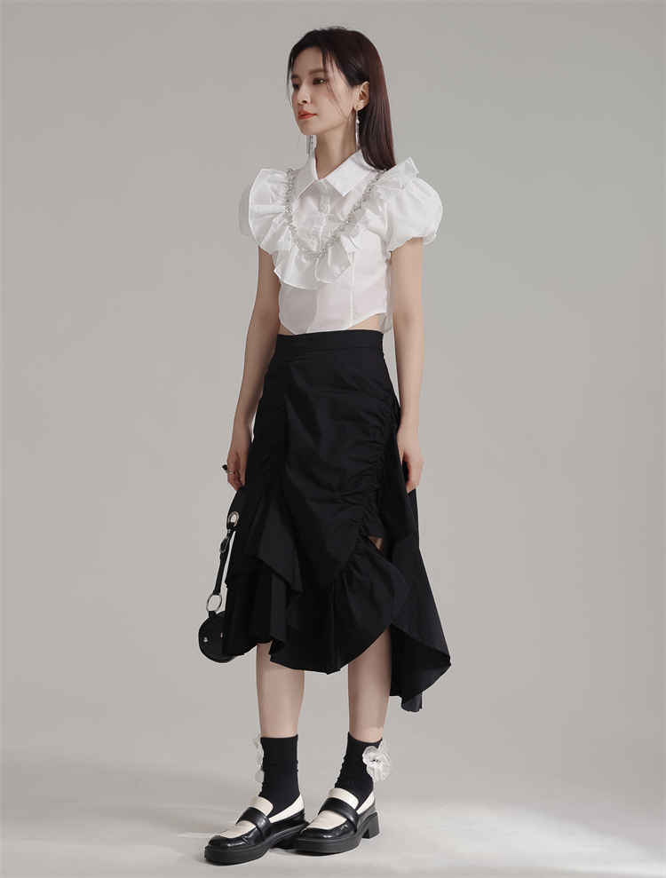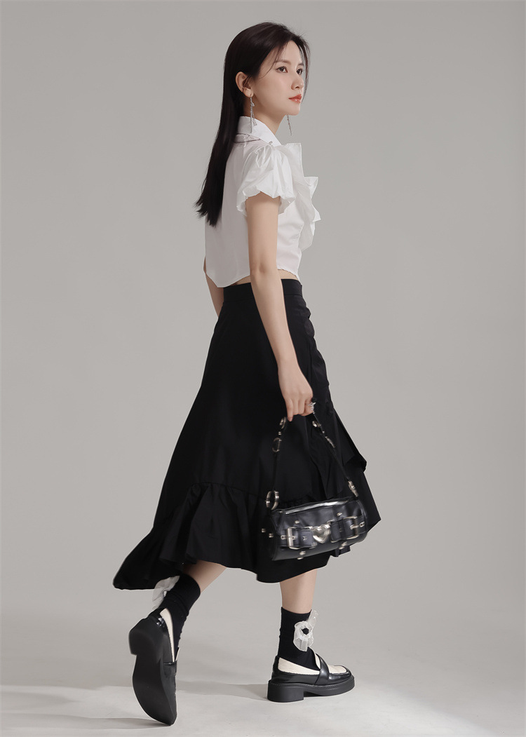 Chiếc váy này có phần eo ôm cao giúp tôn dáng. Thiết kế điểm nhấn ở phần viền xòe bồng bềnh như lá sen và những đường xếp ly tinh tế. Kiểu dáng đuôi cá phía dưới tạo nên nét cách điệu, trẻ trung và nữ tính. Chất vải mềm mại, thoải mái cho các hoạt động thường ngày. Có thể phối cùng áo phông hoặc áo sơ mi đơn giản để tạo nên những bộ trang phục đẹp. | Tên sản phẩm: Chân Váy Đầm Nữ Kiểu Đuôi Cá - Thời Trang Nữ | Mã sản phẩm: K6507 - Giá: 1.000.000đ | Mã nhà sản xuất: GUDOR-G03Hình ảnh sản phẩm