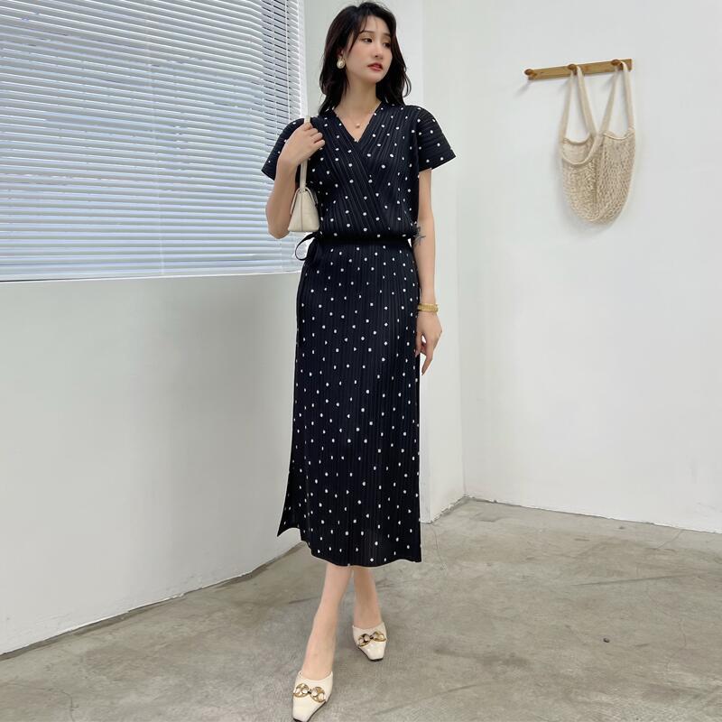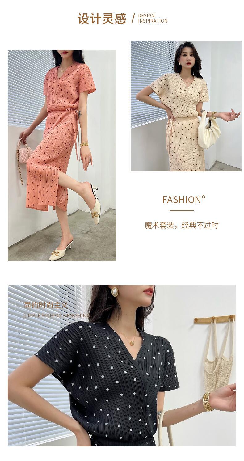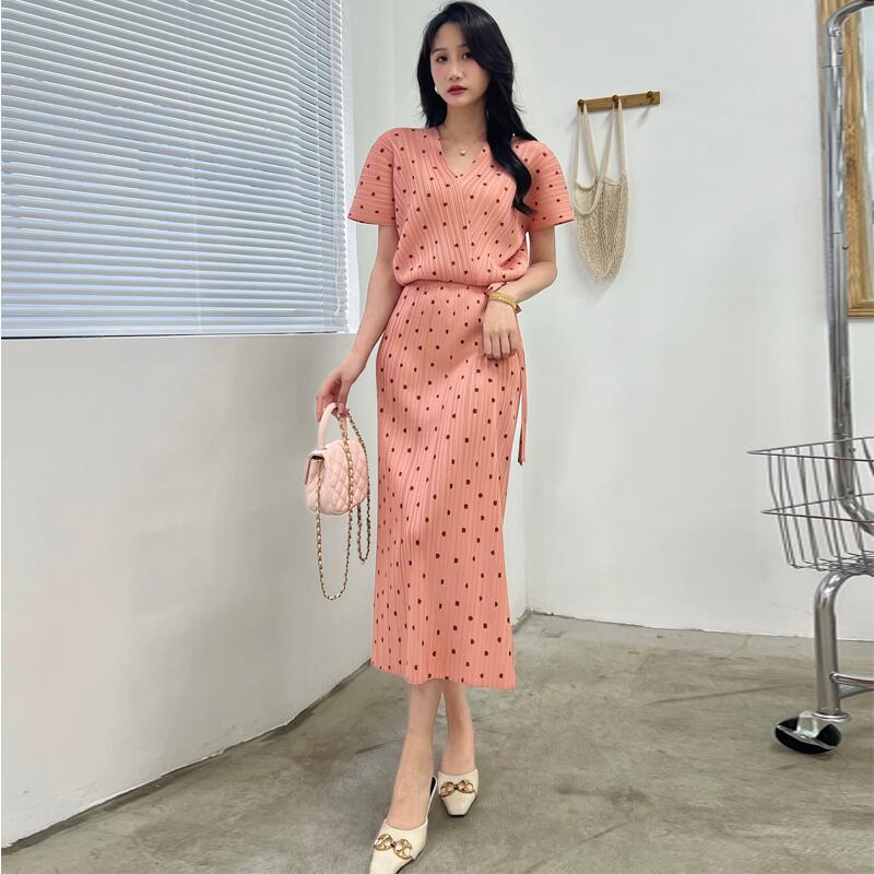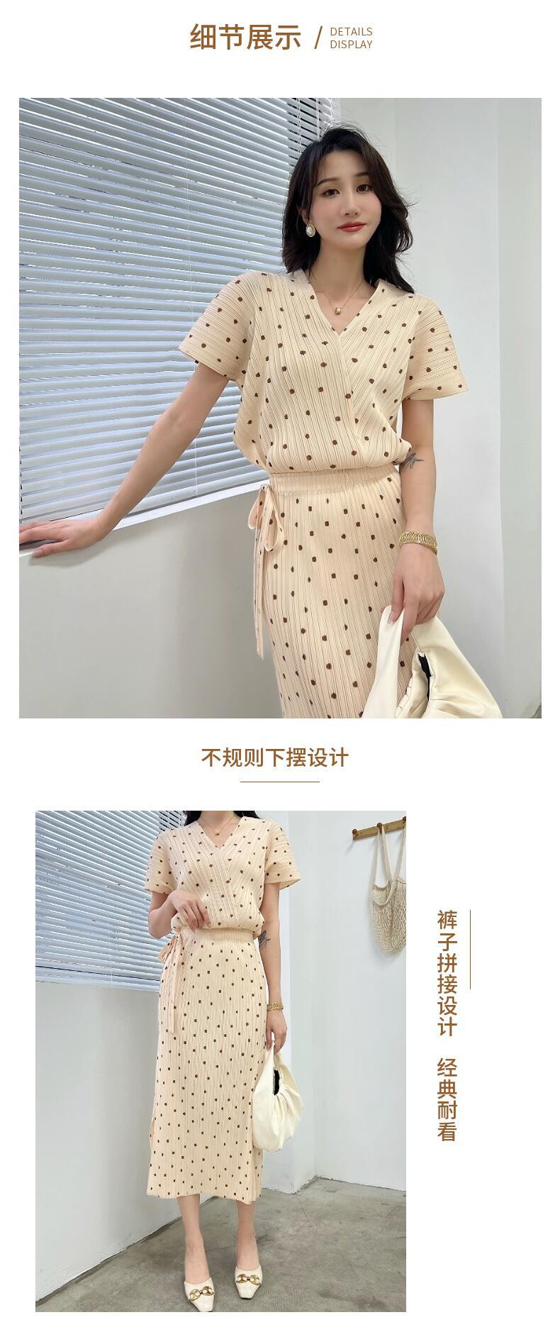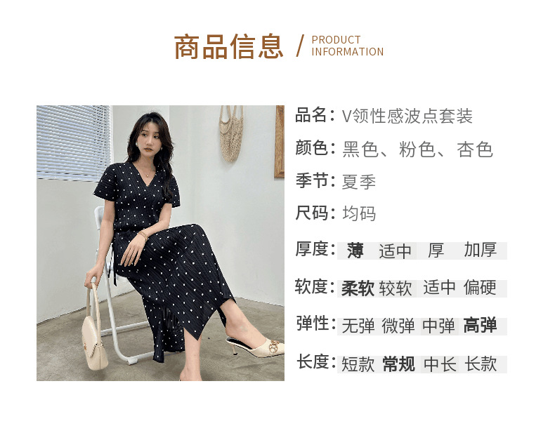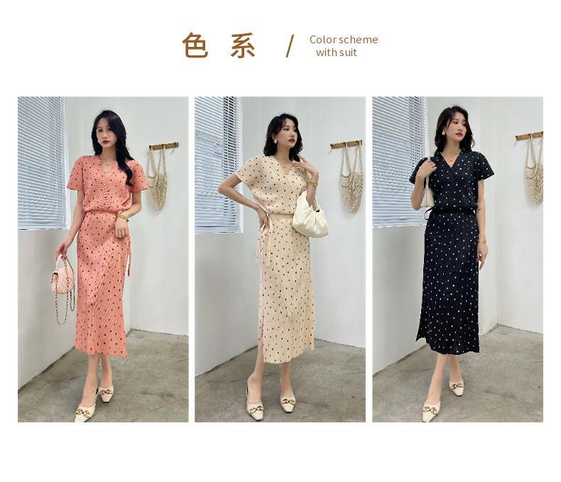 Bộ trang phục hai mảnh này có họa tiết chấm bi vui mắt, phù hợp cho mùa hè. Áo cổ chữ V tạo cảm giác thoải mái, kết hợp cùng chân váy dáng suông ôm nhẹ, phía dưới có xẻ nhẹ giúp dễ di chuyển. Chất vải có độ nhăn đặc trưng, ít nhăn nhàu và tạo hình khá tốt. Bạn có thể mặc bộ này đi làm, dạo phố hay gặp gỡ bạn bè. Chỉ cần giặt nhẹ và phơi khô tự nhiên để giữ dáng vải. | Tên sản phẩm: Đồ Bộ Nữ Cả Bộ 2 Món Cổ Chữ V Trông Trẻ Hơn Tuổi Hàng Mùa Hè - Thời Trang Nữ | Mã sản phẩm: T2020 - Giá: 1.530.000đ | Mã nhà sản xuất: DODGA-G04Hình ảnh sản phẩm
