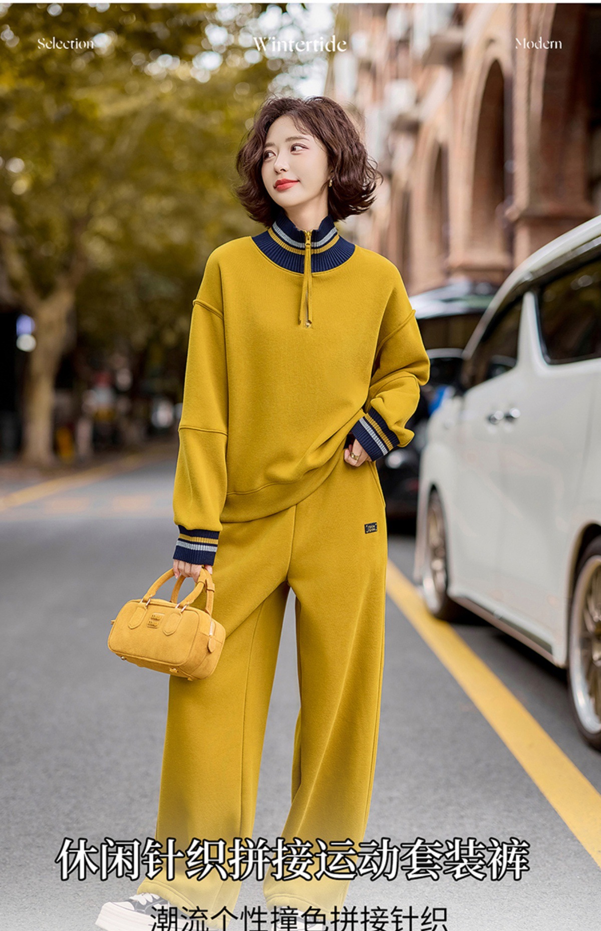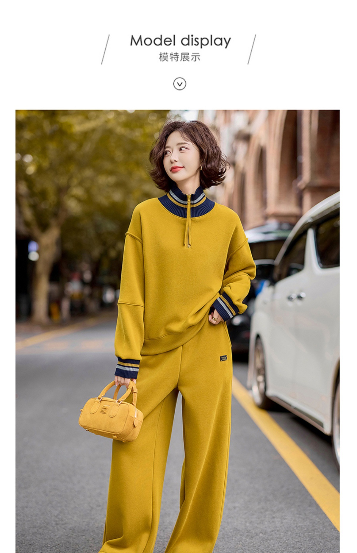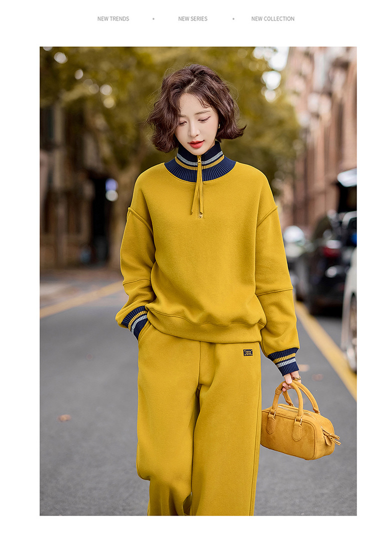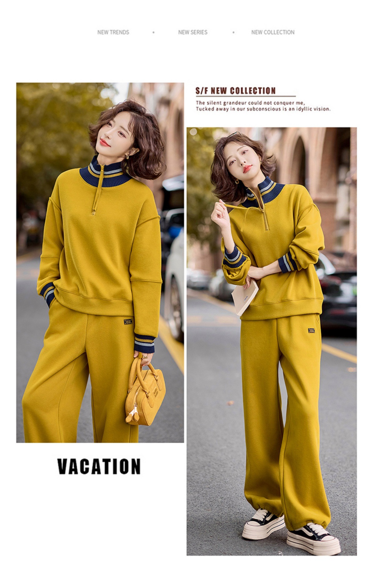 Bộ đồ thể thao nữ có áo nỉ và quần dài, mang sắc vàng nghệ ấm áp, phù hợp cho mùa thu đông. Chất liệu được lót lớp bông mềm mại giữ nhiệt tốt, cổ áo kiểu dựng ôm vừa vặn. Bạn có thể mặc nguyên bộ khi tập luyện nhẹ nhàng hoặc phối cùng trang phục khác để đi chơi. Sản phẩm dễ dàng giặt bằng máy và ít bị nhăn khi bảo quản. | Tên sản phẩm: Đồ Bộ Nữ Cả Bộ 2 Món Dày Ấm Trông Trẻ Hơn Tuổi Hàng Mùa Xuân Thu Đông - Thời Trang Nữ | Mã sản phẩm: L1919 - Giá: 2.210.000đ | Mã nhà sản xuất: HADA-G05Hình ảnh sản phẩm