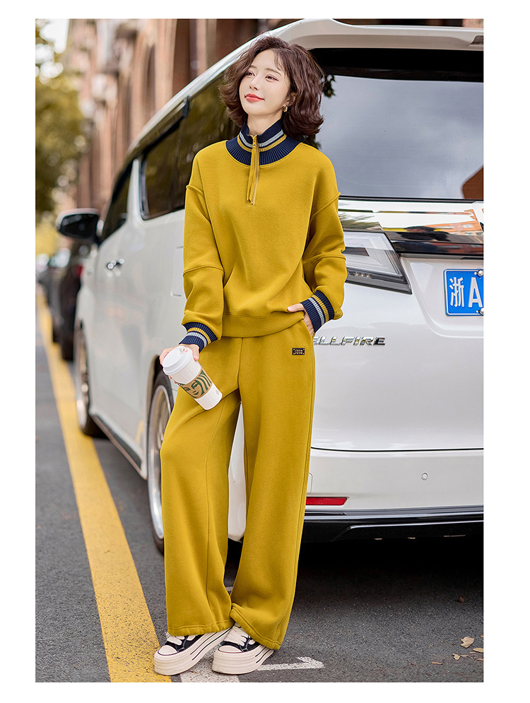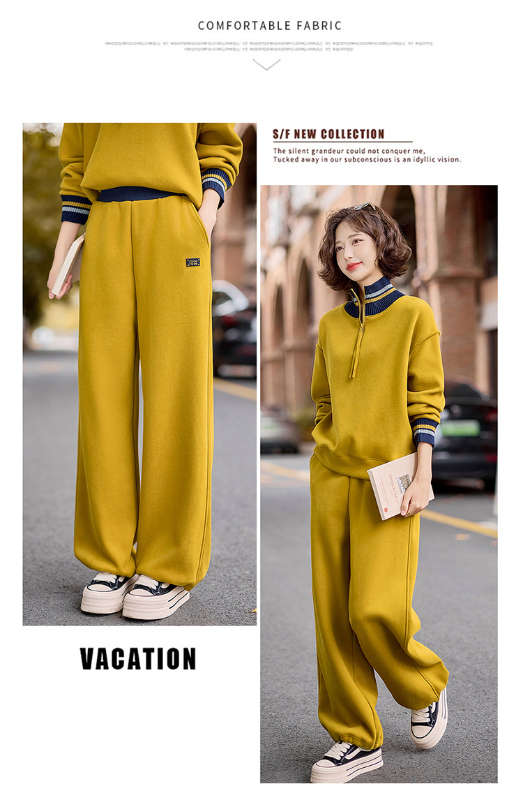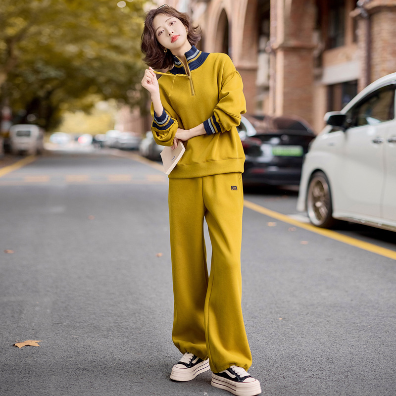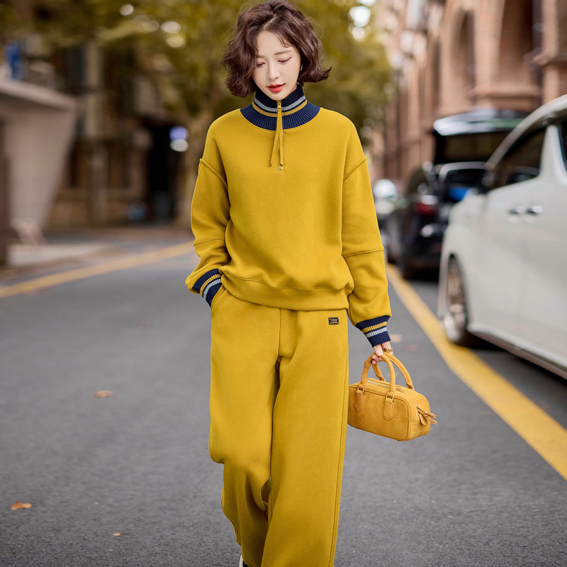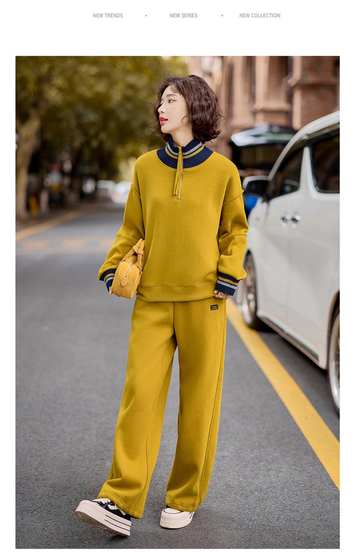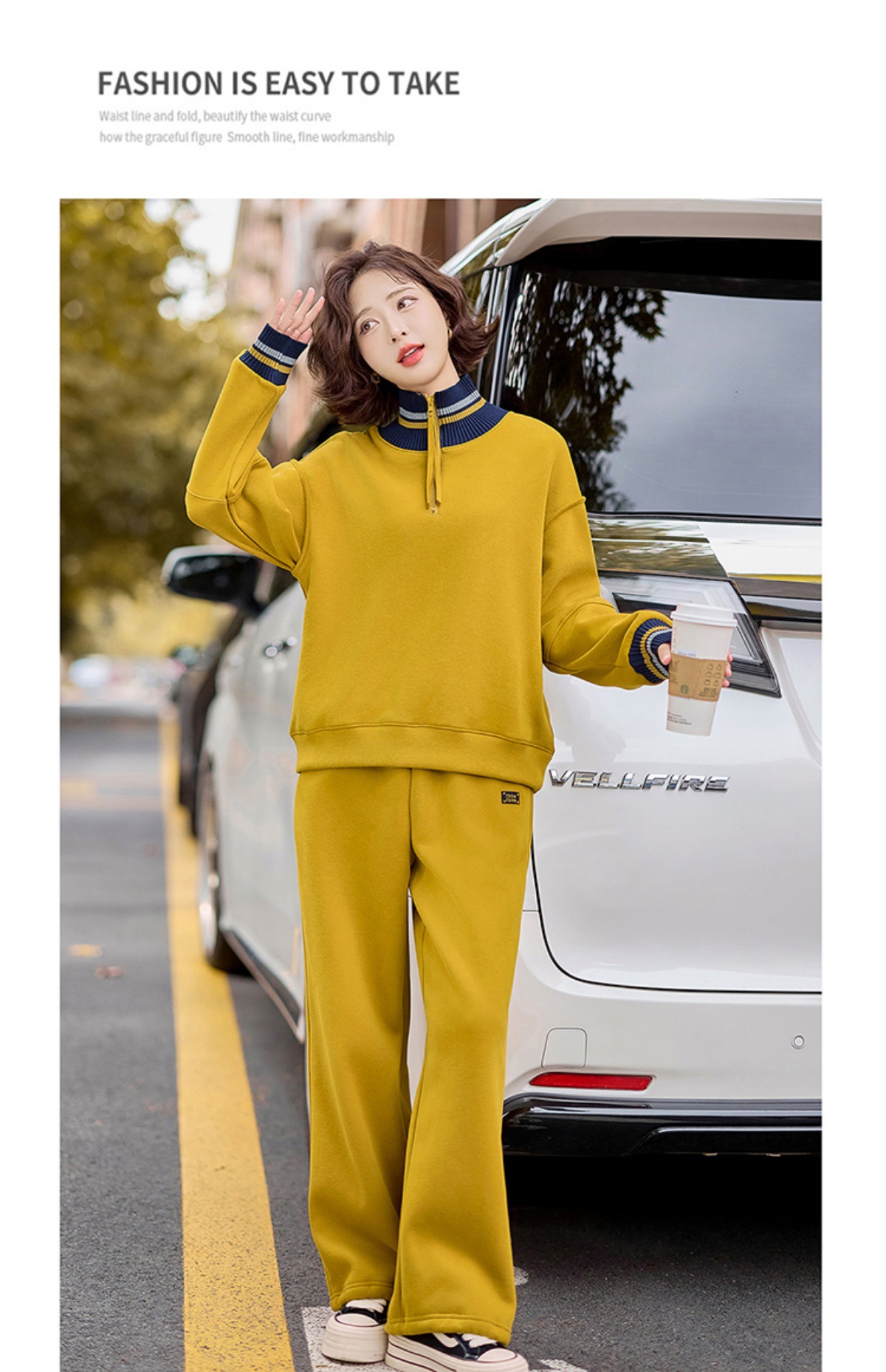 Bộ đồ thể thao nữ có áo nỉ và quần dài, mang sắc vàng nghệ ấm áp, phù hợp cho mùa thu đông. Chất liệu được lót lớp bông mềm mại giữ nhiệt tốt, cổ áo kiểu dựng ôm vừa vặn. Bạn có thể mặc nguyên bộ khi tập luyện nhẹ nhàng hoặc phối cùng trang phục khác để đi chơi. Sản phẩm dễ dàng giặt bằng máy và ít bị nhăn khi bảo quản. | Tên sản phẩm: Đồ Bộ Nữ Cả Bộ 2 Món Dày Ấm Trông Trẻ Hơn Tuổi Hàng Mùa Xuân Thu Đông - Thời Trang Nữ | Mã sản phẩm: L1919 - Giá: 2.210.000đ | Mã nhà sản xuất: HADA-G05Hình ảnh sản phẩm