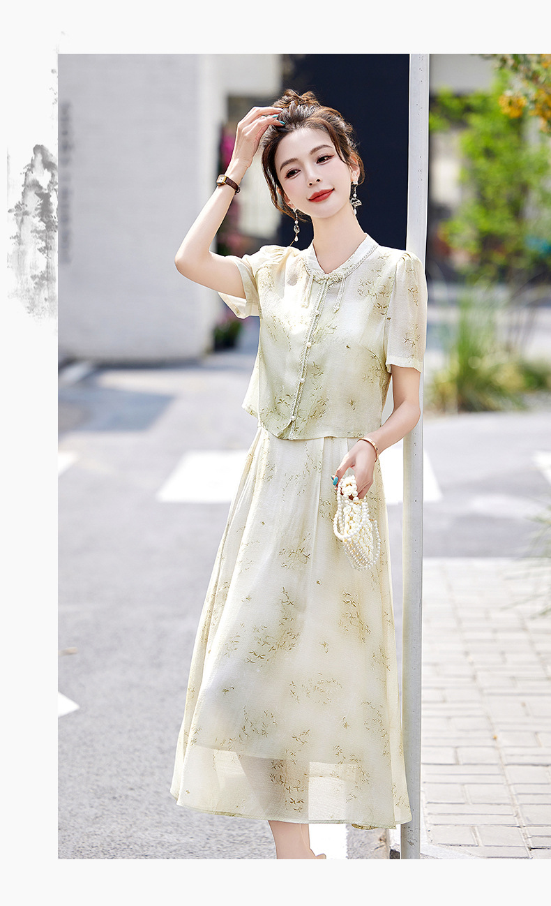 Bộ trang phục hai mảnh dành cho mùa hè, mang phong cách hiện đại pha trộn nét đẹp truyền thống. Thiết kế tôn dáng, giúp tạo đường nét cơ thể thanh thoát. Kiểu dáng váy liền bên trong kết hợp áo khoác bên ngoài một cách tinh tế, tạo nên vẻ ngoại hình ấn tượng. Có thể mặc nguyên bộ hoặc phối cùng các trang phục khác nhau. Chất vải mềm mại, thoáng mát, phù hợp cho nhiều hoàn cảnh sử dụng trong ngày hè. | Tên sản phẩm: Đồ Bộ Nữ Cả Bộ 2 Món Hàng Mùa Hè - Thời Trang Nữ | Mã sản phẩm: B2575 - Giá: 1.780.000đ | Mã nhà sản xuất: WODIG-G05Hình ảnh sản phẩm