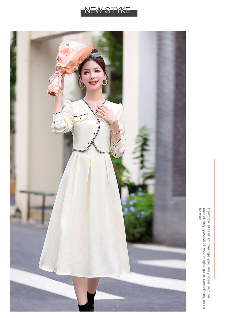 Bộ trang phục hai mảnh dành cho mùa thu, gồm áo khoác ngắn và đầm, phù hợp cho những bạn gái có dáng người nhỏ. Thiết kế mang phong cách thanh lịch, tôn vinh vẻ đẹp dịu dàng. Chất vải mềm mại, giữ ấm nhẹ nhàng cho những ngày se lạnh. Có thể mặc nguyên bộ để tạo sự chỉn chu, hoặc phối cùng quần jeans, chân váy để đa dạng phong cách. Đây là lựa chọn tiện lợi và thời trang cho các dịp đi làm, gặp gỡ bạn bè. | Tên sản phẩm: Đồ Bộ Nữ Cả Bộ 2 Món Hàng Mùa Xuân Thu Đông - Thời Trang Nữ | Mã sản phẩm: K4641 - Giá: 1.540.000đ | Mã nhà sản xuất: HADA-G04Hình ảnh sản phẩm