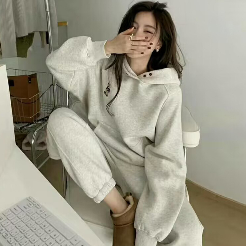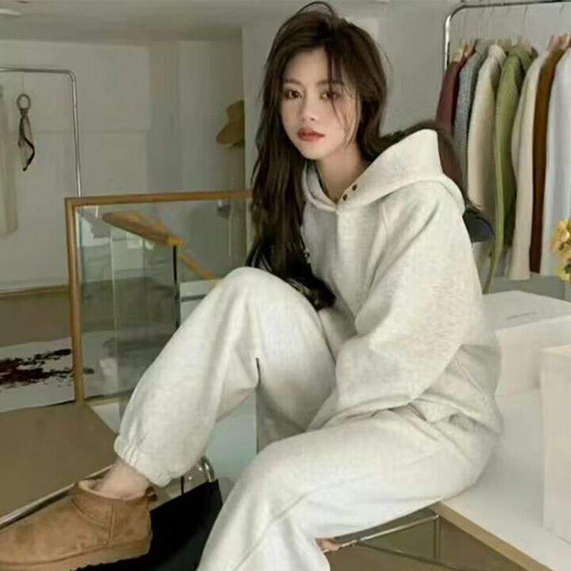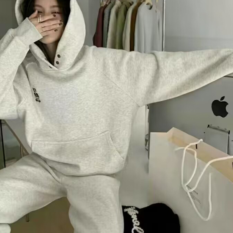 Bộ trang phục thể thao hai mảnh này thích hợp cho những ngày thu đông. Áo nỉ có mũ trùm và quần dài đều được lót lớp lông mềm mại giữ ấm tốt. Thiết kế liền mũ tiện lợi, kiểu dáng năng động phù hợp cho việc chạy bộ hay vận động nhẹ. Màu xám dễ phối đồ, form dáng ôm vừa vặn. Bạn có thể mặc nguyên bộ hoặc tách rời để phối với các trang phục khác, tạo nên phong cách thoải mái mỗi ngày. | Tên sản phẩm: Đồ Bộ Nữ Cả Bộ 2 Món Hàng Mùa Xuân Thu Đông - Thời Trang Nữ | Mã sản phẩm: B9750 - Giá: 1.350.000đ | Mã nhà sản xuất: AIANOR-G04Hình ảnh sản phẩm