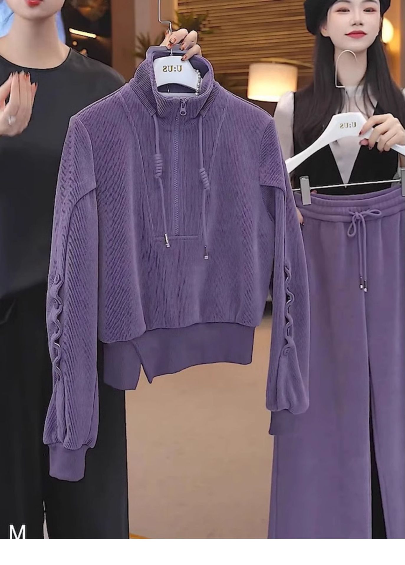 Bộ trang phục hai mảnh này gồm áo nỉ có lớp lót mềm mại bên trong và quần ống rộng thoải mái. Thiết kế mang phong cách đơn giản, dễ dàng phối đồ và di chuyển. Tông màu tím chủ đạo tạo điểm nhấn nổi bật và dễ thương. Sản phẩm phù hợp cho các hoạt động hằng ngày, đi chơi hay gặp gỡ bạn bè. Bạn có thể mặc nguyên bộ hoặc tách rời để phối với các trang phục khác, rất tiện lợi. | Tên sản phẩm: Đồ Bộ Nữ Cả Bộ 2 Món Hàng Mùa Xuân Thu Đông - Thời Trang Nữ | Mã sản phẩm: C0171 - Giá: 1.420.000đ | Mã nhà sản xuất: AIANOR-G04Hình ảnh sản phẩm