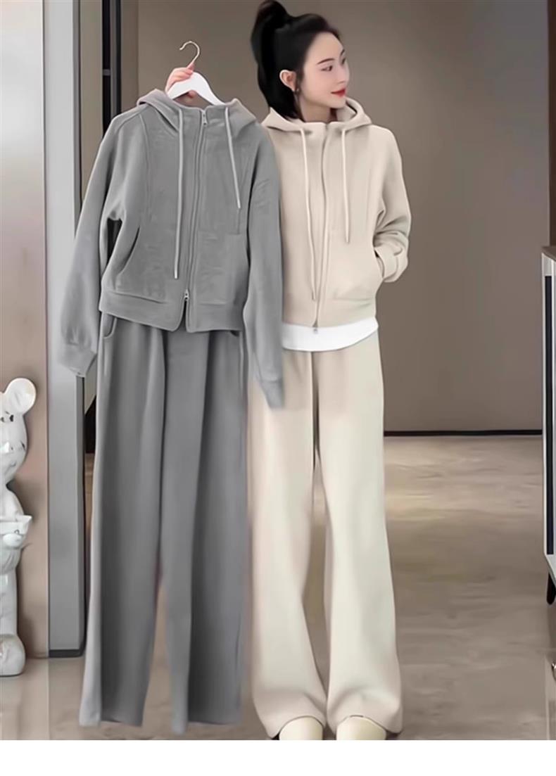 Bộ trang phục thể thao dành cho nữ, thiết kế rộng rãi thoải mái, gồm áo nỉ có mũ và quần ống rộng. Chất vải mềm mại, co giãn nhẹ, mang lại cảm giác dễ chịu cho mọi cử động. Kiểu dáng trẻ trung, năng động, phù hợp cho các hoạt động thường ngày, lúc tập luyện hay đi chơi. Bạn có thể mặc nguyên bộ hoặc phối cùng các trang phục khác để có nhiều phong cách đa dạng. | Tên sản phẩm: Đồ Bộ Nữ Cả Bộ 2 Món Hàng Mùa Xuân Thu Đông - Thời Trang Nữ | Mã sản phẩm: C0503 - Giá: 1.420.000đ | Mã nhà sản xuất: AIANOR-G04Hình ảnh sản phẩm