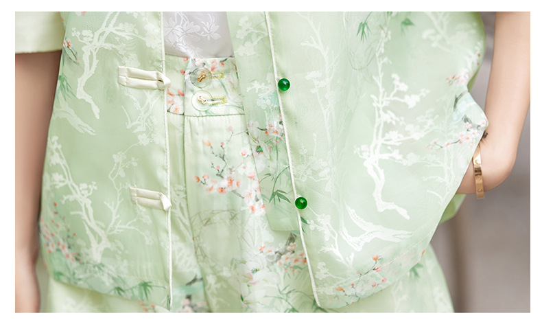 Bộ trang phục hai mảnh này mang phong cách hiện đại nhưng vẫn giữ được nét duyên dáng truyền thống. Thiết kế gồm áo và quần shorts phù hợp cho mùa hè, tạo vẻ ngoài năng động, trẻ trung. Kiểu dáng giúp tôn dáng cho những người có chiều cao khiêm tốn. Chất vải mát mẻ, thoáng khí, mang lại sự dễ chịu khi mặc. Bạn có thể phối cùng giày thể thao hoặc sandals để đi chơi, dạo phố. Rất dễ dàng để phối đồ và di chuyển thoải mái cả ngày. | Tên sản phẩm: Đồ Bộ Nữ Cả Bộ 2 Món Trông Trẻ Hơn Tuổi Hàng Mùa Hè - Thời Trang Nữ | Mã sản phẩm: B2342 - Giá: 2.070.000đ | Mã nhà sản xuất: WODIG-G05Hình ảnh sản phẩm