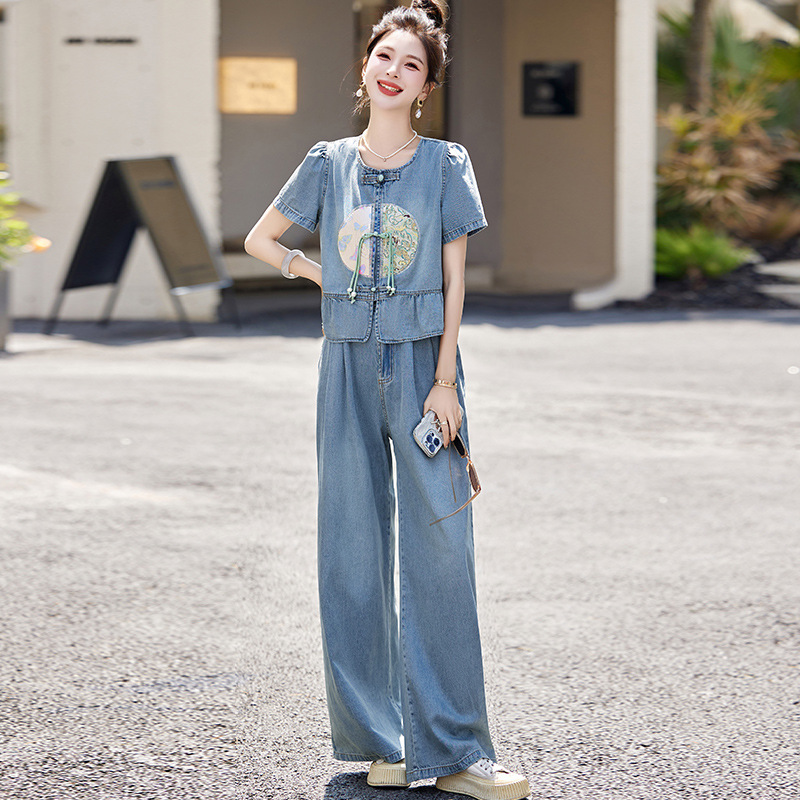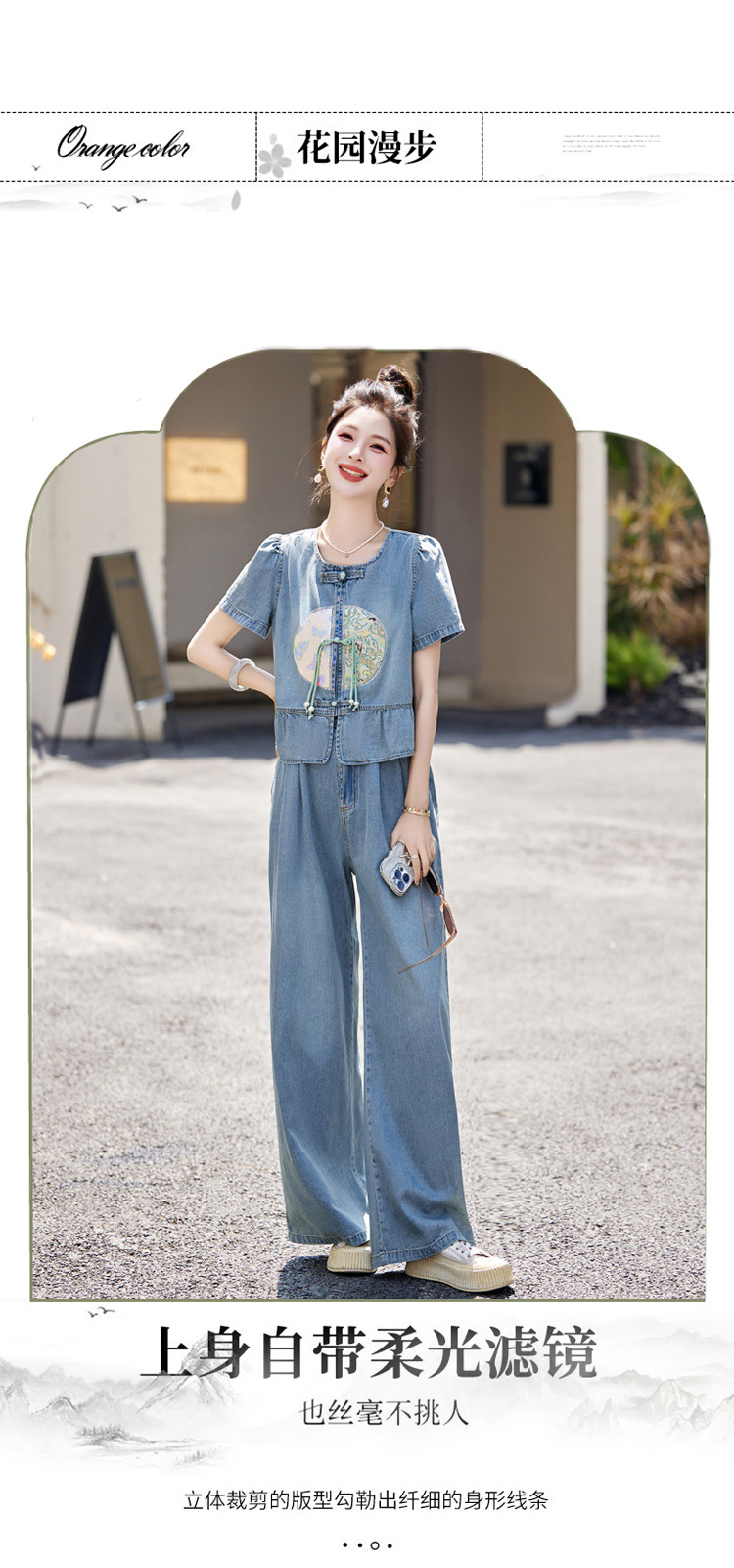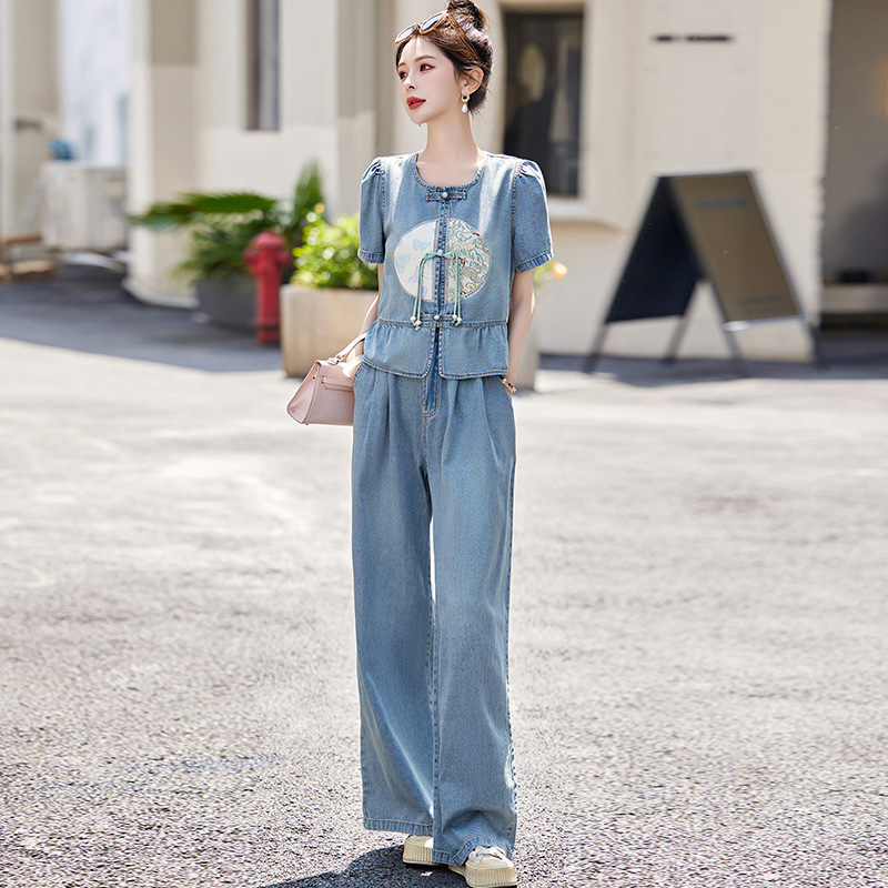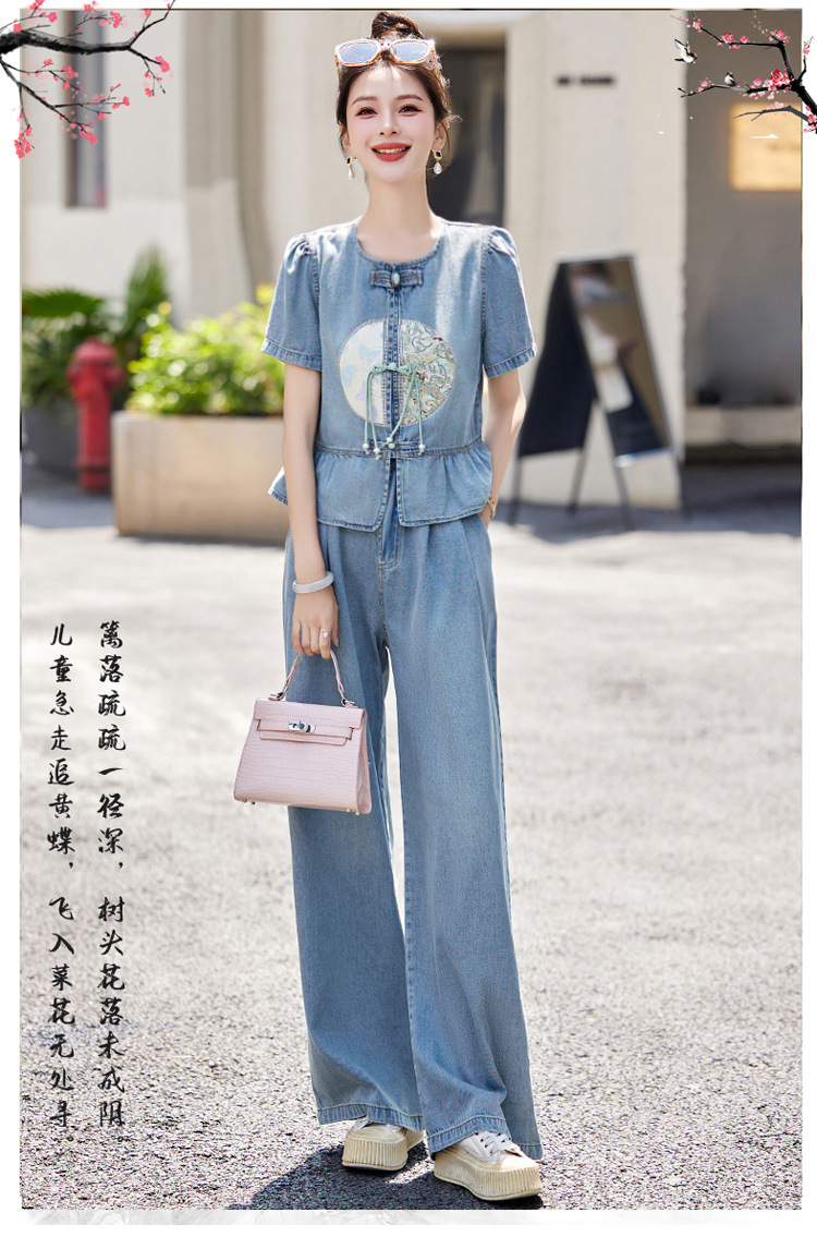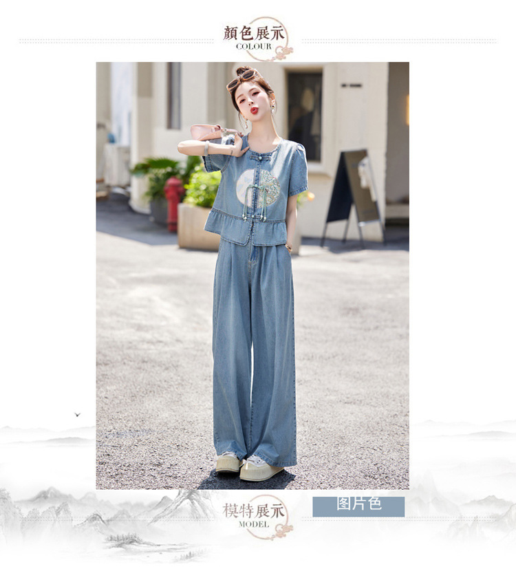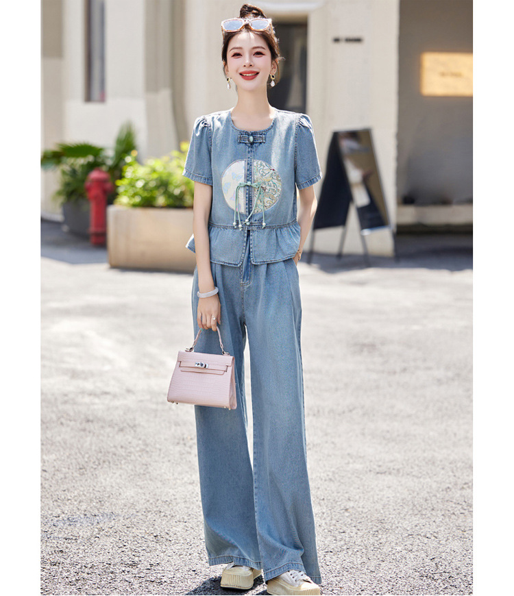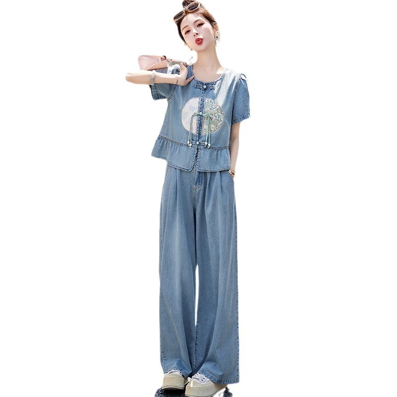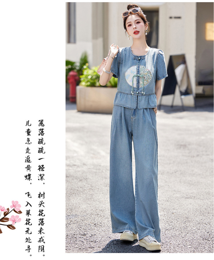 Bộ trang phục thời trang này gồm áo và quần ống rộng, được làm từ chất liệu vải bò mềm mại. Điểm nhấn đặc biệt là những đường thêu tinh xảo, mang nét đẹp truyền thống nhưng vẫn rất trẻ trung, hiện đại. Mẫu thiết kế này phù hợp cho những ngày hè, dễ dàng phối đồ và tạo sự thoải mái khi mặc. Bạn có thể mặc nguyên bộ để tạo phong cách chỉnh chu hoặc tách riêng từng món để kết hợp với các trang phục khác. | Tên sản phẩm: Đồ Bộ Nữ Chất Liệu Jean Bò Cả Bộ 2 Món Thêu Họa Tiết Hoa Hàng Mùa Hè - Thời Trang Nữ | Mã sản phẩm: B2260 - Giá: 2.020.000đ | Mã nhà sản xuất: WODIG-G05Hình ảnh sản phẩm