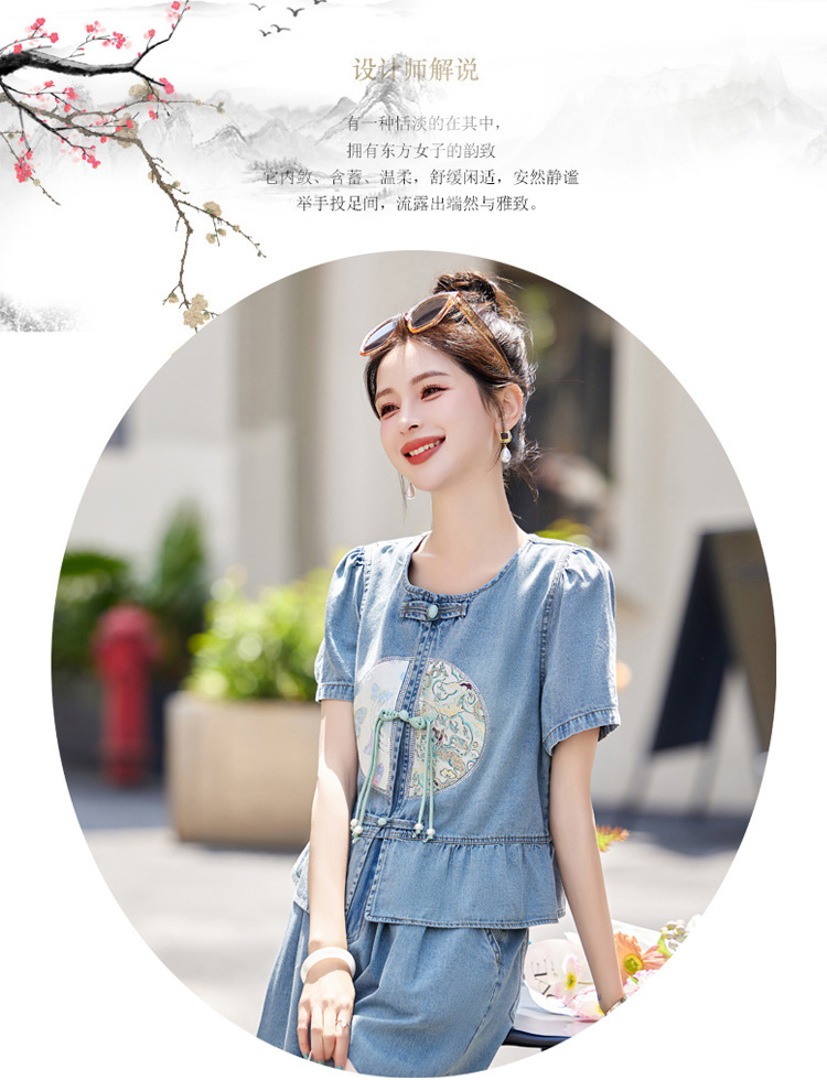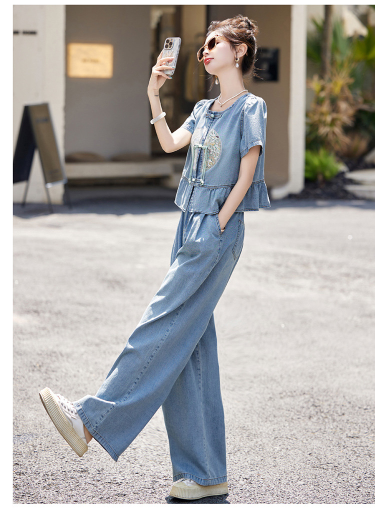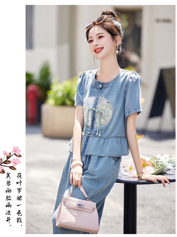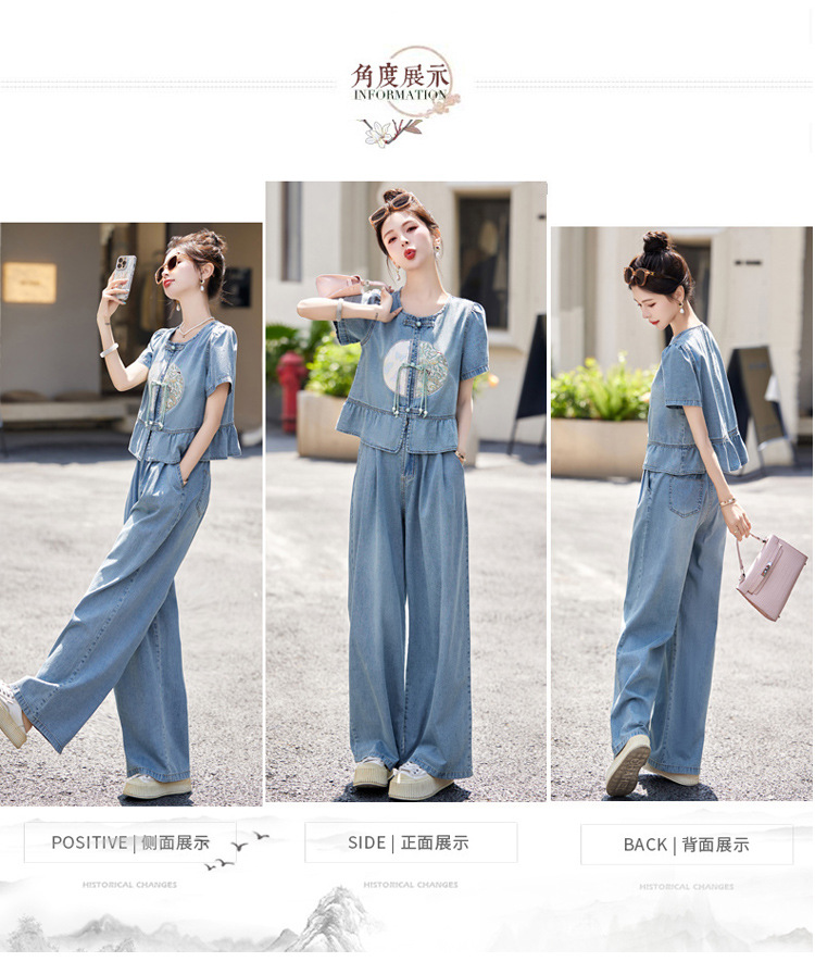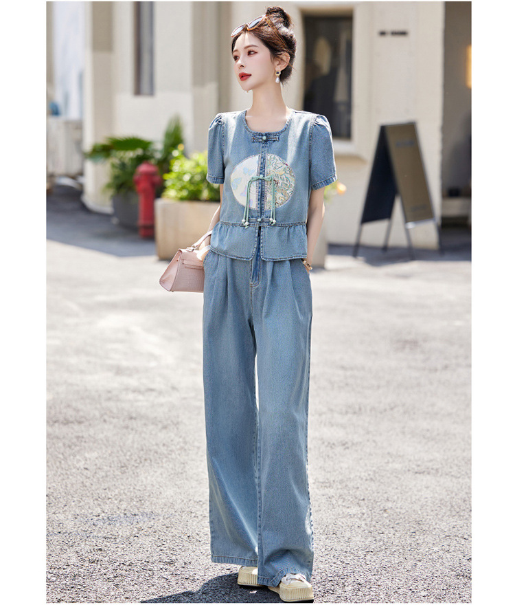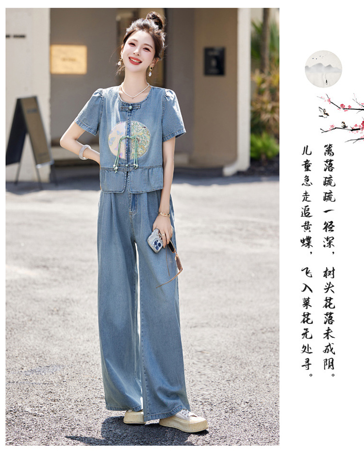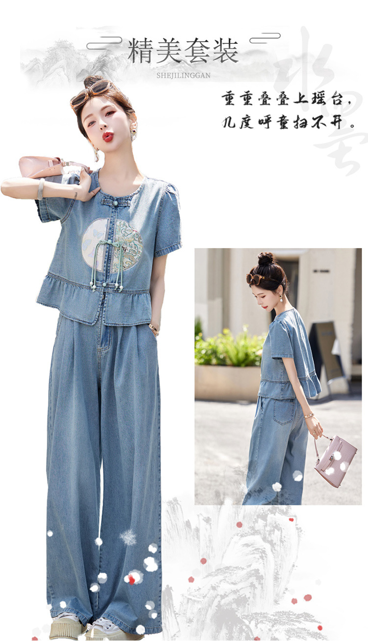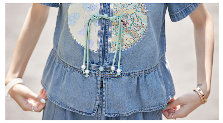 Bộ trang phục thời trang này gồm áo và quần ống rộng, được làm từ chất liệu vải bò mềm mại. Điểm nhấn đặc biệt là những đường thêu tinh xảo, mang nét đẹp truyền thống nhưng vẫn rất trẻ trung, hiện đại. Mẫu thiết kế này phù hợp cho những ngày hè, dễ dàng phối đồ và tạo sự thoải mái khi mặc. Bạn có thể mặc nguyên bộ để tạo phong cách chỉnh chu hoặc tách riêng từng món để kết hợp với các trang phục khác. | Tên sản phẩm: Đồ Bộ Nữ Chất Liệu Jean Bò Cả Bộ 2 Món Thêu Họa Tiết Hoa Hàng Mùa Hè - Thời Trang Nữ | Mã sản phẩm: B2260 - Giá: 2.020.000đ | Mã nhà sản xuất: WODIG-G05Hình ảnh sản phẩm