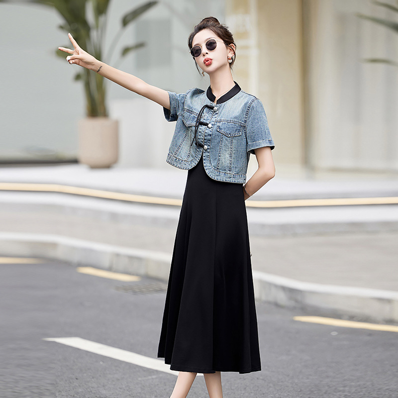 Bộ trang phục này gồm áo tay ngắn và đầm, mang phong cách dễ mặc cho mùa hè. Chất liệu chính là vải denim mềm mại, kết hợp họa tiết thêu tinh tế lấy cảm hứng từ nét đẹp truyền thống. Bạn có thể mặc riêng từng món hoặc kết hợp cùng nhau tạo nên vẻ ngoài hài hòa. Sản phẩm phù hợp cho nhiều dịp sinh hoạt, từ dạo phố đến gặp gỡ bạn bè. Chỉ cần giặt nhẹ và phơi khô tự nhiên để giữ form áo bền đẹp. | Tên sản phẩm: Đồ Bộ Nữ Chất Liệu Jean Bò Ngắn Tay Cả Bộ 2 Món Hàng Mùa Hè - Thời Trang Nữ | Mã sản phẩm: B2825 - Giá: 1.780.000đ | Mã nhà sản xuất: WODIG-G05Hình ảnh sản phẩm