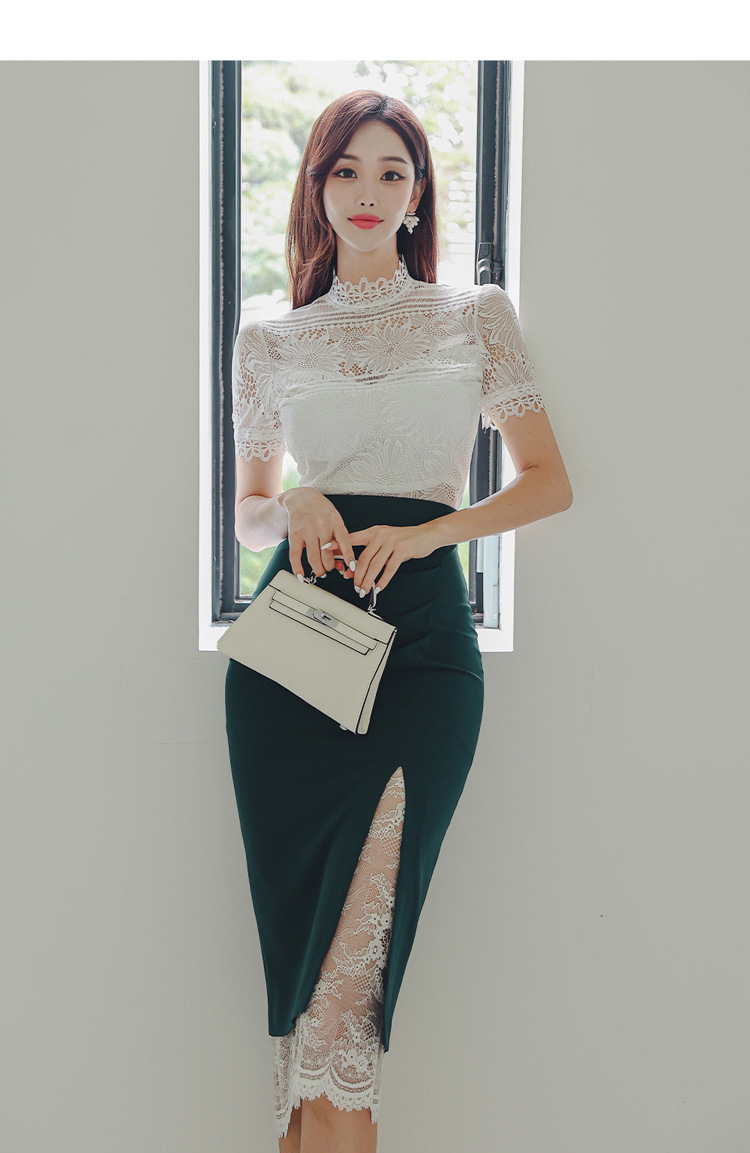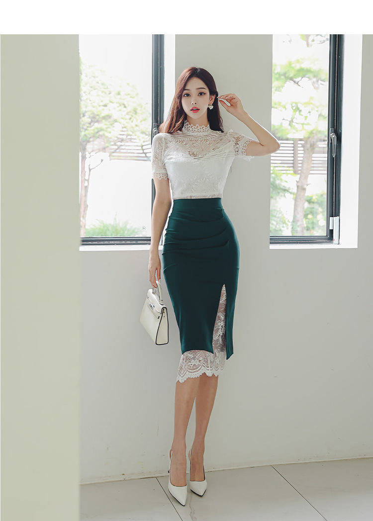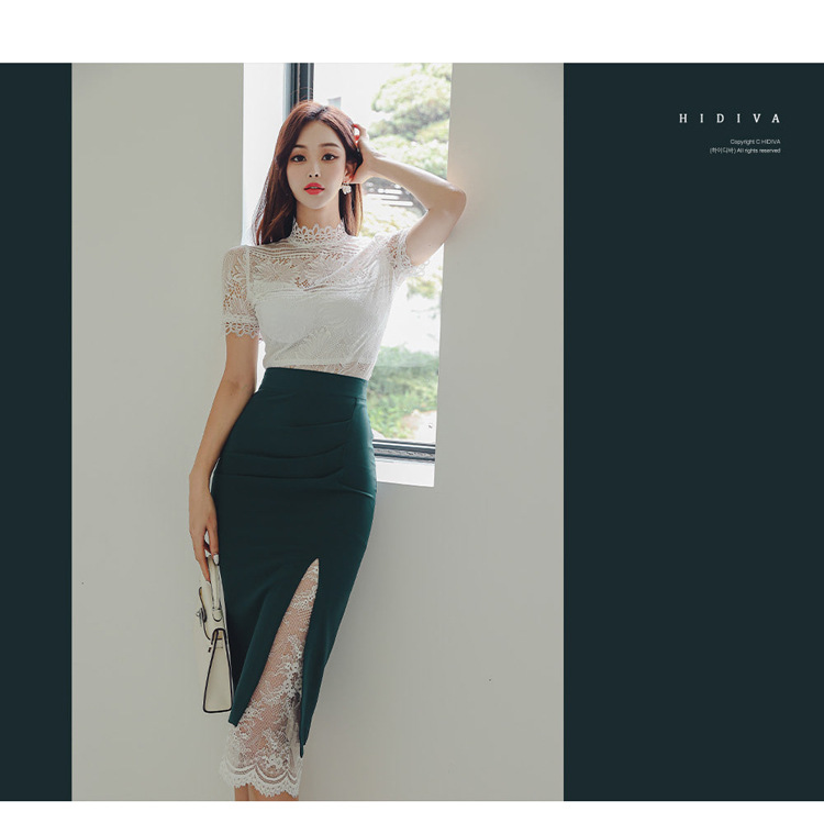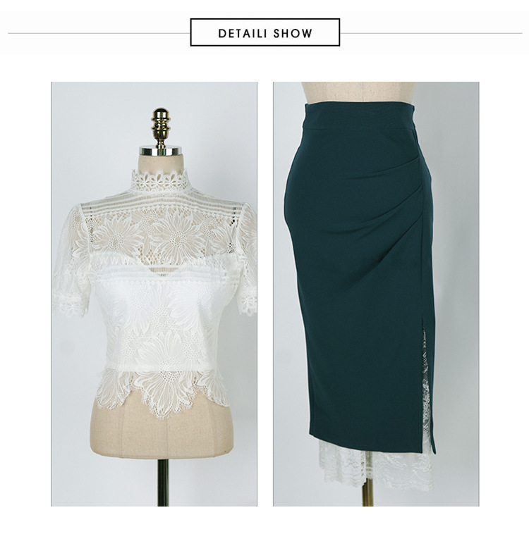 Bộ trang phục hai mảnh này có áo cổ yếm cách điệu kết hợp họa tiết ren tinh tế, tôn lên vẻ dịu dàng. Chân váy ôm body dáng chữ A ở phần gấu, giúp tạo dáng thanh thoát. Chất vải mềm mại, thoáng mát, phù hợp cho những ngày hè. Dễ dàng phối đồ đi làm hoặc dự tiệc. Sản phẩm mặc cùng giày cao gót và túi xách nhỏ để hoàn thiện phong cách. | Tên sản phẩm: Đồ Bộ Nữ Chất Liệu Ren Dáng Ôm Cả Bộ 2 Món Hàng Mùa Hè - Thời Trang Nữ | Mã sản phẩm: A9861 - Giá: 980.000đ | Mã nhà sản xuất: ZHOUT-G03Hình ảnh sản phẩm
