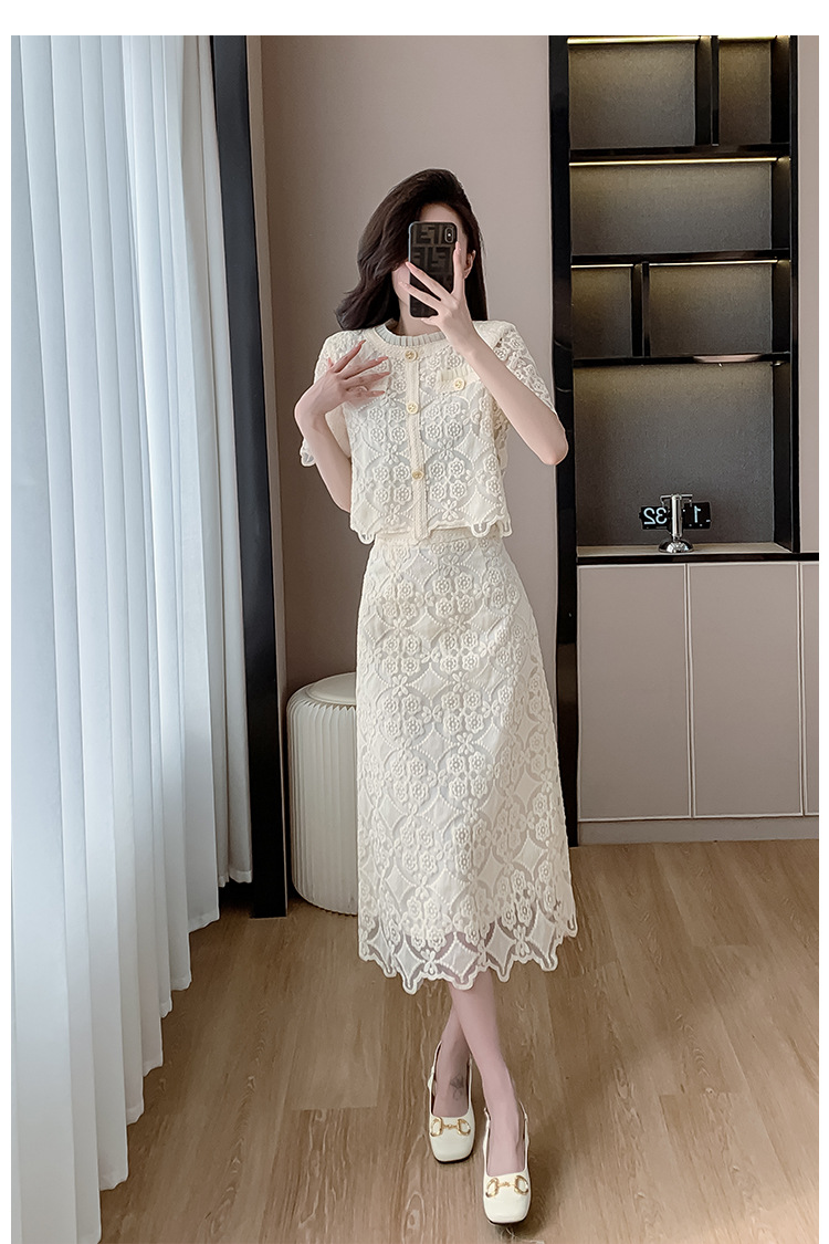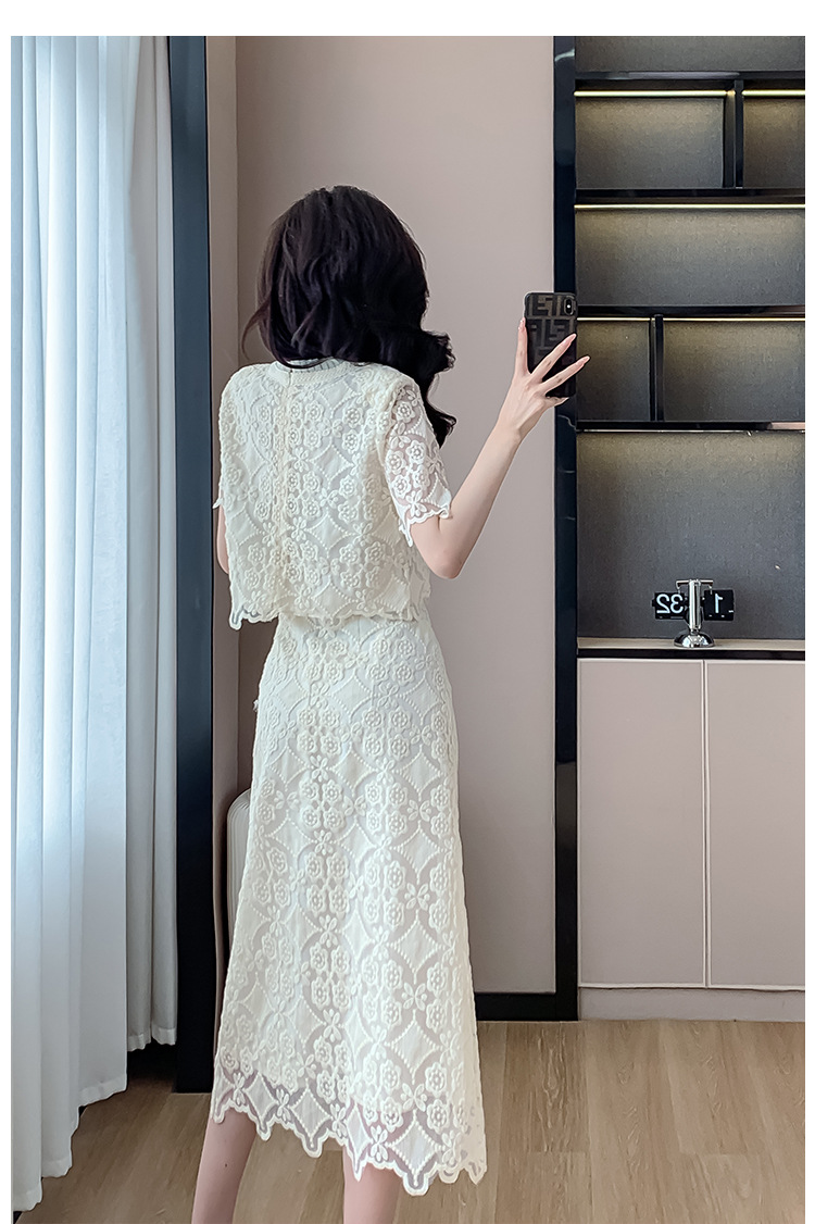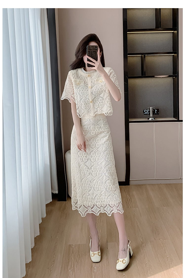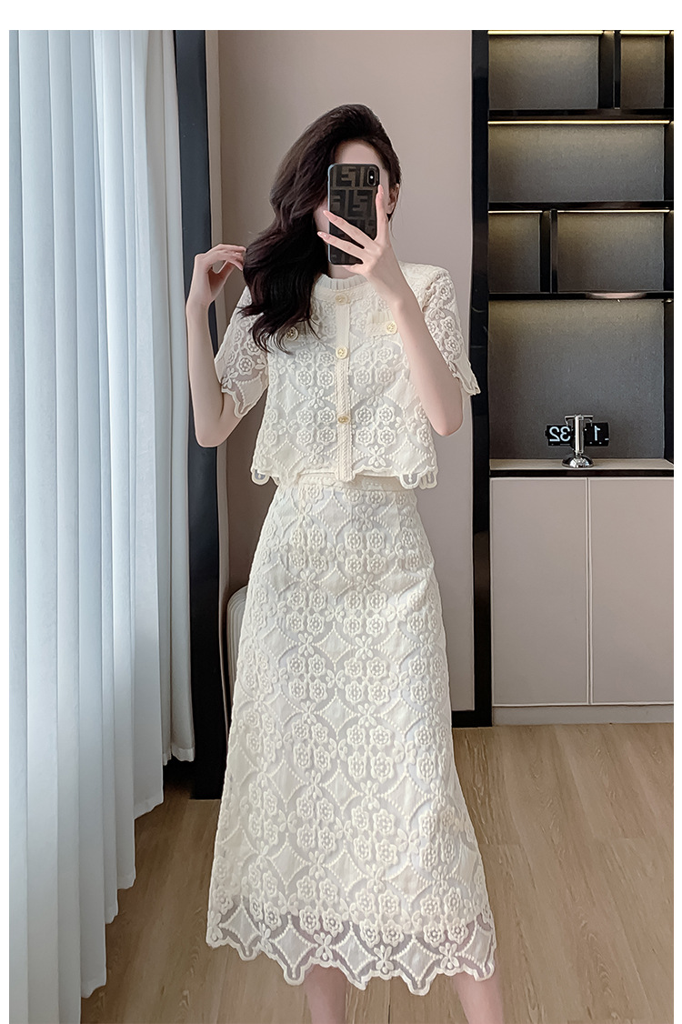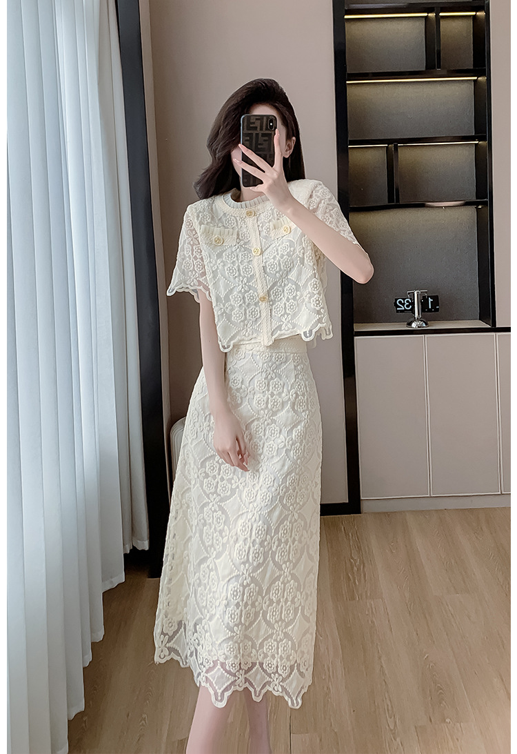 Bộ trang phục hai mảnh này mang phong cách thời trang với họa tiết ren tinh tế. Áo tay ngắn thiết kế cổ điển, kết hợp cùng chân váy dáng cao eo, tôn lên vẻ duyên dáng cho người mặc. Chất vải mềm mại, thoáng mát, thích hợp cho những ngày hè. Bạn có thể mặc nguyên bộ để tạo sự chỉn chu, hoặc phối cùng các trang phục khác để đa dạng phong cách. Sản phẩm dễ dàng giặt bằng tay hoặc máy ở chế độ nhẹ. | Tên sản phẩm: Đồ Bộ Nữ Chất Liệu Ren Ngắn Tay Cả Bộ 2 Món Hàng Mùa Hè - Thời Trang Nữ | Mã sản phẩm: B0239 - Giá: 970.000đ | Mã nhà sản xuất: ZHOUT-G03Hình ảnh sản phẩm