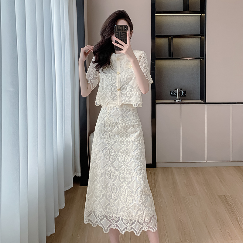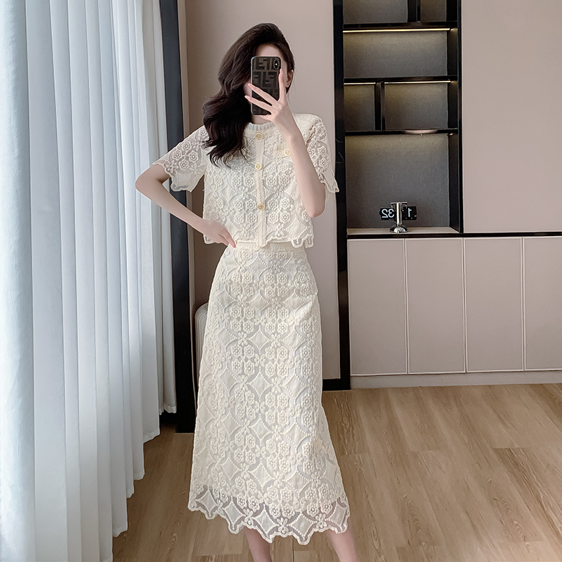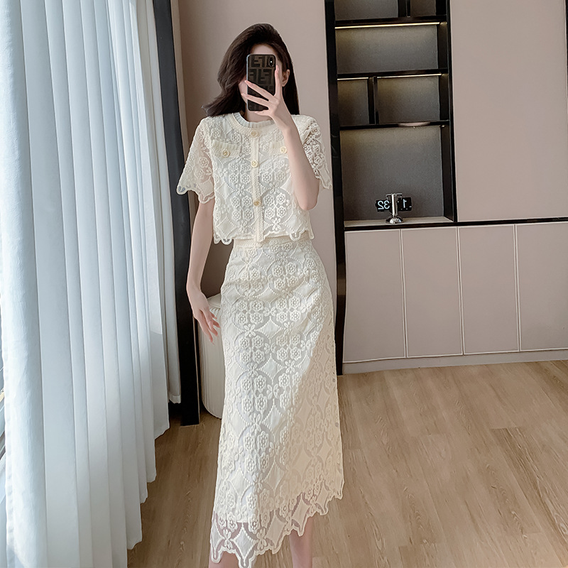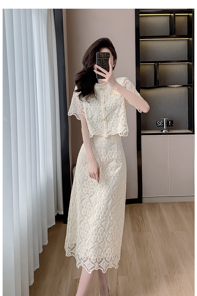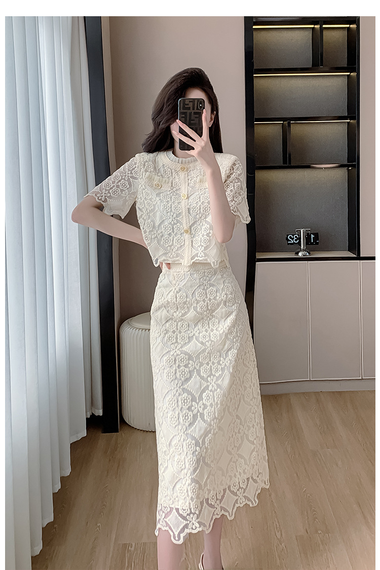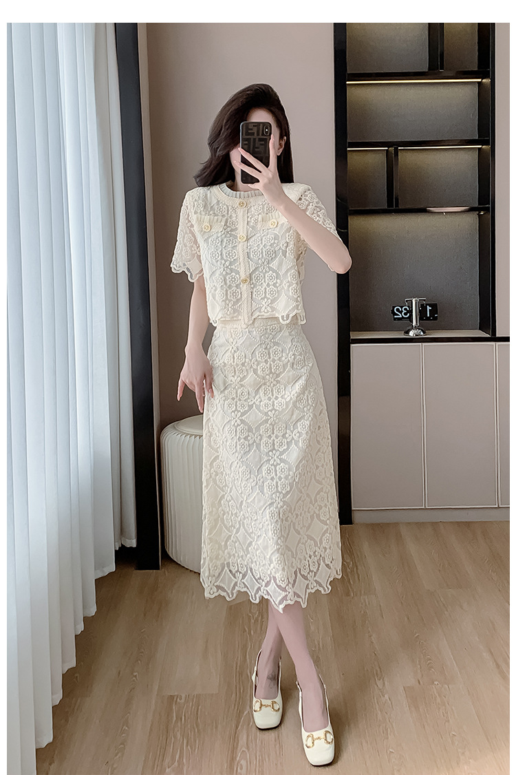 Bộ trang phục hai mảnh này mang phong cách thời trang với họa tiết ren tinh tế. Áo tay ngắn thiết kế cổ điển, kết hợp cùng chân váy dáng cao eo, tôn lên vẻ duyên dáng cho người mặc. Chất vải mềm mại, thoáng mát, thích hợp cho những ngày hè. Bạn có thể mặc nguyên bộ để tạo sự chỉn chu, hoặc phối cùng các trang phục khác để đa dạng phong cách. Sản phẩm dễ dàng giặt bằng tay hoặc máy ở chế độ nhẹ. | Tên sản phẩm: Đồ Bộ Nữ Chất Liệu Ren Ngắn Tay Cả Bộ 2 Món Hàng Mùa Hè - Thời Trang Nữ | Mã sản phẩm: B0239 - Giá: 970.000đ | Mã nhà sản xuất: ZHOUT-G03Hình ảnh sản phẩm