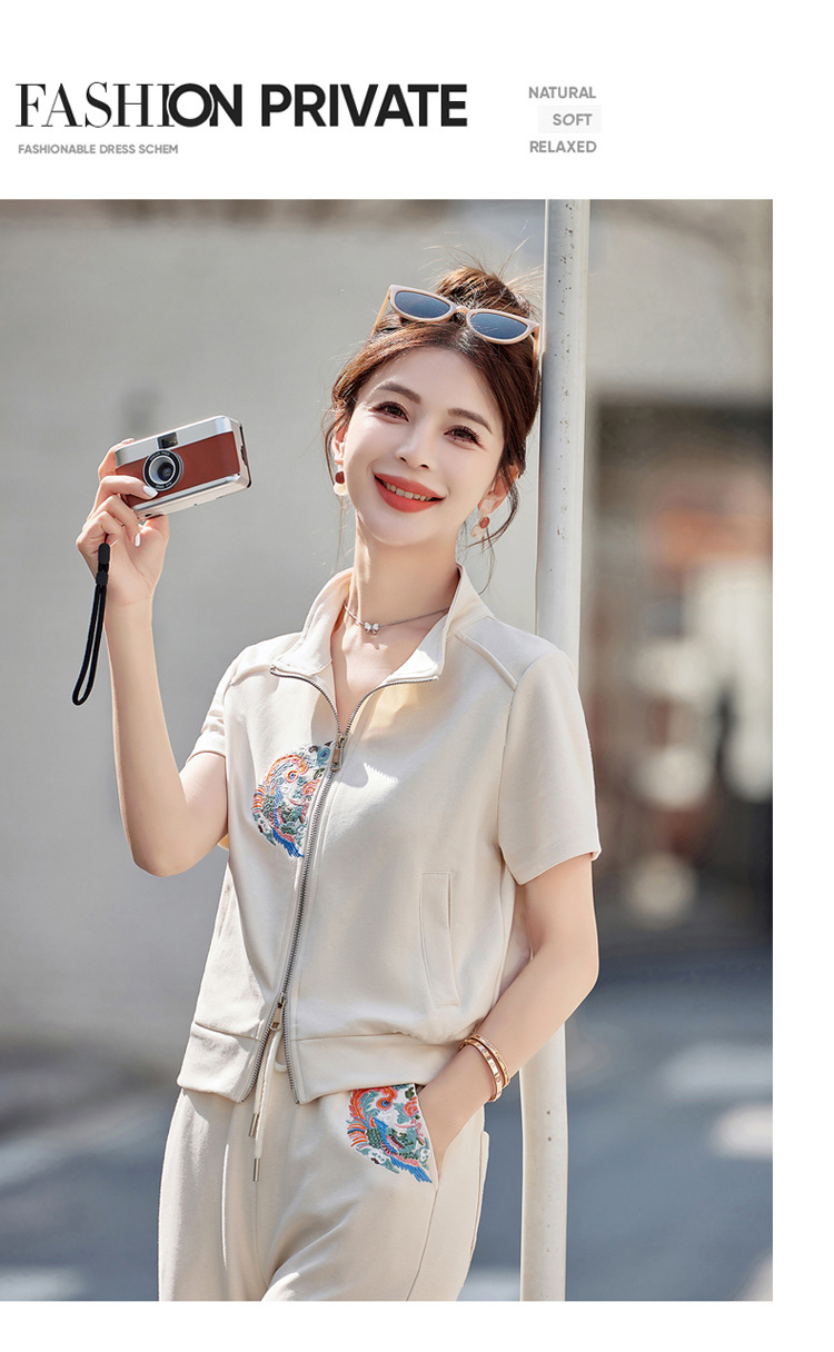 Bộ trang phục thời trang này gồm áo khoác mỏng tay ngắn và quần ống rộng. Áo được điểm xuyết hoa văn thêu tinh tế, dáng mặc thoải mái, phù hợp cho những ngày hè. Chất vải mềm mại, thấm hút mồ hôi tốt, mang lại cảm giác dễ chịu khi mặc. Bạn có thể mặc nguyên bộ hoặc phối cùng các loại áo khác để tạo nên những phong cách đa dạng. Sản phẩm dễ dàng giặt bằng tay hoặc máy ở chế độ nhẹ. | Tên sản phẩm: Đồ Bộ Nữ Dáng Dộng Ngắn Tay Cả Bộ 2 Món Thêu Họa Tiết Hoa Hàng Mùa Hè - Thời Trang Nữ | Mã sản phẩm: B2950 - Giá: 1.880.000đ | Mã nhà sản xuất: WODIG-G05Hình ảnh sản phẩm