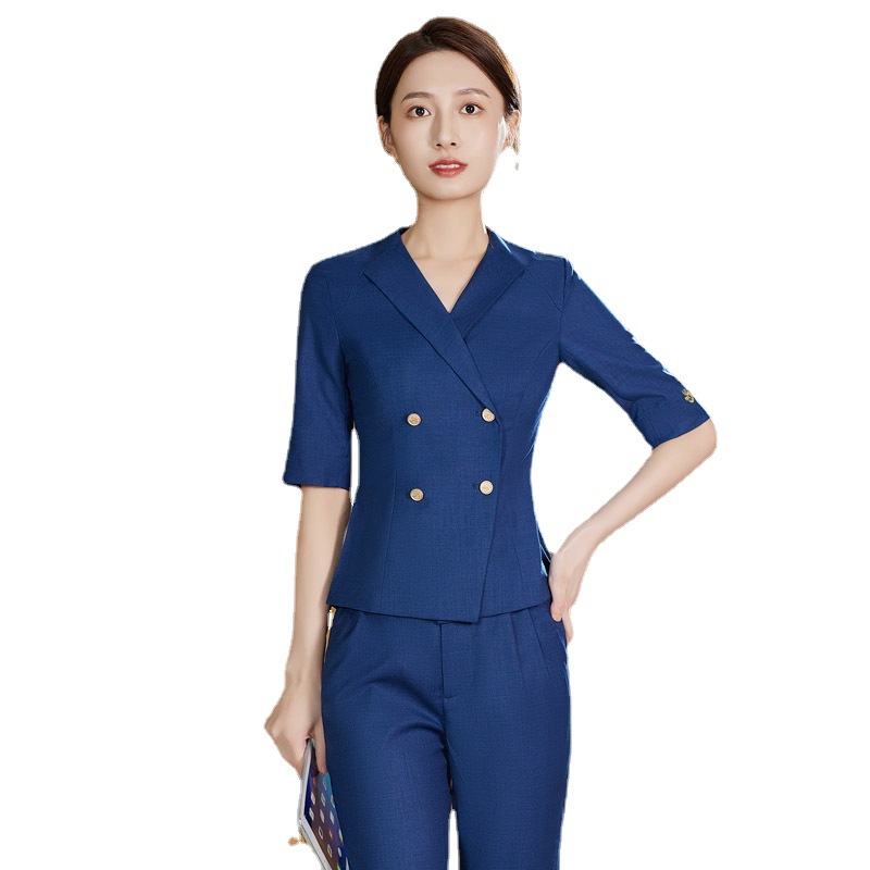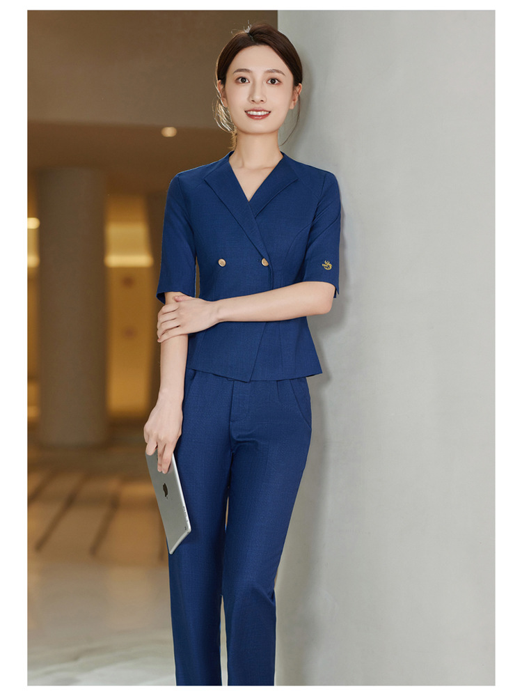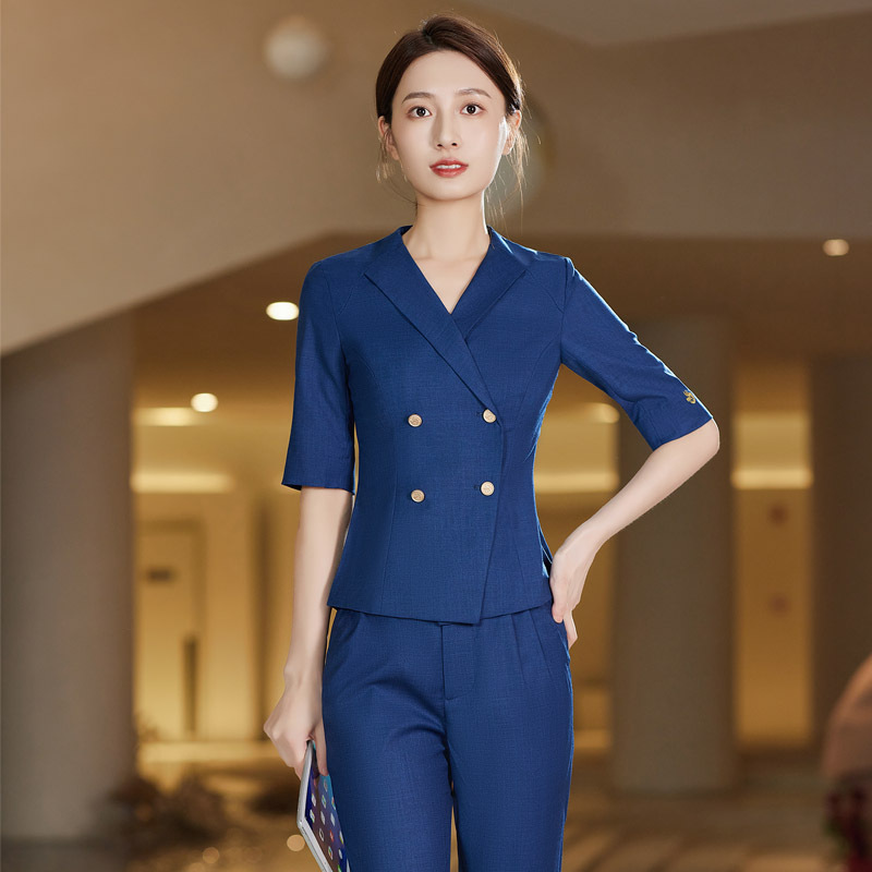 Bộ đồ làm việc ngắn tay mới dành cho nhân viên cửa hàng trang sức. Thiết kế dạng bộ comple lịch sự, phù hợp với môi trường làm việc chuyên nghiệp. Áo kiểu ngắn tay mát mẻ, kết hợp cùng quần âu hoặc chân váy chỉn chu. Chất vải co giãn nhẹ, thấm hút mồ hôi tốt, mang lại sự thoải mái khi mặc suốt ngày dài. Dễ dàng phối cùng phụ kiện và giày công sở. Giặt máy nhẹ nhàng, ít nhăn, tiện lợi bảo quản. | Tên sản phẩm: Đồ Bộ Nữ Ngắn Tay Hàng Mùa Hè Đồ Công Sở - Thời Trang Nữ | Mã sản phẩm: L1990 - Giá: 670.000đ | Mã nhà sản xuất: SHRYIA-G02Hình ảnh sản phẩm