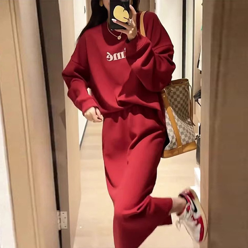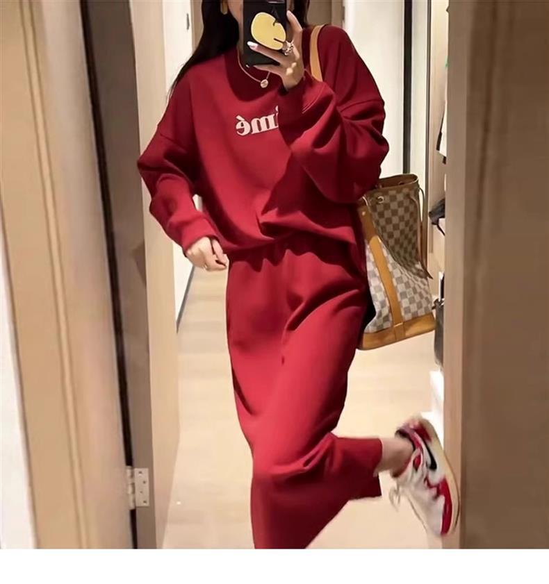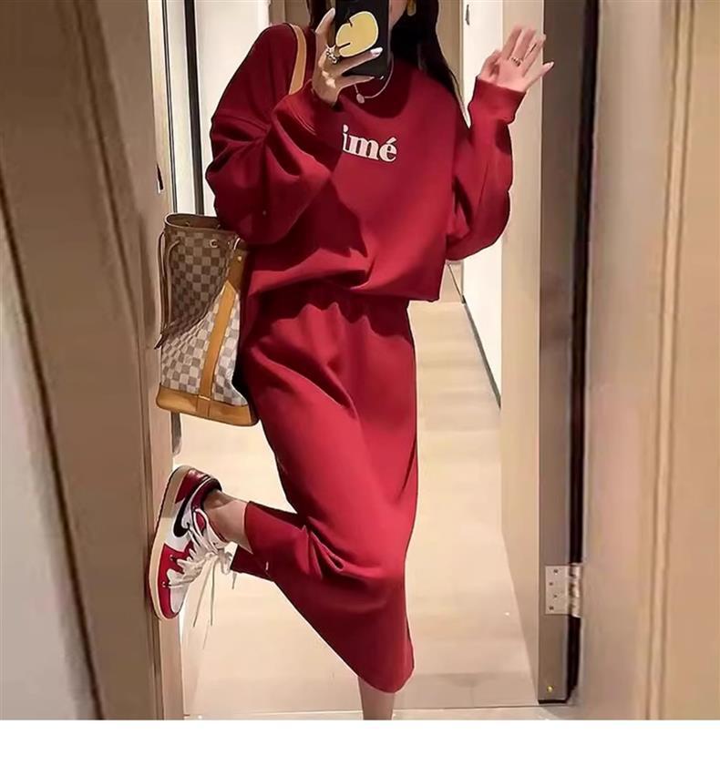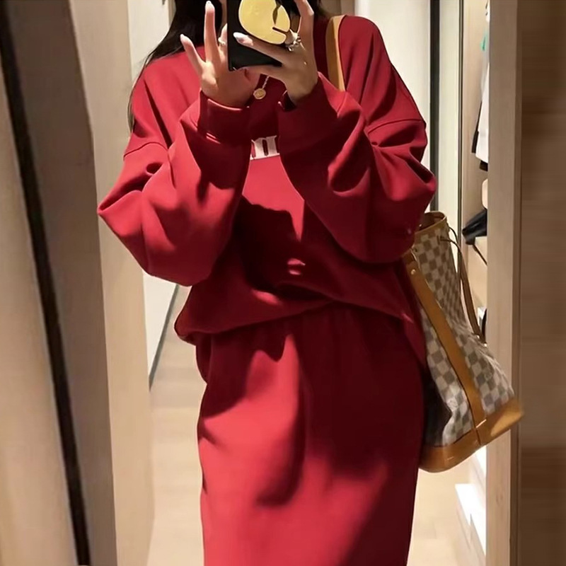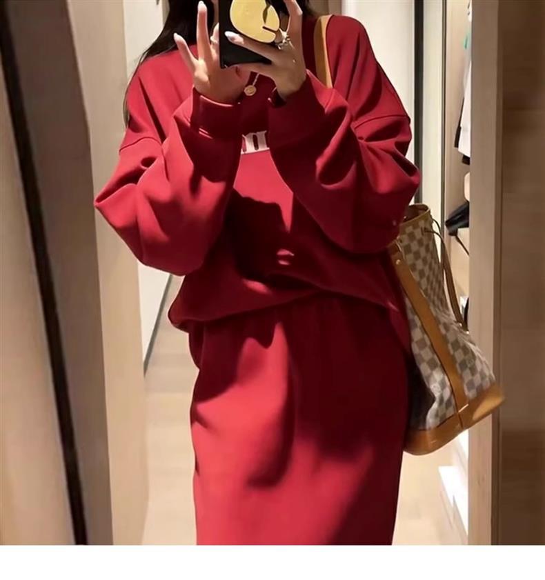 Bộ trang phục này gồm áo nỉ và chân váy, được thiết kế trong bộ sưu tập đầu xuân. Sắc đỏ rực rỡ cùng kiểu dáng trẻ trung giúp tôn lên vẻ năng động. Chất vải co giãn nhẹ mang lại sự thoải mái cho nhiều hoạt động. Bạn có thể mặc nguyên bộ để tạo phong cách đồng bộ, hoặc phối cùng các món đồ cơ bản khác. Đây là lựa chọn phù hợp cho những dịp gặp mặt thường ngày. | Tên sản phẩm: Đồ Bộ Nữ Trông Trẻ Hơn Tuổi Hàng Mùa Xuân Thu Đông - Thời Trang Nữ | Mã sản phẩm: B9776 - Giá: 1.190.000đ | Mã nhà sản xuất: AIANOR-G04Hình ảnh sản phẩm