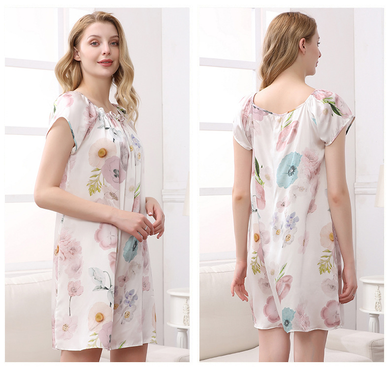 Chiếc váy ngủ này được dệt hoàn toàn từ sợi tơ tằm tự nhiên, mang đến cảm giác mát mẻ và mềm mại cho làn da. Kiểu dáng rộng rãi thoải mái, phù hợp cho những ngày hè oi bức hoặc khi mặc ở nhà. Hoa văn in trên vải tạo điểm nhấn sinh động. Bạn có thể giặt bằng tay với nước thường và phơi ở nơi râm mát để sản phẩm được bền đẹp. | Tên sản phẩm: Đồ Ngủ Nữ Chất Liệu Lụa Tơ Tằm Big Size Ngoại Cỡ Họa Tiết Hoa Hàng Mùa Hè Trung Niên Đồ Ngủ Hoặc Mặc Nhà - Thời Trang Nữ | Mã sản phẩm: E9215 - Giá: 1.490.000đ | Mã nhà sản xuất: TODN-G04Hình ảnh sản phẩm
