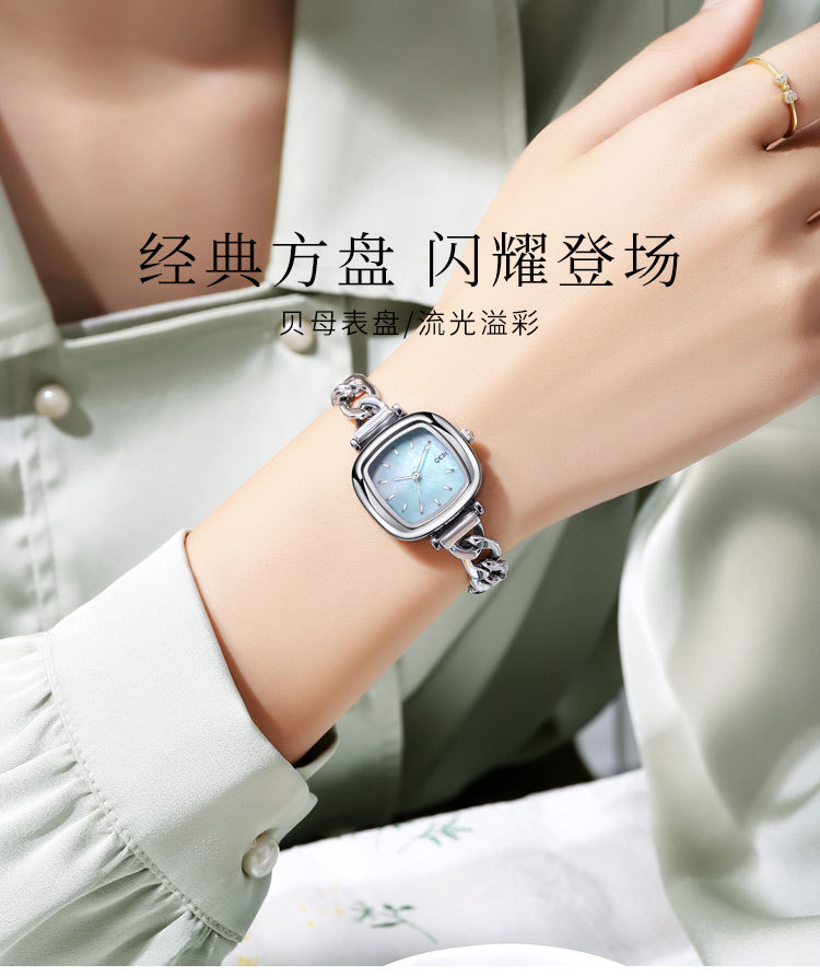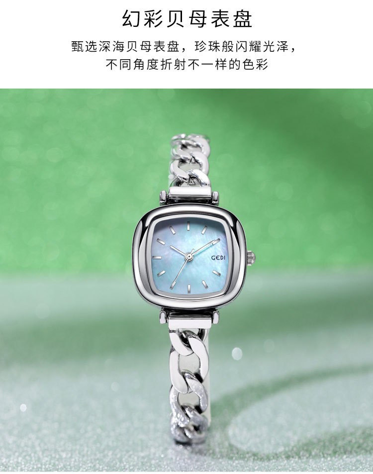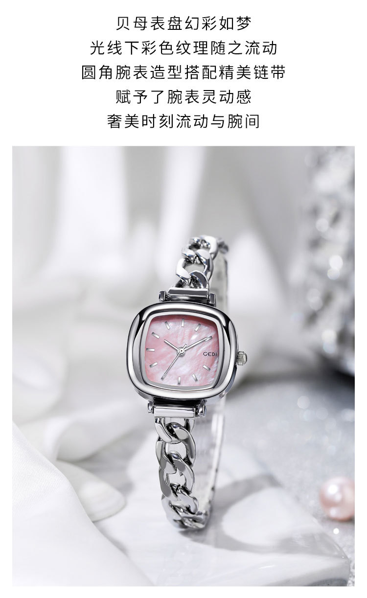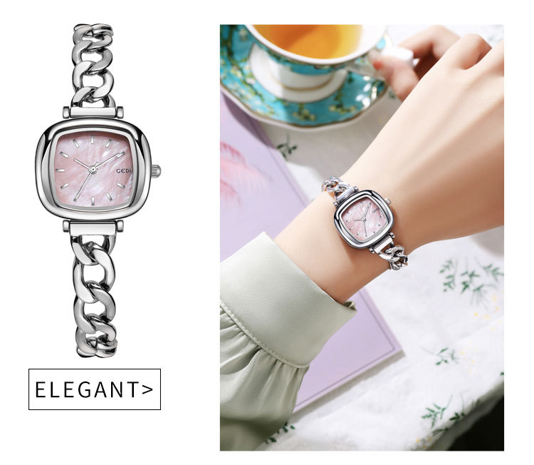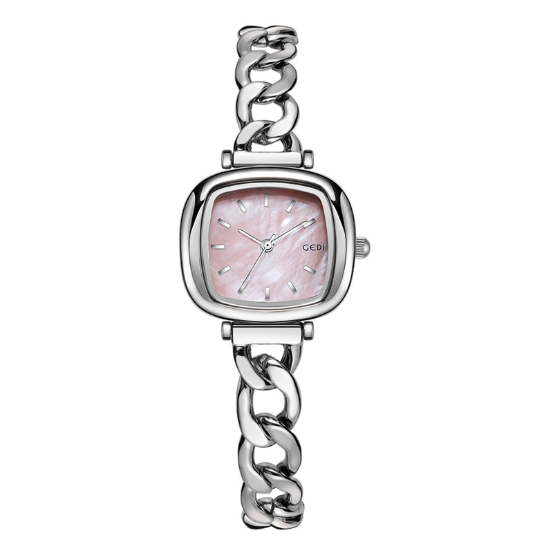 Chiếc đồng hồ dành cho nữ này có mặt số hình bầu dục độc đáo, điểm nhấn là ông tô má hồng duyên dáng. Mặt số được làm từ chất liệu vỏ sò tự nhiên, lấp lánh ánh sáng nhẹ nhàng theo từng cử động tay. Sử dụng máy chạy pin, bạn chỉ cần đeo nó trên tay để xem giờ hằng ngày. Kiểu dáng nhỏ gọn, phù hợp để phối cùng nhiều trang phục, mang đến vẻ ngoại hình tươi tắn và nữ tính. | Tên sản phẩm: Đồng Hồ Nữ Máy Pin, Máy Thạch Anh - Đồng Hồ Phụ Kiện Nữ | Mã sản phẩm: K1184 - Giá: 770.000đ | Mã nhà sản xuất: FODI-G02Hình ảnh sản phẩm