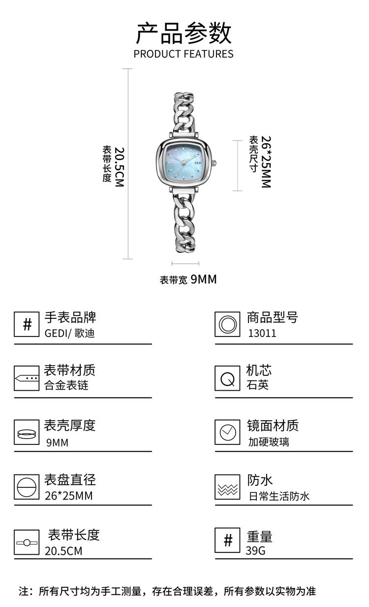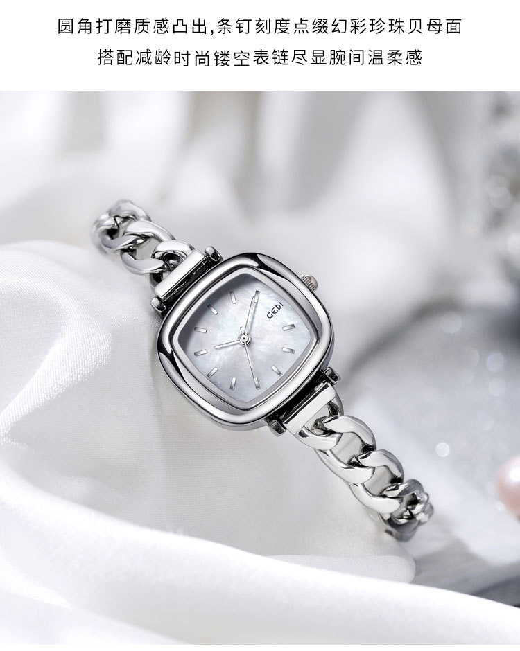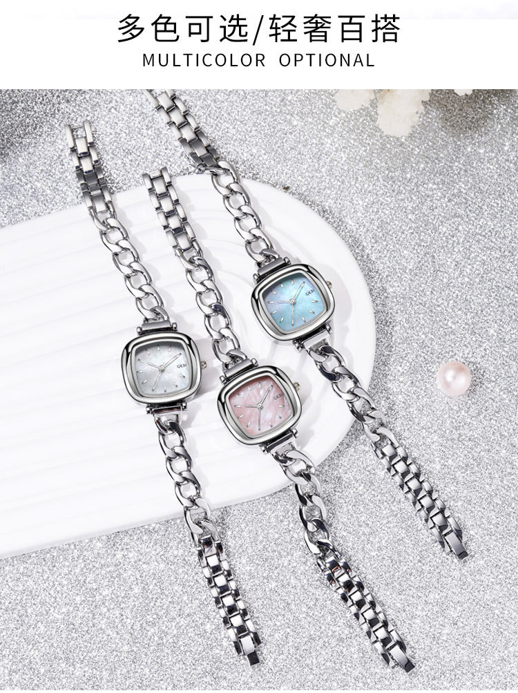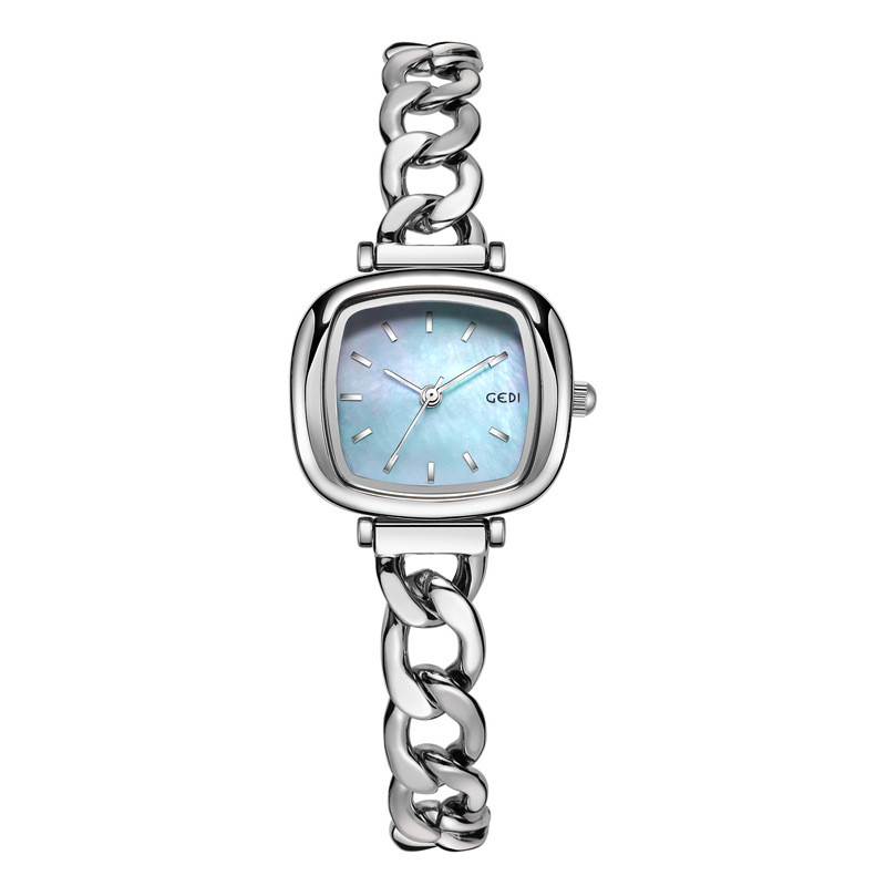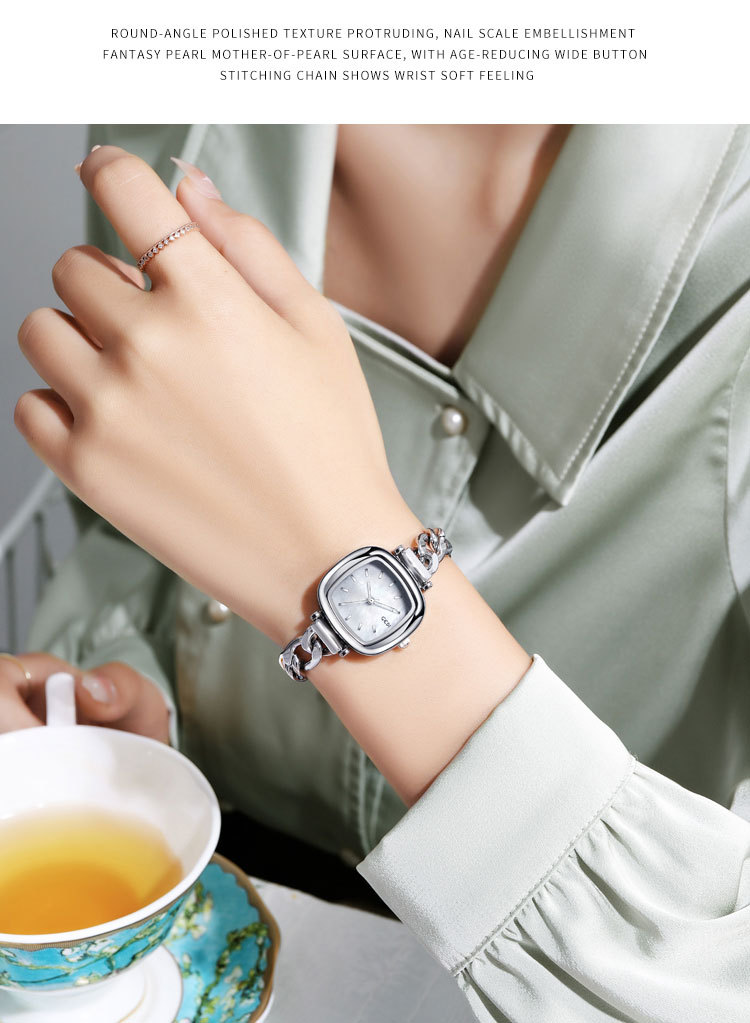 Chiếc đồng hồ dành cho nữ này có mặt số hình bầu dục độc đáo, điểm nhấn là ông tô má hồng duyên dáng. Mặt số được làm từ chất liệu vỏ sò tự nhiên, lấp lánh ánh sáng nhẹ nhàng theo từng cử động tay. Sử dụng máy chạy pin, bạn chỉ cần đeo nó trên tay để xem giờ hằng ngày. Kiểu dáng nhỏ gọn, phù hợp để phối cùng nhiều trang phục, mang đến vẻ ngoại hình tươi tắn và nữ tính. | Tên sản phẩm: Đồng Hồ Nữ Máy Pin, Máy Thạch Anh - Đồng Hồ Phụ Kiện Nữ | Mã sản phẩm: K1184 - Giá: 770.000đ | Mã nhà sản xuất: FODI-G02Hình ảnh sản phẩm