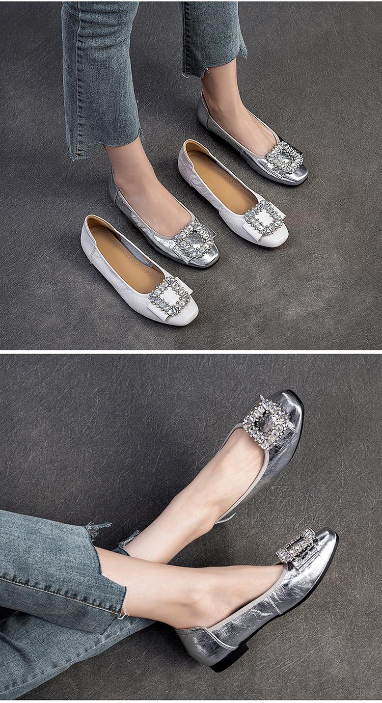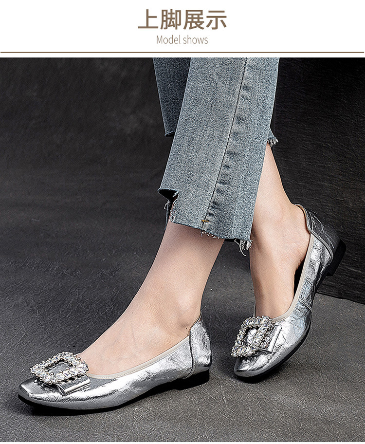Giày dép nữ thiết kế dáng ôm nhẹ nhàng, cổ thấp tạo cảm giác thoải mái. Điểm nhấn là mặt giày với đường vân tạo hình độc đáo như vết tay cầm, mang nét đẹp thanh lịch. Sử dụng chất liệu co giãn kết hợp kiểu dáng xỏ ngón tiện lợi, giúp bạn mang vào hay tháo ra dễ dàng. Đế bằng phẳng phù hợp cho việc di chuyển cả ngày, kết hợp cùng nhiều loại trang phục khác nhau. | Tên sản phẩm: Giày Bệt Nữ Hàng Mùa Xuân Thu Đông - Giày Dép Nữ | Mã sản phẩm: B2154 - Giá: 1.220.000đ | Mã nhà sản xuất: SHDU-G04Hình ảnh sản phẩm