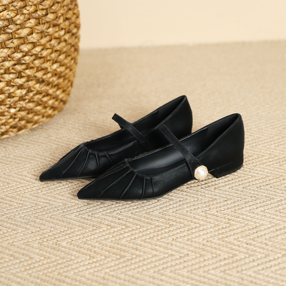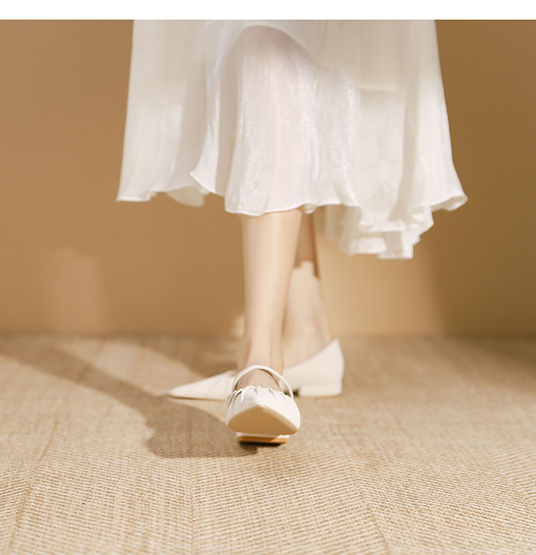 Đôi giày nữ với phần mũi nhọn thanh thoát, điểm nhấn là khóa cài trang trí viên ngọc tr nhỏ xinh. Dây đeo chéo mảnh m ôm lấy bàn chân, tôn lên vẻ dịu dàng. Đế thấp thoải mái, dễ dàng phối cùng nhiều trang phục như quần âu hay váy liền. Kiểu dáng gập nếp mềm mại ở phần mu bàn chân, tạo hình giống như những cánh sen cách điệu, mang đến vẻ đẹp nữ tính và hiện đại. Chỉ cần xỏ vào và cài khóa là bạn đã có một set đồ hoàn chỉnh. | Tên sản phẩm: Giày Bệt Nữ Mũi Nhọn - Giày Dép Nữ | Mã sản phẩm: L0298 - Giá: 750.000đ | Mã nhà sản xuất: HUDSH-G02Hình ảnh sản phẩm