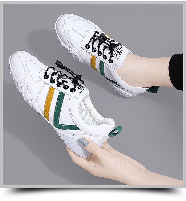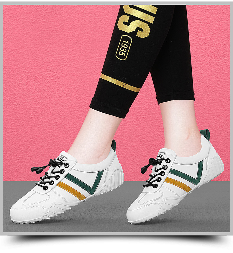 Đôi giày thể thao nữ màu trắng thiết kế đơn giản, dễ phối đồ. Kiểu dáng năng động với đế bằng phẳng, phù hợp cho các hoạt động thường ngày, du lịch hay dạo phố. Chất liệu nhẹ và thoáng khí, giúp đôi chân luôn dễ chịu khi mang trong thời gian dài. Bạn có thể sử dụng cùng với quần jeans, váy hay quần thể thao đều phù hợp. Rất tiện lợi để di chuyển và sinh hoạt hằng ngày. | Tên sản phẩm: Giày Bệt Nữ Thoáng Khí Hàng Mùa Xuân Thu Đông - Giày Dép Nữ | Mã sản phẩm: B5242 - Giá: 1.020.000đ | Mã nhà sản xuất: PUDT-G03Hình ảnh sản phẩm
