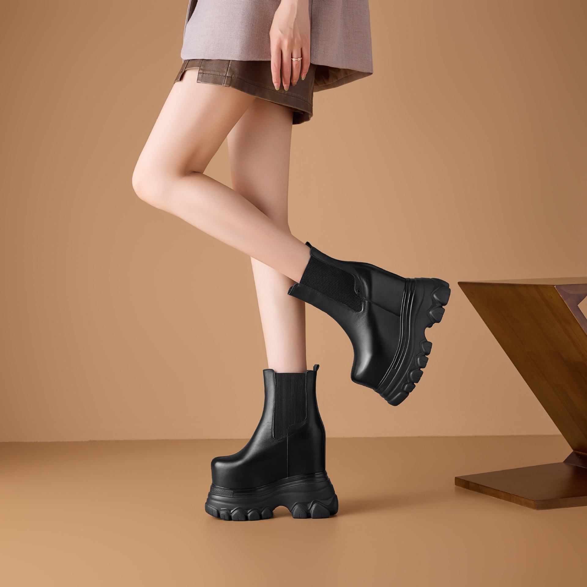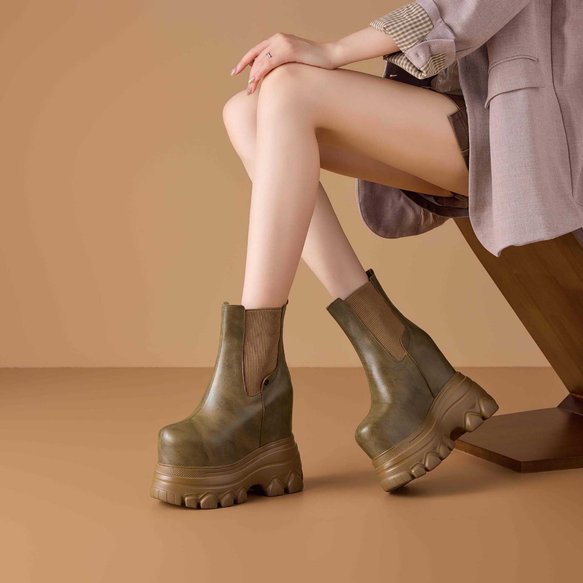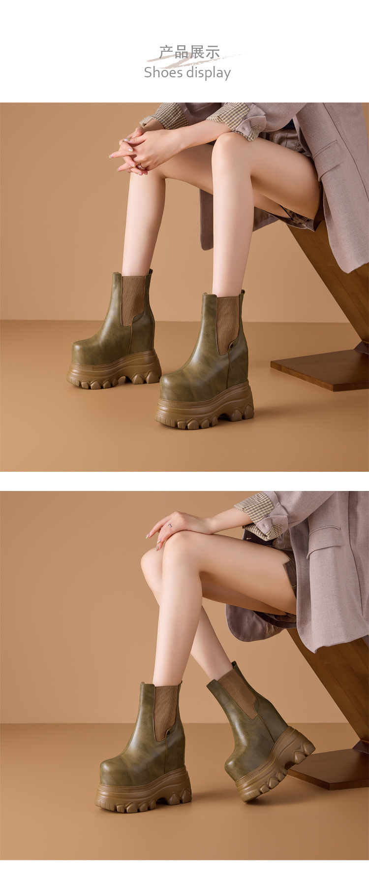 Đôi bốt cổ thấp này có phần đế ngoài rất dày và phần gót được tăng thêm chiều cao một cách khéo léo bên trong, giúp tạo dáng đứng cao hơn một cách tự nhiên. Làm từ chất liệu da mềm, kiểu dáng linh hoạt giữa bốt tăng dáng và bốt lười, mang phong cách Anh điệu đà. Dễ dàng phối cùng nhiều trang phục như quần jean, váy hay quần shorts để tạo điểm nhấn nổi bật. | Tên sản phẩm: Giày Boot Cổ Thấp Nữ Chất Liệu Da Bò Cao 16cm Tăng Chiều Cao Đế Cao - Giày Dép Nữ | Mã sản phẩm: B4209 - Giá: 3.420.000đ | Mã nhà sản xuất: QIDNG-G06Hình ảnh sản phẩm