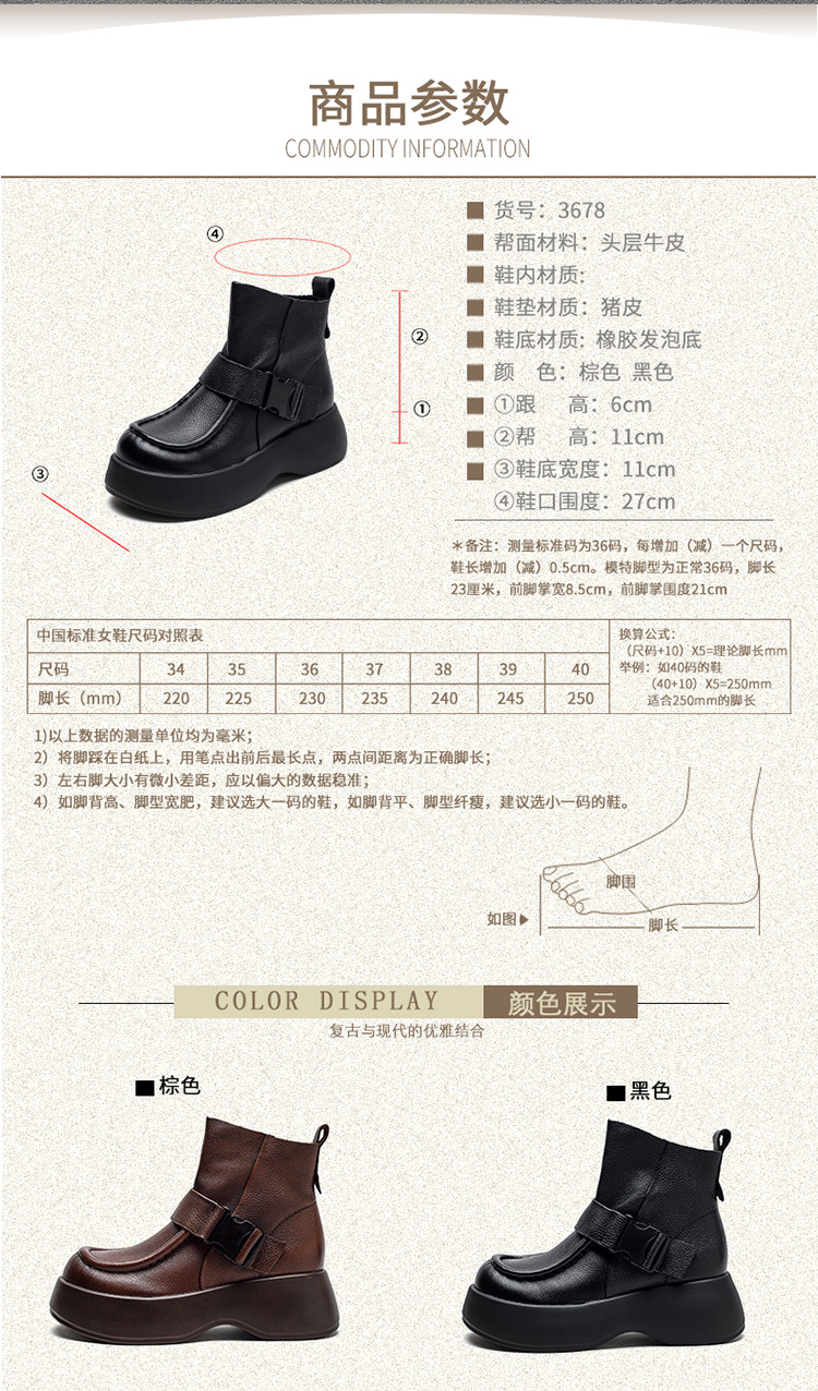 Đôi bốt cổ thấp dành cho nữ, thiết kế theo phong cách cổ điển, dễ dàng phối hợp với nhiều trang phục khác nhau. Sản phẩm được làm từ chất liệu da bò mềm mại, mang lại cảm giác dễ chịu khi mang. Đế giày được làm dày hơn một chút, giúp tăng thêm chiều cao và sự vững chãi. Kiểu dáng bốt thể thao thoải mái, phù hợp cho việc đi lại hàng ngày hoặc những lúc thư giãn. Bạn có thể sử dụng đôi bốt này để kết hợp cùng quần jeans, váy hay quần thể thao đều rất phù hợp. | Tên sản phẩm: Giày Boot Cổ Thấp Nữ Chất Liệu Da Bò Đế Cao Hàng Mùa Xuân Thu Đông Phục Cổ Cổ Điển - Giày Dép Nữ | Mã sản phẩm: B2601 - Giá: 2.670.000đ | Mã nhà sản xuất: SHNTEZ-G06Hình ảnh sản phẩm