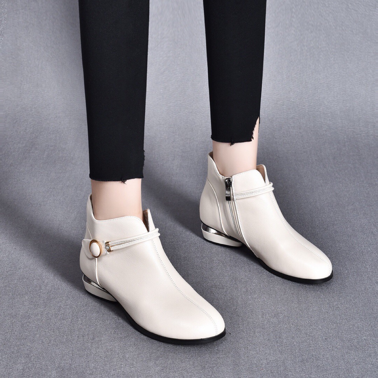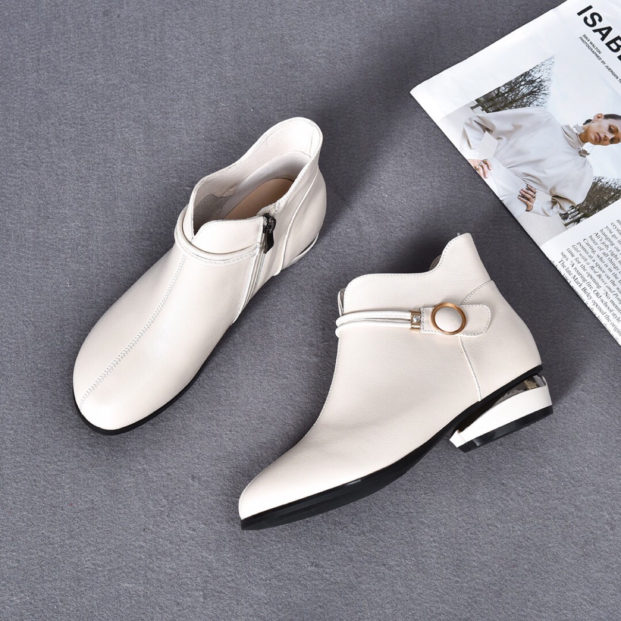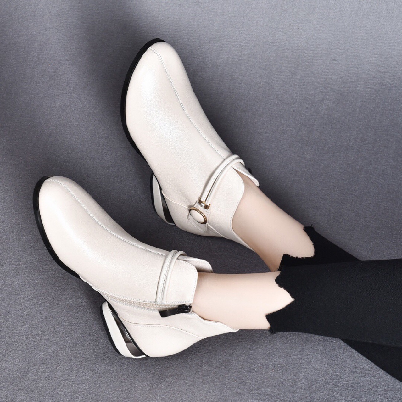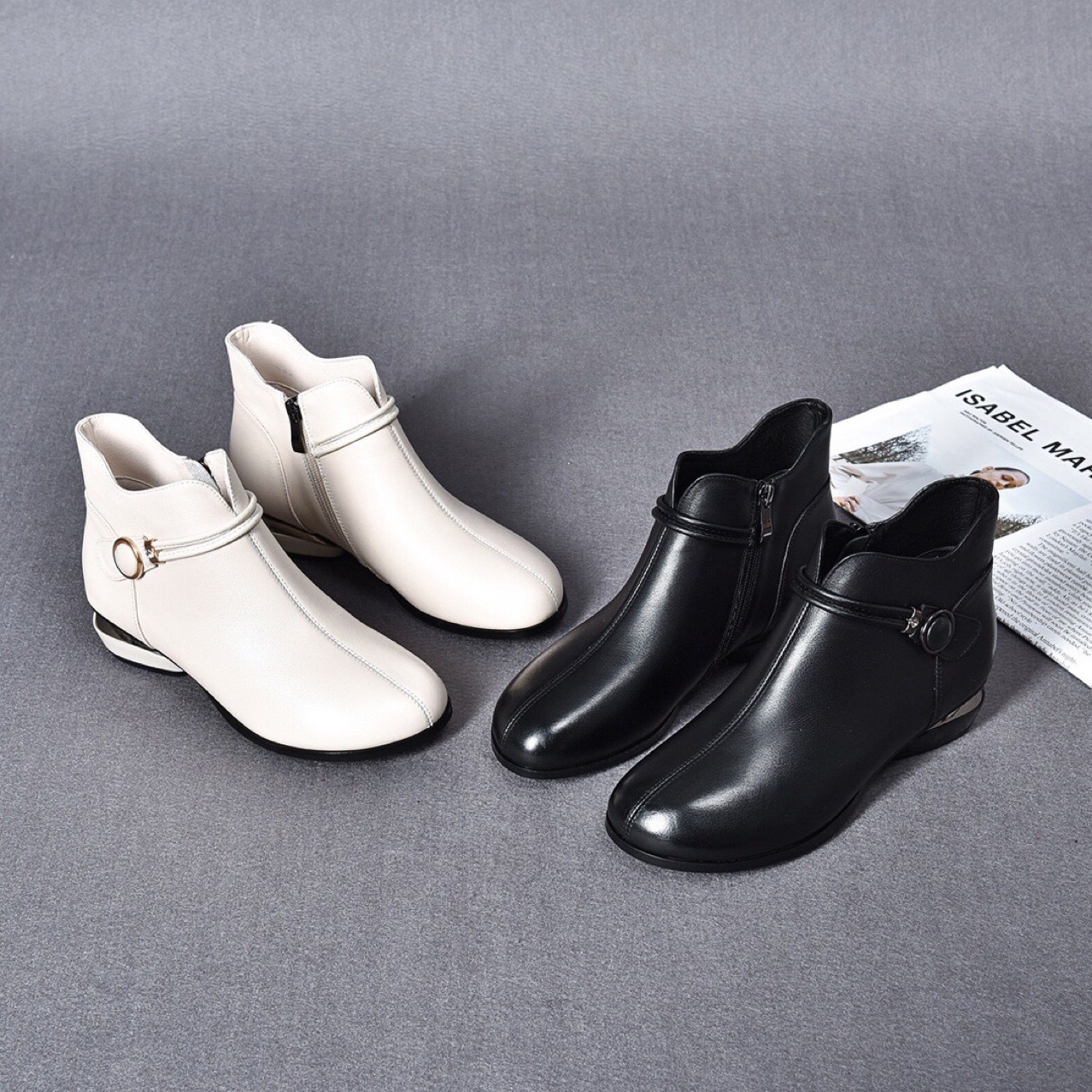 Đôi bốt cổ thấp này được làm từ chất liệu da thật, kiểu dáng đơn giản dễ phối đồ. Mẫu mã theo phong cách trẻ trung, nhẹ nhàng, phù hợp cho các bà mẹ. Đế thấp vừa phải, ôm chân thoải mái, mang lại cảm giác dễ chịu khi di chuyển cả ngày. Bạn có thể sử dụng hàng ngày, kết hợp cùng quần jean, váy hay quần tây đều rất hợp. | Tên sản phẩm: Giày Boot Cổ Thấp Nữ Chất Liệu Da Bò Hàng Mùa Xuân Thu Đông Trung Niên Phong Cách Hàn Quốc - Giày Dép Nữ | Mã sản phẩm: D3764 - Giá: 1.390.000đ | Mã nhà sản xuất: TOREHU-G04Hình ảnh sản phẩm