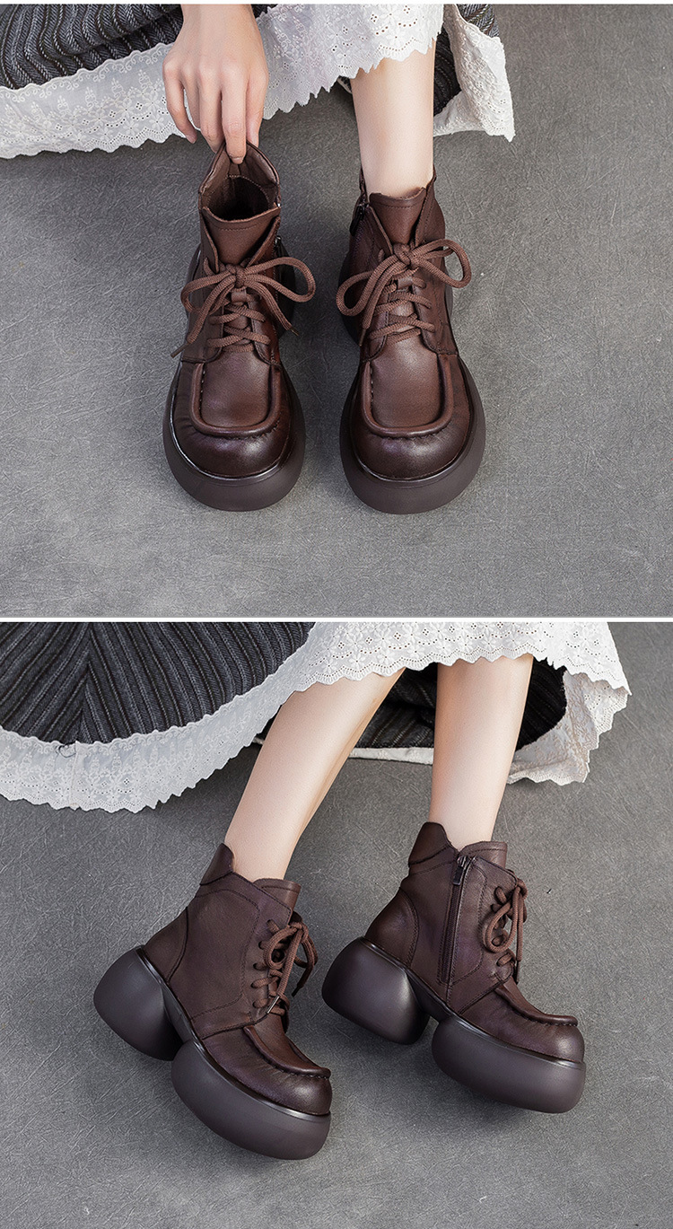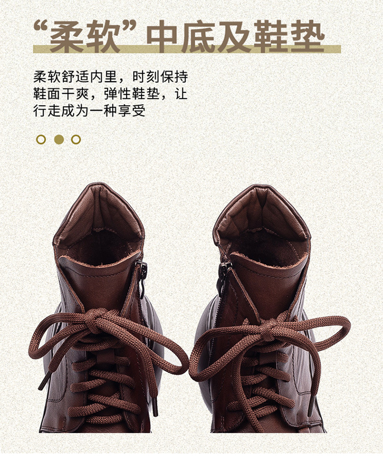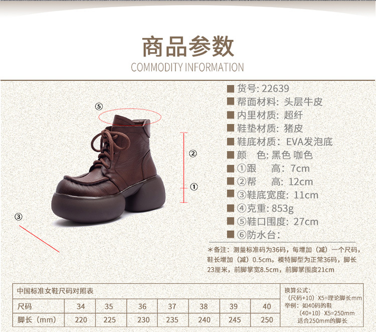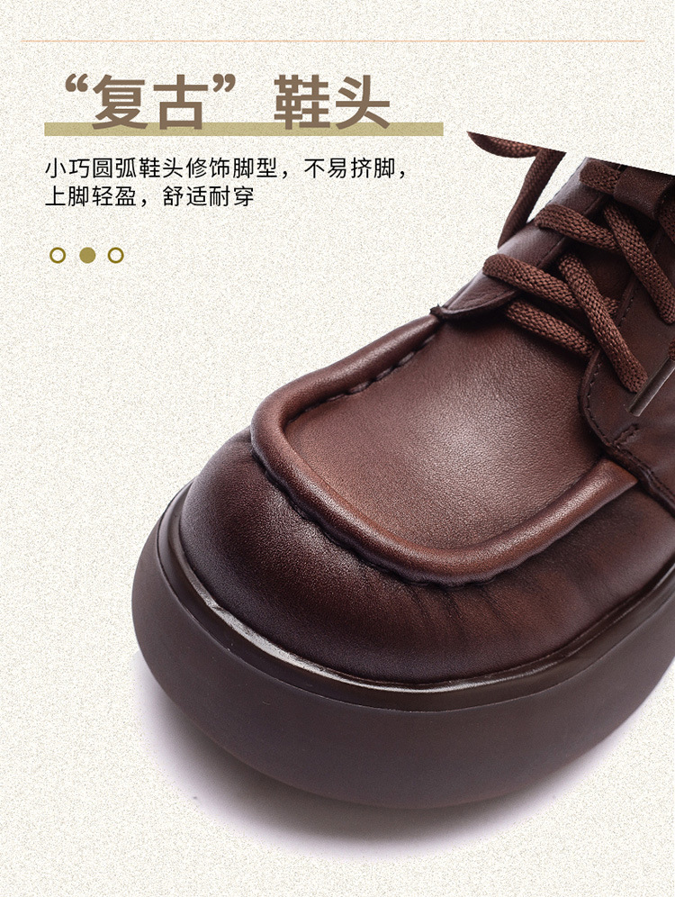 Đôi bốt cổ thấp này được làm từ chất da mềm bền đẹp, kiểu dáng mang phong cách Anh cổ điển. Thiết kế có phần đế được tăng thêm độ cao một cách tinh tế, phù hợp cho những người có dáng người nhỏ. Sản phẩm thích hợp để phối cùng nhiều loại trang phục khác nhau trong mùa đông. Bạn có thể sử dụng hàng ngày, lau sạch bề mặt bằng khăn mềm để giữ giày luôn sạch đẹp. | Tên sản phẩm: Giày Boot Cổ Thấp Nữ Chất Liệu Da Bò Tăng Chiều Cao Hàng Mùa Xuân Thu Đông Phục Cổ Cổ Điển - Giày Dép Nữ | Mã sản phẩm: B2303 - Giá: 1.710.000đ | Mã nhà sản xuất: SHDU-G05Hình ảnh sản phẩm