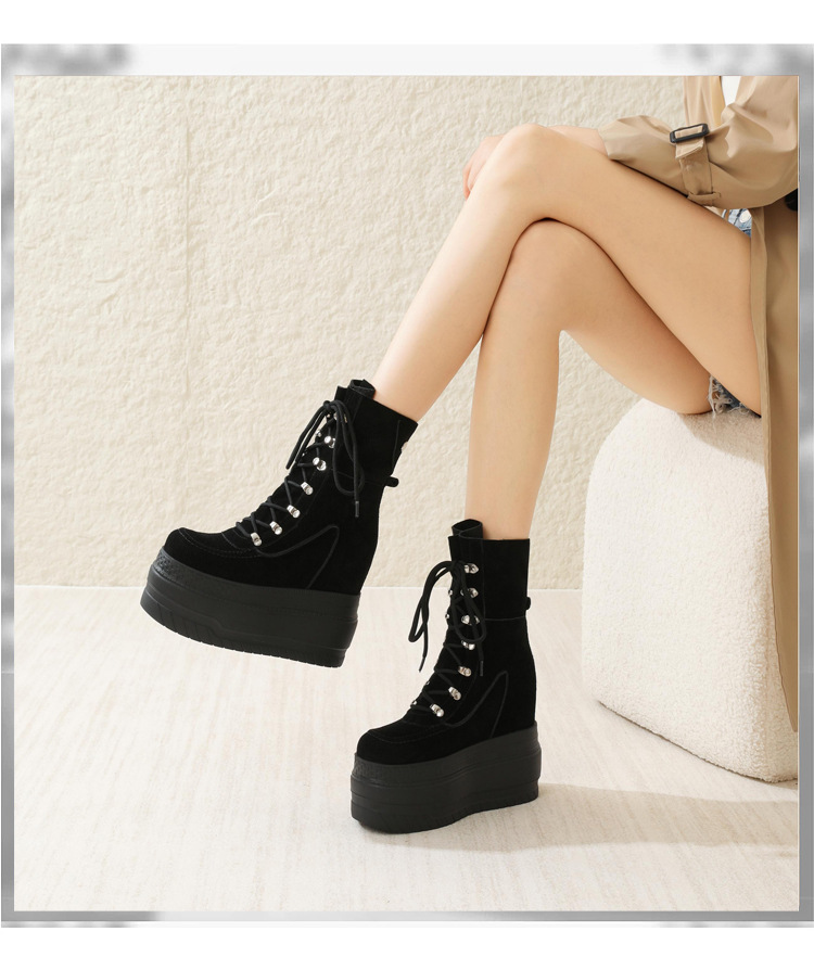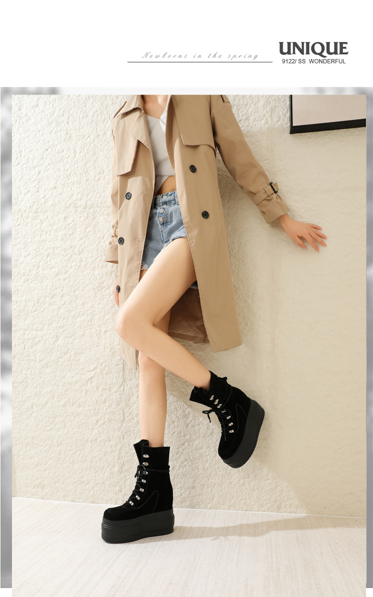 Đôi bốt cổ thấp dáng hầm hố này có phần đế dày tạo dáng đẹp và thoải mái. Chất vải mềm mại giúp đôi chân bạn dễ chịu trong những ngày tiết trời mát mẻ. Kiểu dáng phù hợp để phối cùng nhiều loại trang phục như quần jeans hay váy. Bạn chỉ cần xỏ vào và kéo khóa nhẹ nhàng là đã có ngay một phong cách trẻ trung, năng động. | Tên sản phẩm: Giày Boot Cổ Thấp Nữ Đế Xuồng Đế Cao Hàng Mùa Xuân Thu Đông Phong Cách Hàn Quốc - Giày Dép Nữ | Mã sản phẩm: B4026 - Giá: 2.600.000đ | Mã nhà sản xuất: QIDNG-G06Hình ảnh sản phẩm