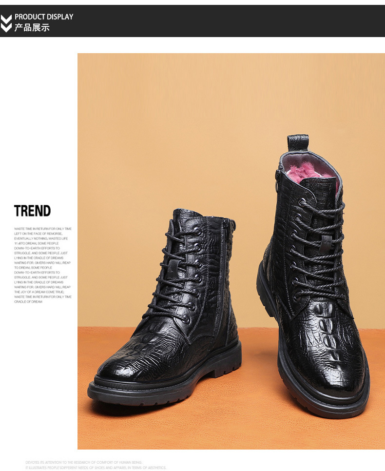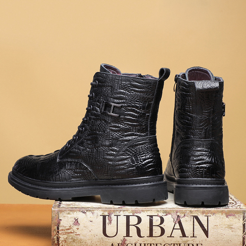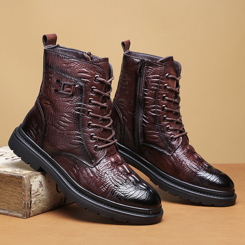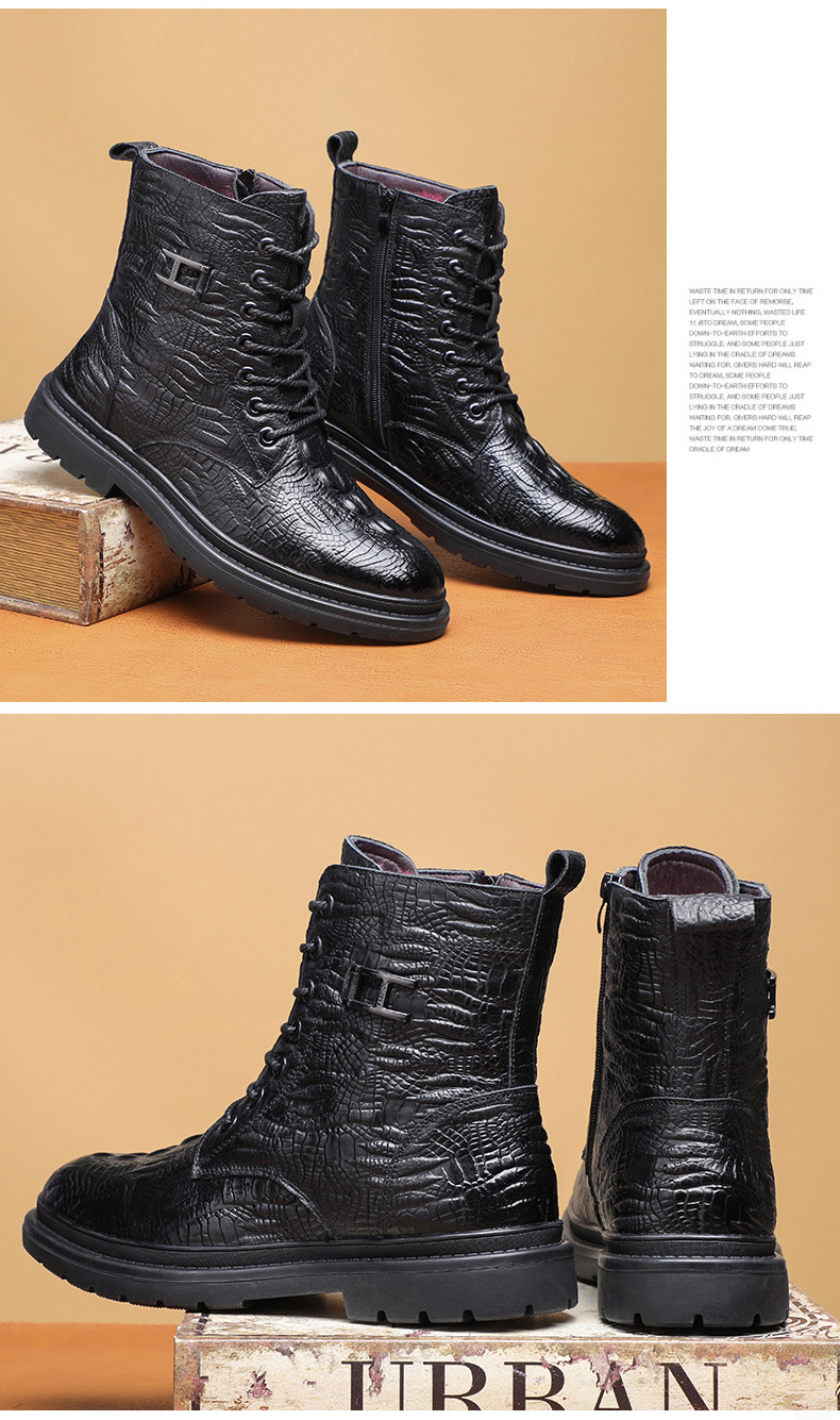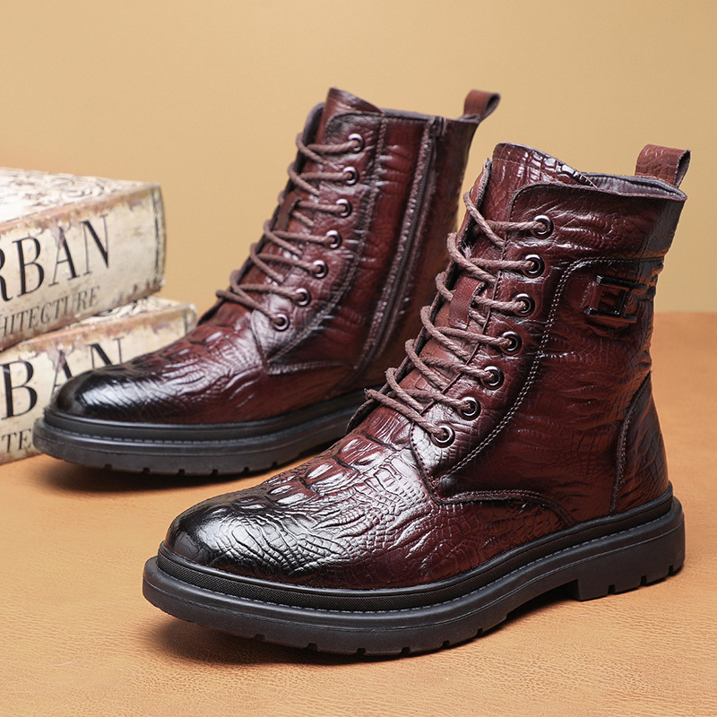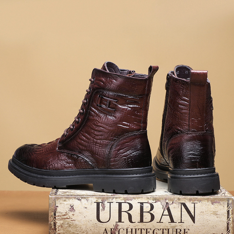 Giày bốt cổ thấp kiểu dáng năng động, được làm từ lớp da thật bên ngoài và lót ấm bằng len tự nhiên bên trong. Sản phẩm có phần đế được gia cố dày hơn, giúp giữ nhiệt tốt và chống trơn trượt khi đi trong thời tiết lạnh. Kiểu dáng cổ điển dễ dàng phối hợp với nhiều trang phục khác nhau để đi làm, đi chơi hoặc tham gia các hoạt động ngoài trời. Mang trực tiếp và kéo khóa một cách nhẹ nhàng. | Tên sản phẩm: Giày Boot Martin Nam Chất Liệu Vải Bông Ma Sát Chống Trượt Dày Ấm Hàng Mùa Xuân Thu Đông - Giày Dép Nam | Mã sản phẩm: A4962 - Giá: 1.220.000đ | Mã nhà sản xuất: WED-C-G04Hình ảnh sản phẩm